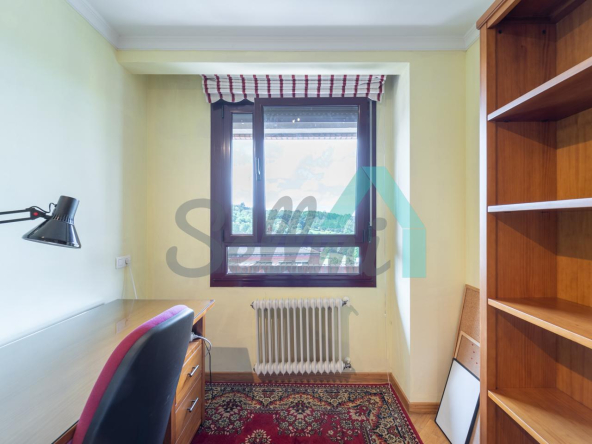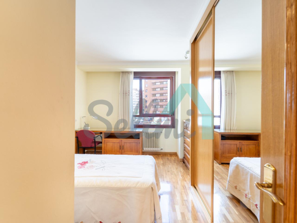 Dispone de calefacción individual de gas ciudad, ventanas de doble acristalamiento, armarios empotrados, suelos de parquet y gres, mesas de estudio, puerta de seguridad, videoportero, etc.