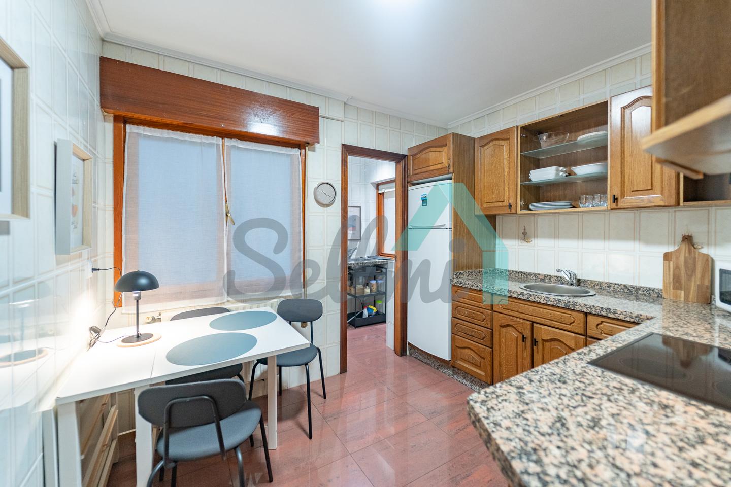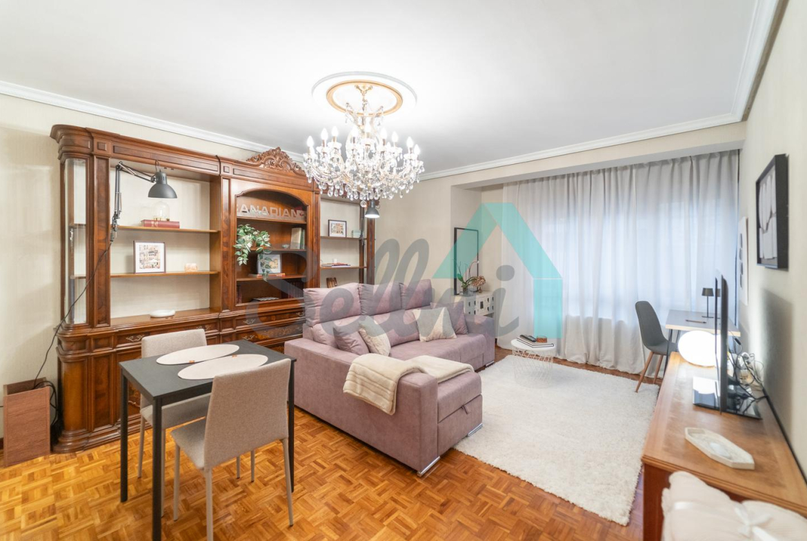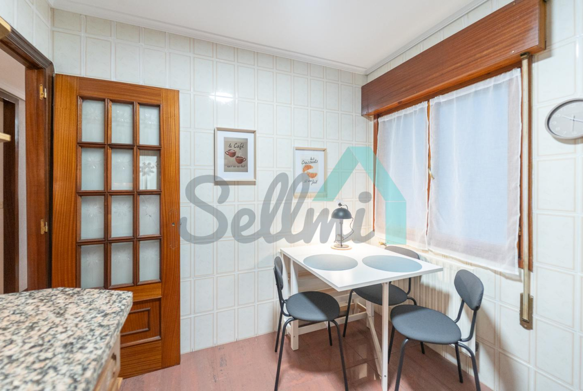 Dispone de suelos de parqué y gres, calefacción central con contador individual, ventanas de madera, puerta de seguridad, etc.