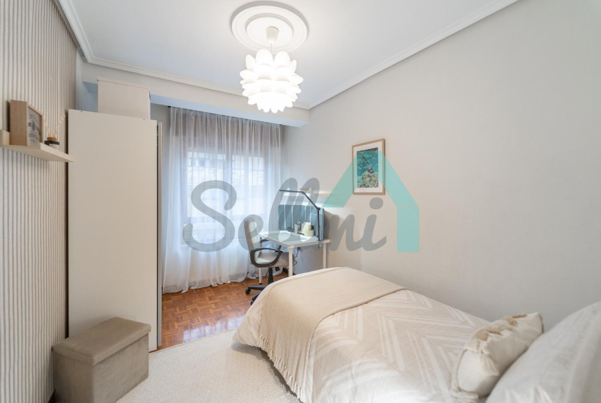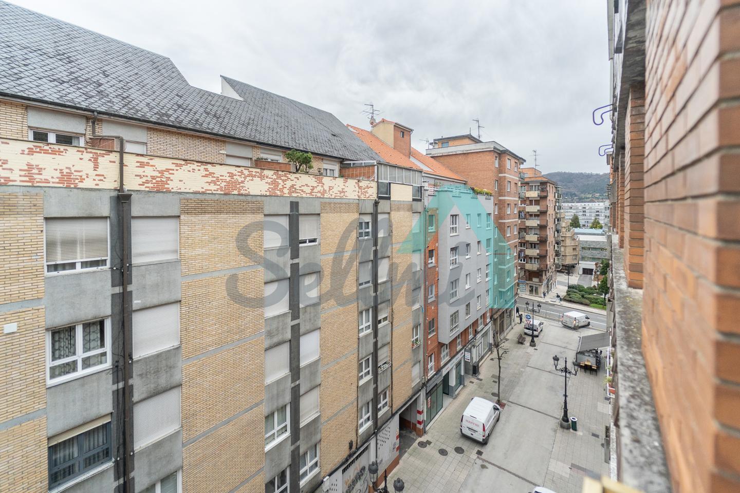 Piso en alquiler situado junto a la Plaza la Paz, en Oviedo. Está ubicado en la quinta planta de un edificio construido en 1985, sin barreras arquitectónicas y que cuenta con servicios centrales y dos ascensores. Es exterior, con orientación oeste.