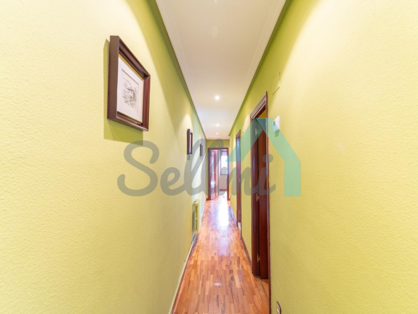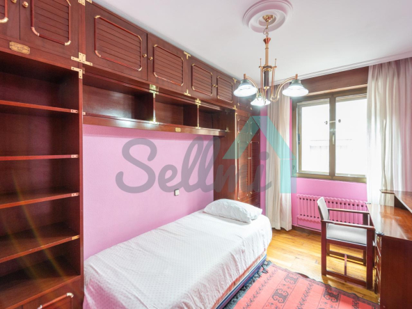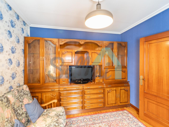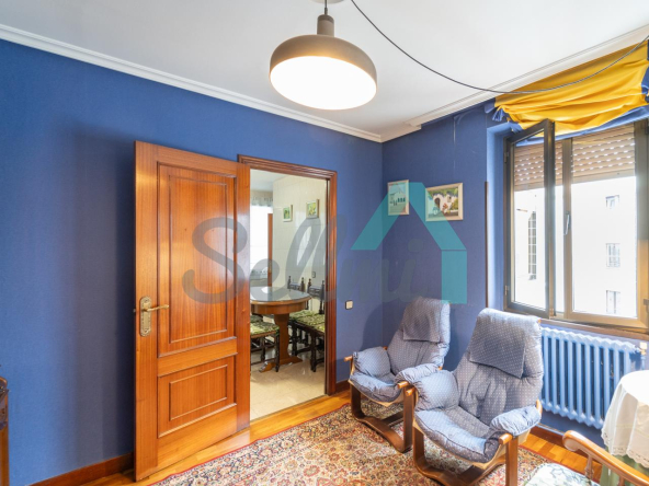 Dispone de suelos de parquet, calefacción individual de gas ciudad, ventanas de doble acristalamiento, armario empotrado en el pasillo, mesas de estudio, puerta de seguridad, lavavajillas, etc. Las estancias que dan a la calle (salón y una habitación) tiene instalada doble ventana, para aislarlas del ruido.