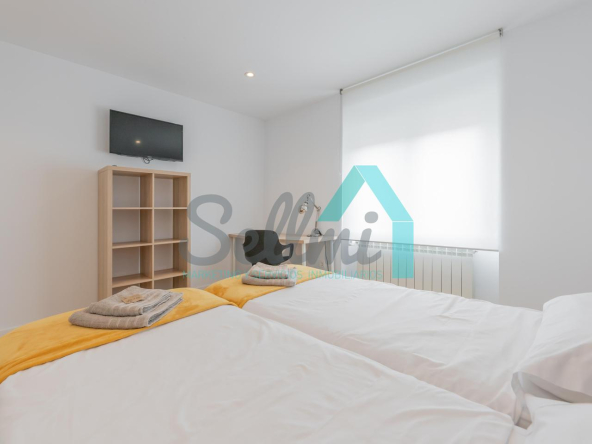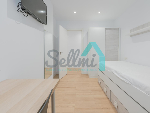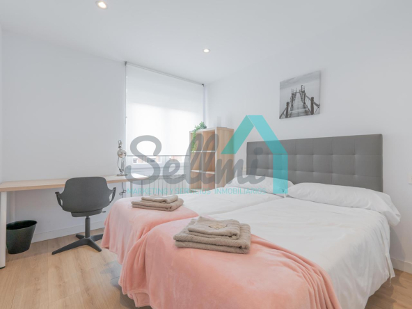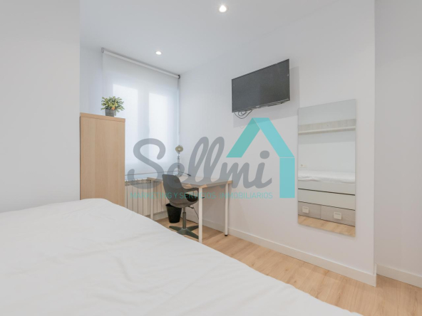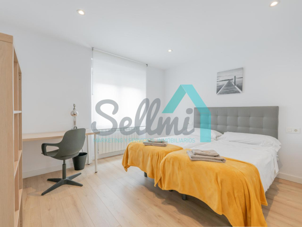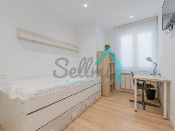 Dispone de suelos de tarima y gres, ventanas de doble acristalamiento, calefacción individual de gas ciudad, mesas de estudio, puerta de seguridad, etc.
