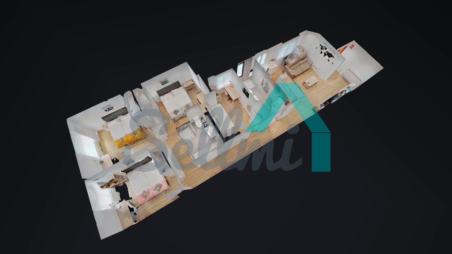 La vivienda, que ha sido totalmente reformada, tiene una superficie construida de 113 m2 distribuidos en salón comedor con cocina amueblada y equipada, cuatro habitaciones y dos baños completos.