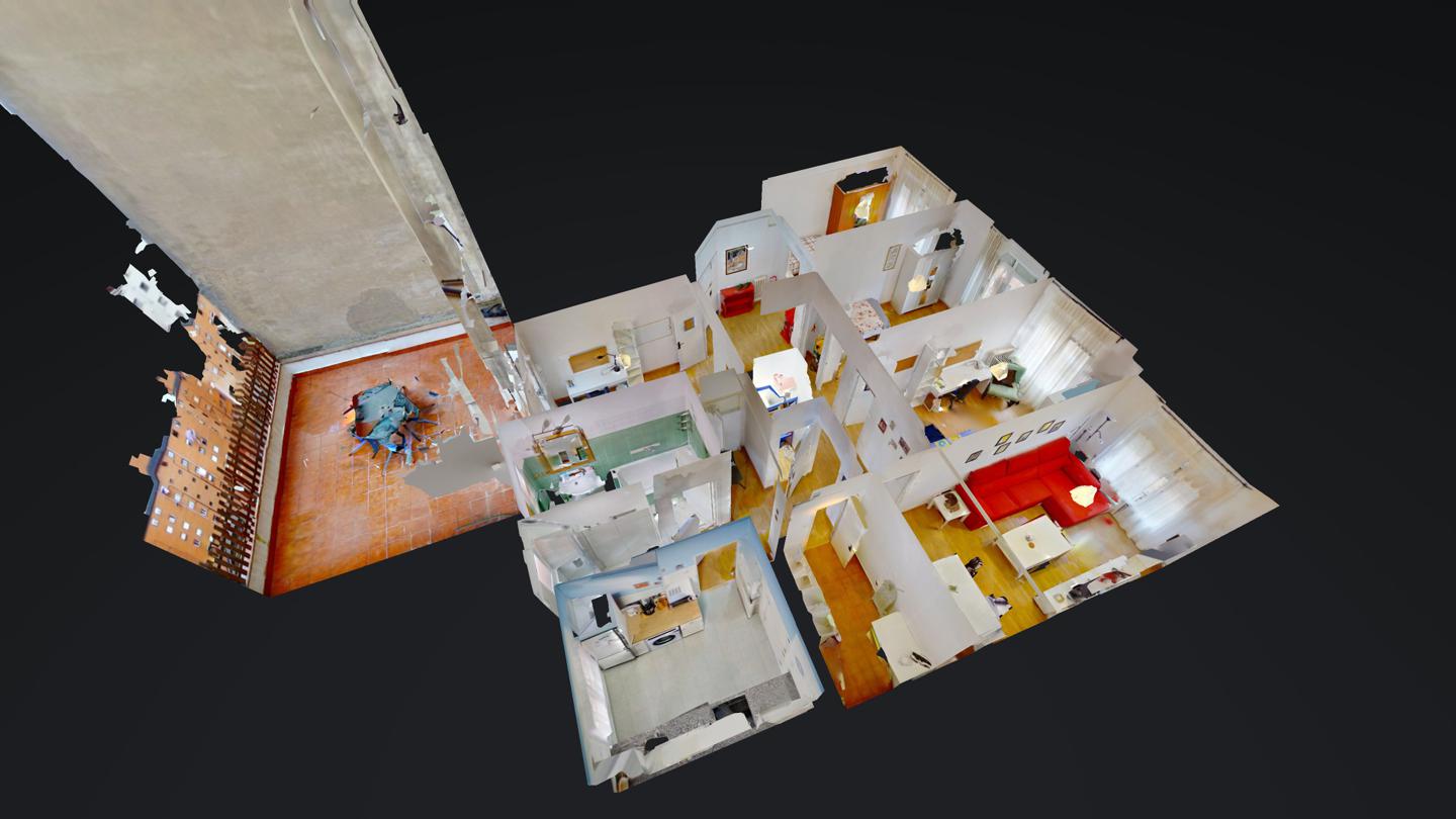 Tiene una superficie construida de 119 m² distribuidos en hall de entrada, salón comedor, cocina amueblada y equipada, cuatro habitaciones, dos baños, cuarto de lavandería, trastero y una terraza de 25 m².