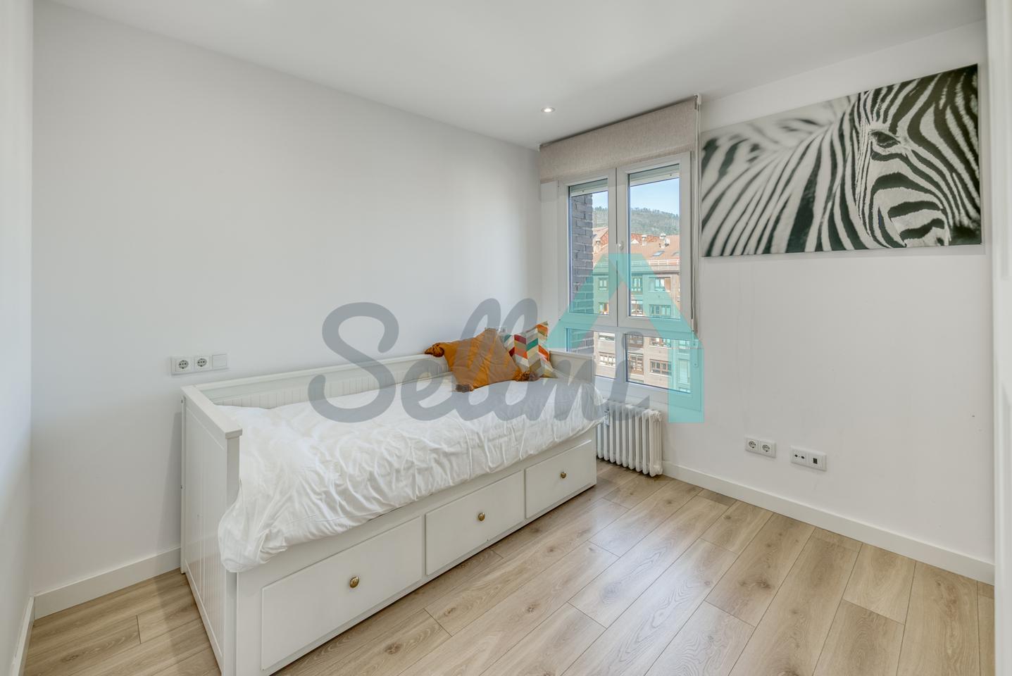 Piso en alquiler situado en la parte baja de General Elorza, en Oviedo. Se encuentra en la sexta planta de un edificio construido en 1973, sin barreras arquitectónicas y que cuenta con gimnasio, portero físico, servicios centrales y ascensor. El edificio (Verso) ha sido rehabilitado recientemente, presentando una imagen moderna y cuidada.