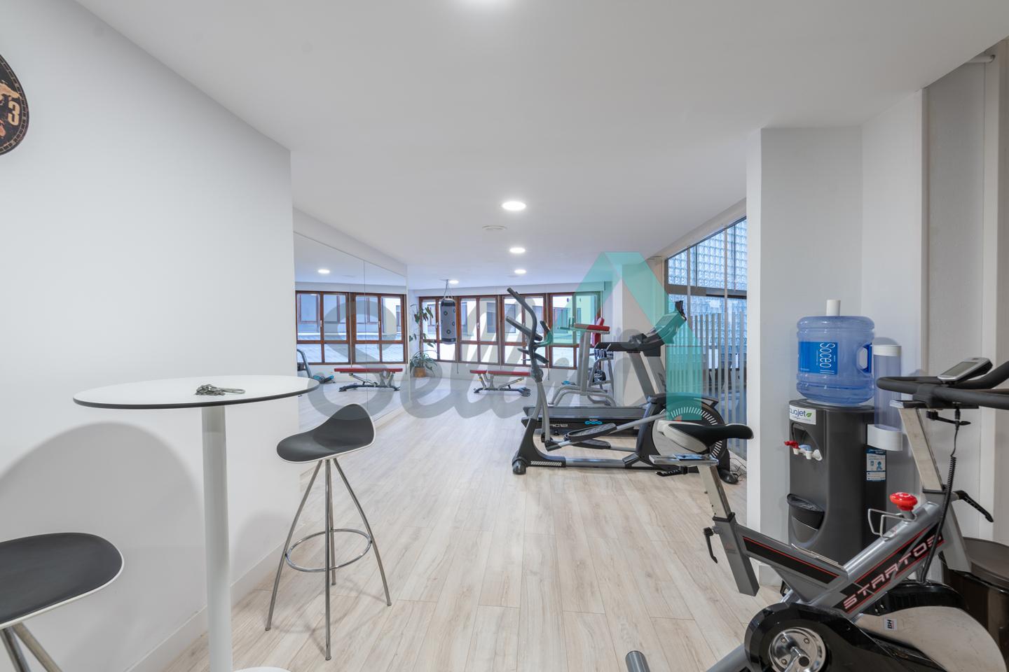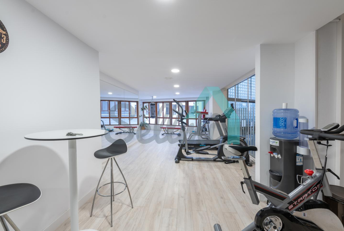 Dispone de suelos de tarima y gres, calefacción central con contador individual, ventanas de doble acristalamiento Climalit, puerta de seguridad, videoportero, etc.