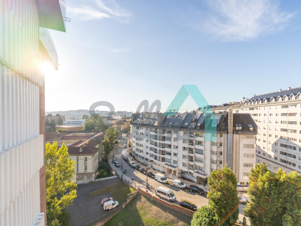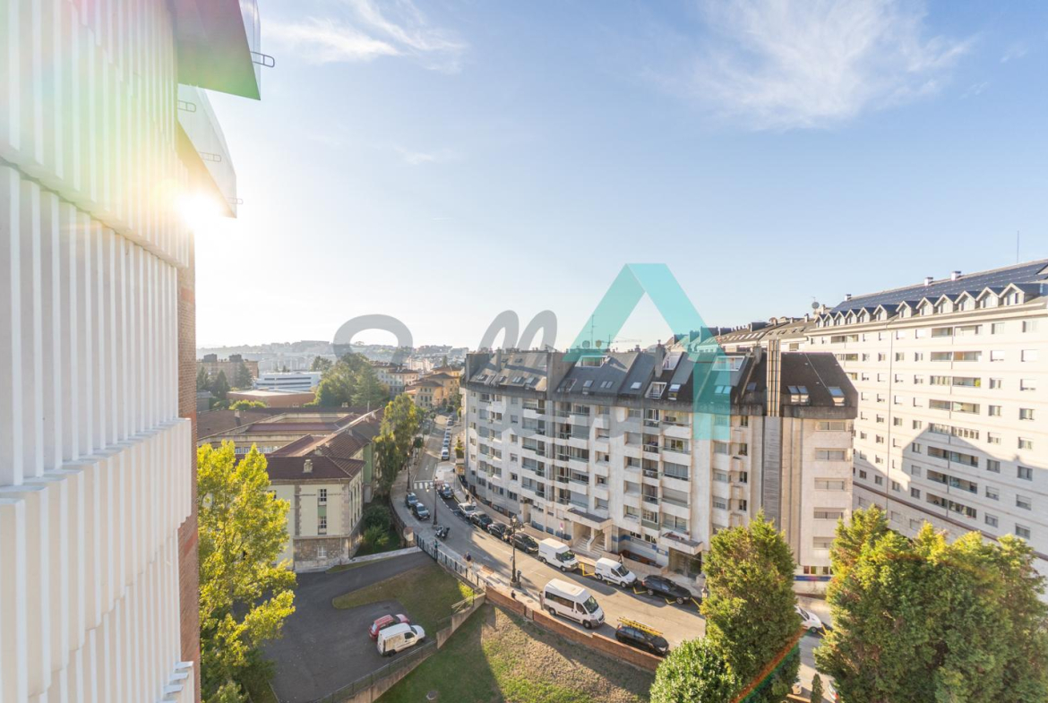 Piso en alquiler situado en la calle Dionisio Ridruejo, en Oviedo, junto al Seminario y al Parque de Invierno. Está ubicado en la décima planta de un edificio construido en 1979, sin barreras arquitectónicas y que cuenta con servicios centrales, portero físico, dos ascensores, cancha de baloncesto, jardín comunitario y sala social. Cuenta con cámaras de seguridad en las zonas comunes.