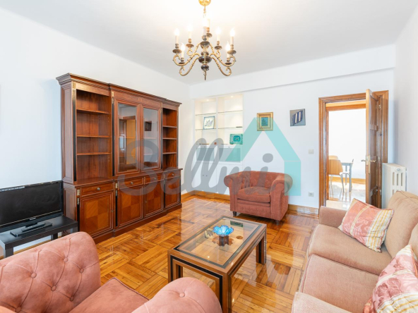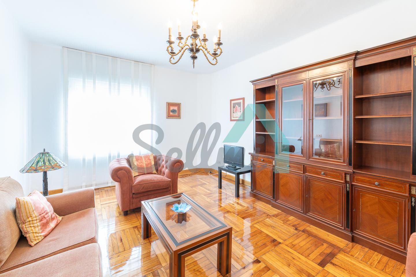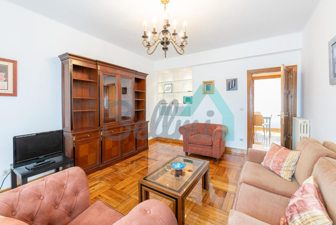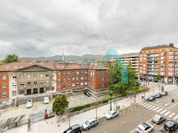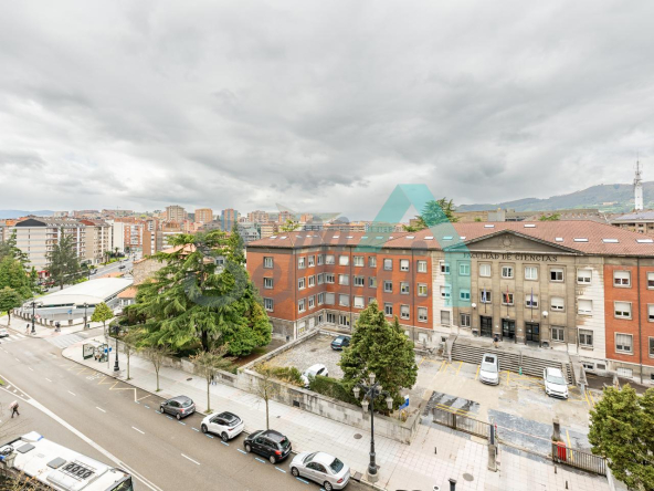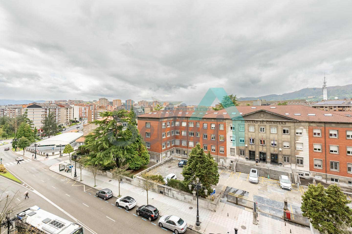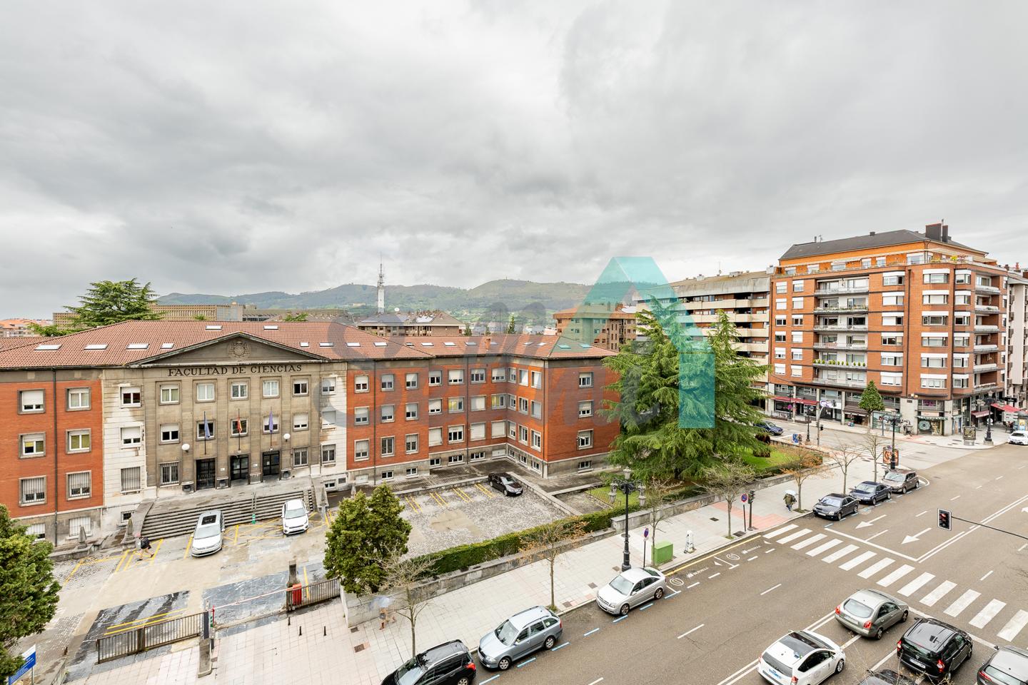 Piso en alquiler situado en la calle Leopoldo Calvo Sotelo, en la zona centro de Oviedo. Se ubica en la quinta planta de un edificio construido en 1955, sin barreras arquitectónicas y que cuenta con ascensor.