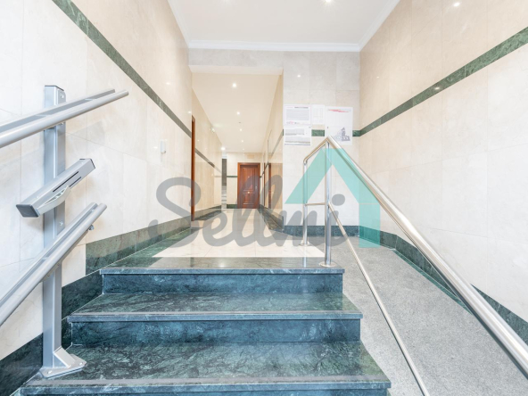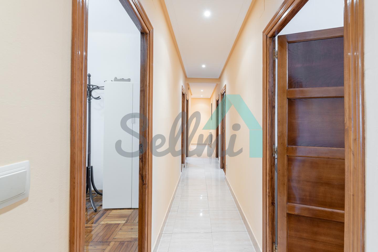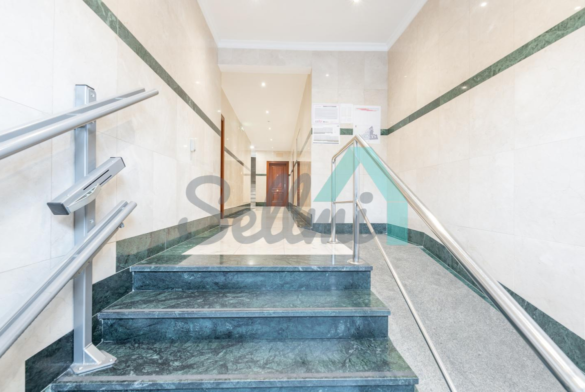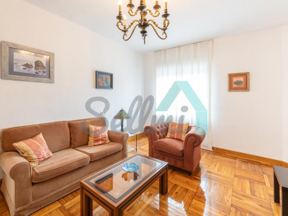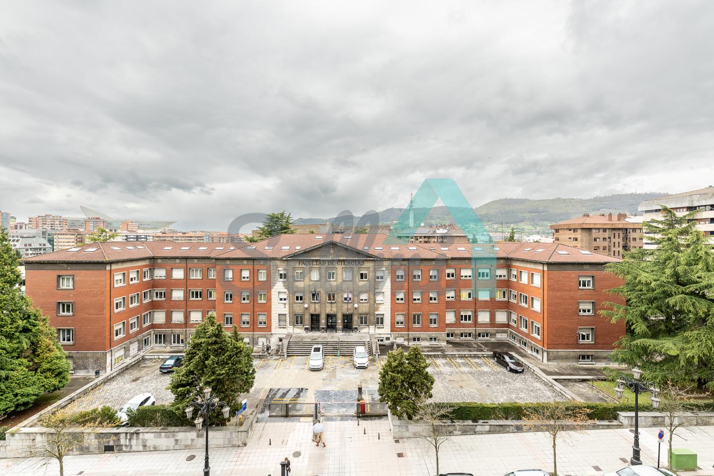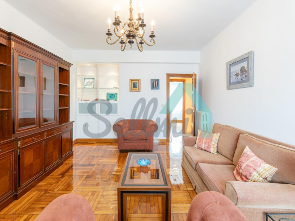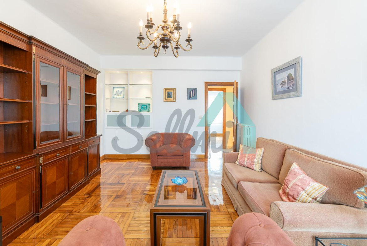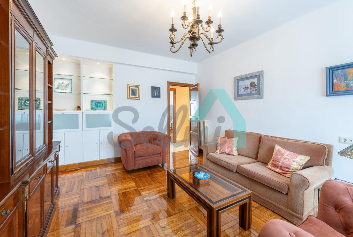 Piso en alquiler situado en la calle Leopoldo Calvo Sotelo, en la zona centro de Oviedo. Se ubica en la quinta planta de un edificio construido en 1955, sin barreras arquitectónicas y que cuenta con ascensor.