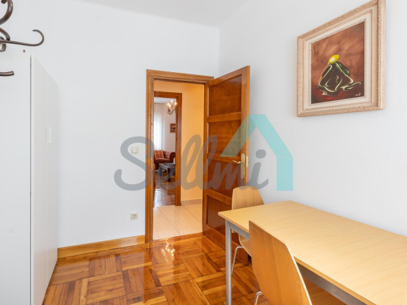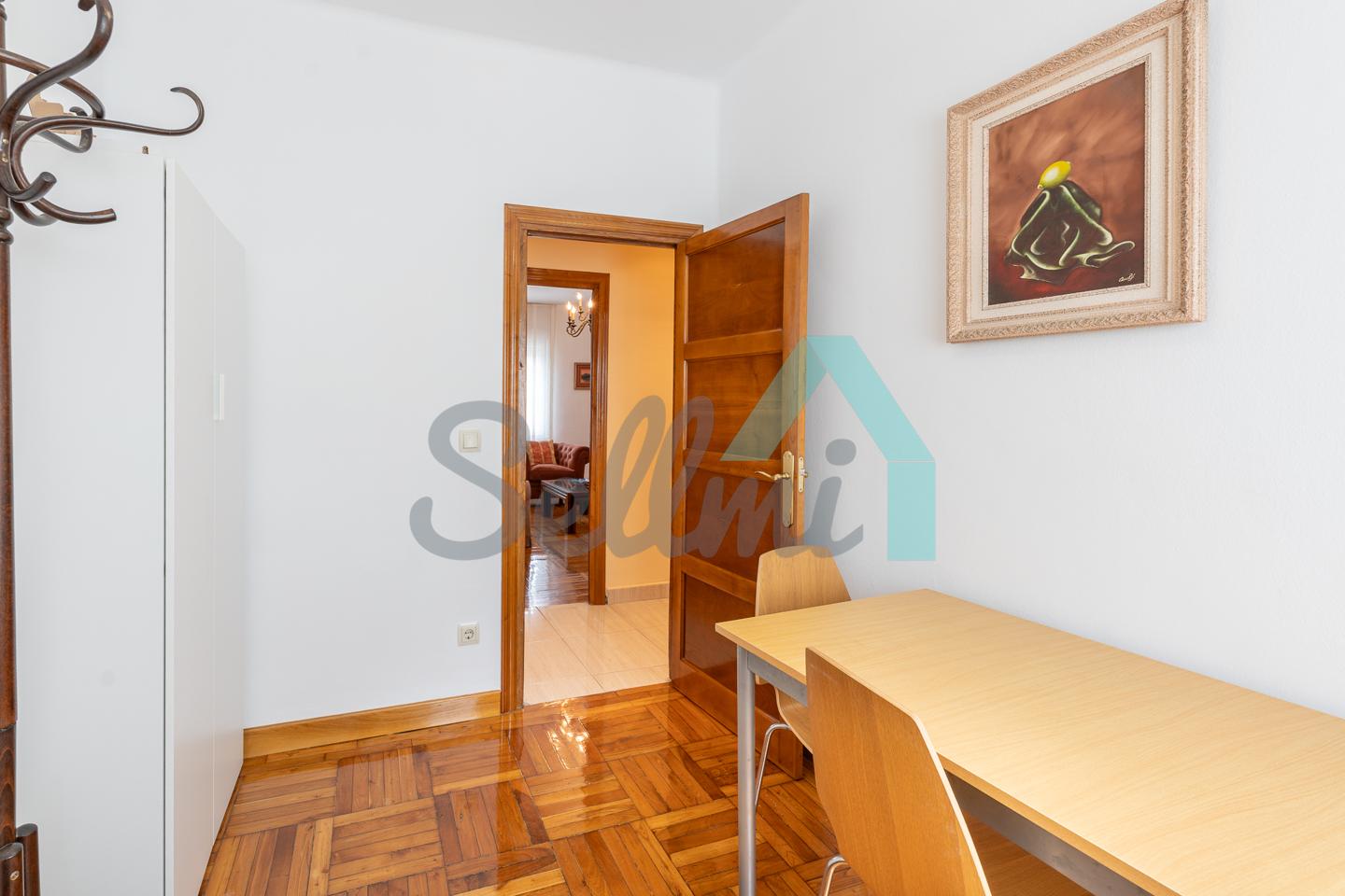 Dispone de calefacción individual de gas ciudad, suelos de parquet y gres, ventanas de doble acristalamiento, armarios empotrados, puerta de seguridad, videoportero, etc. Es exterior y muy luminoso, con orientación noroeste.