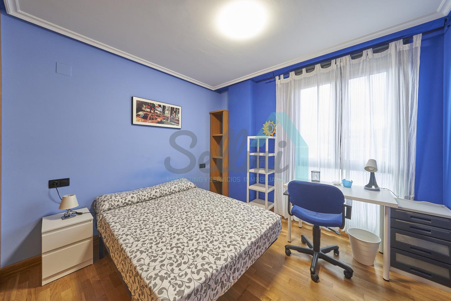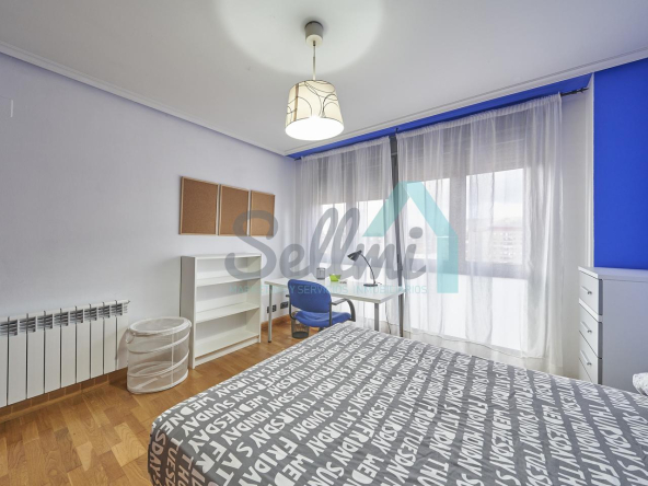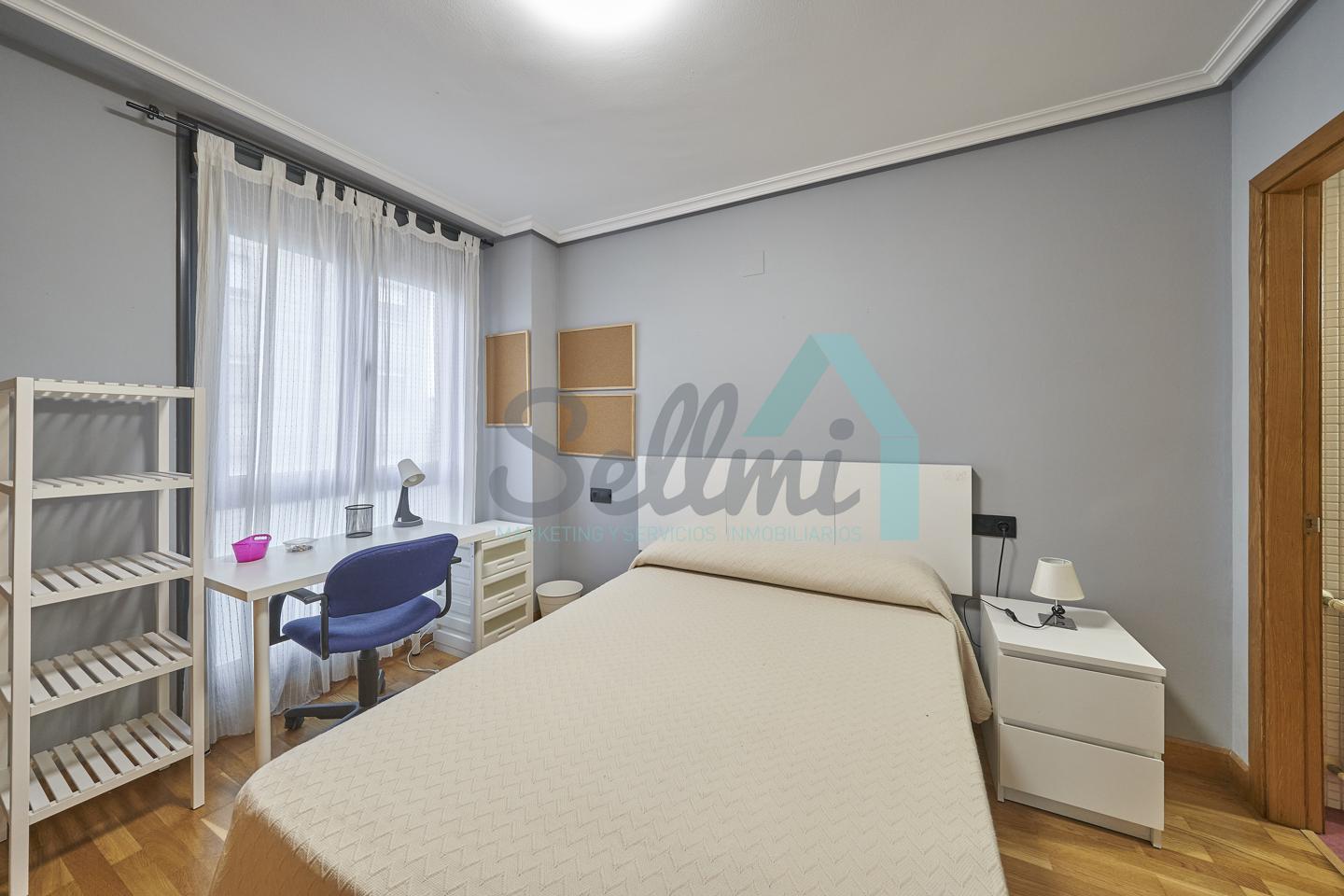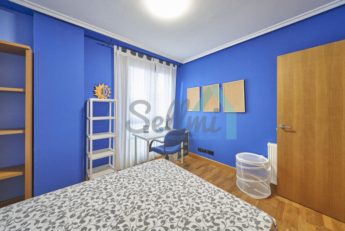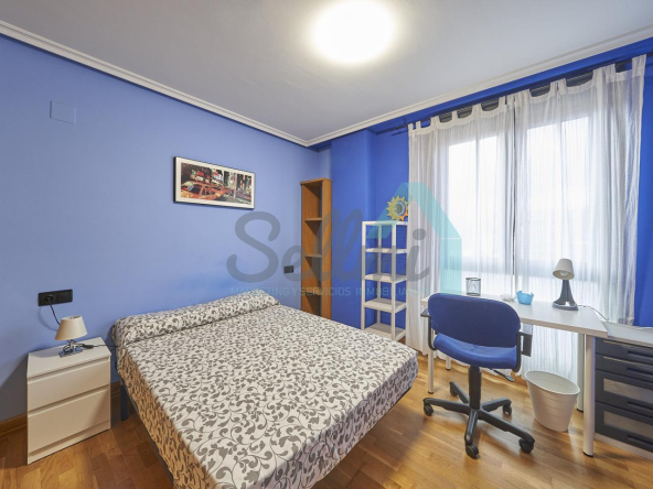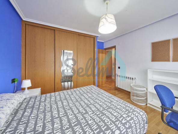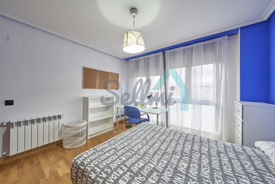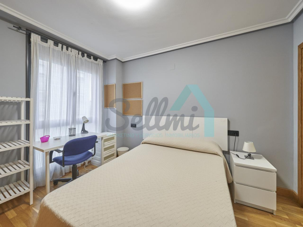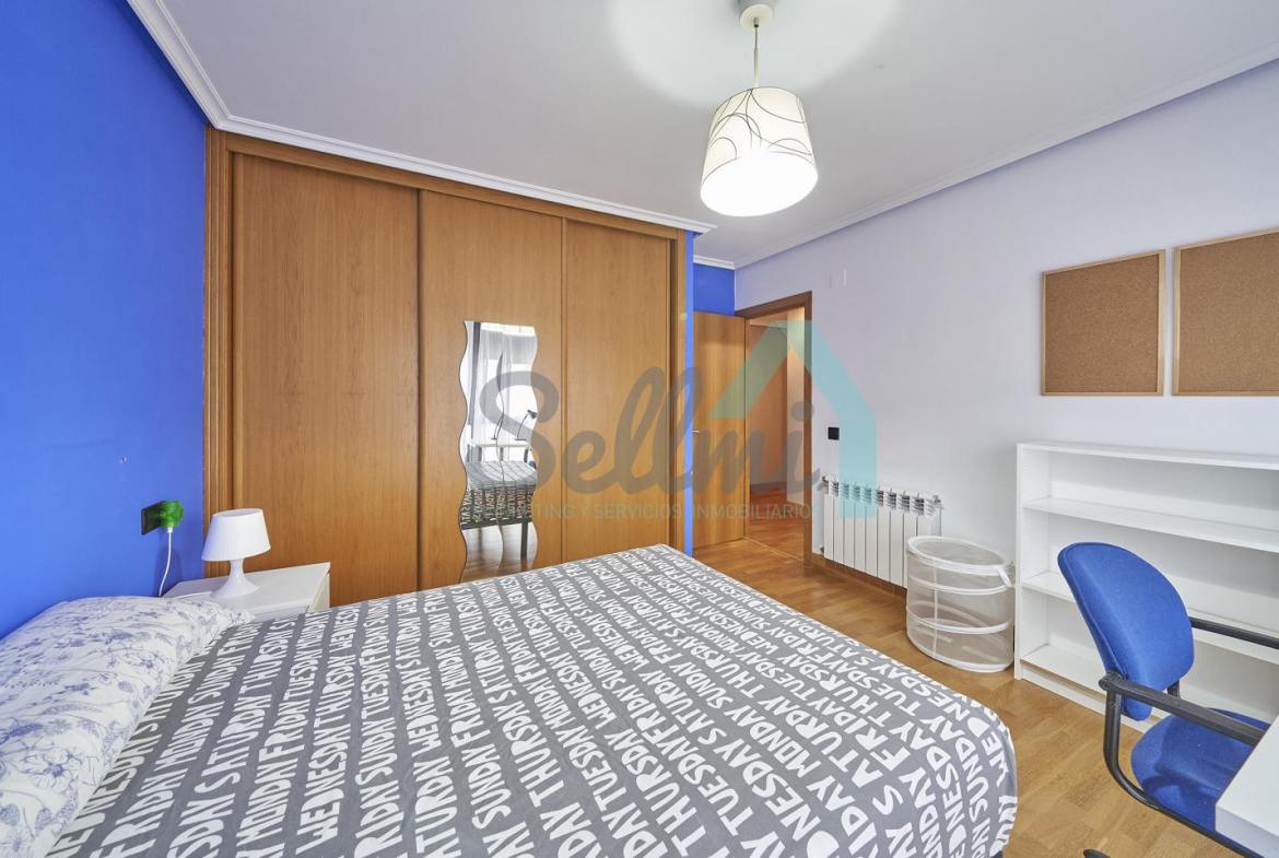 Dispone de mesas de estudio, suelos de parquet y gres, calefacción individual de gas natural, ventanas de doble acristalamiento, armarios empotrados, puerta de seguridad, etc.