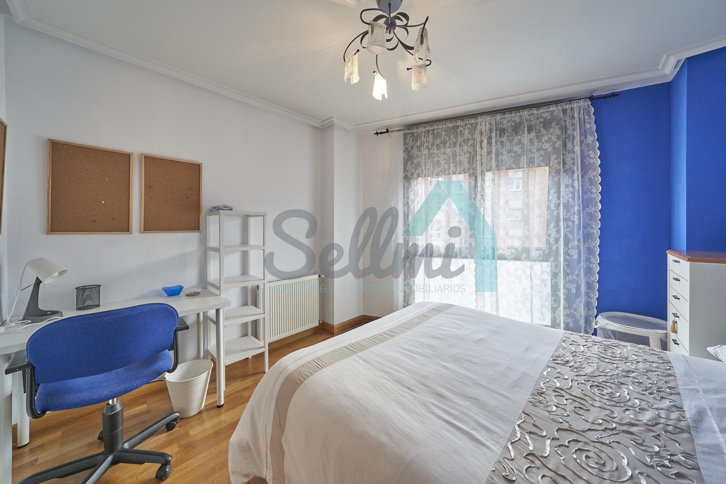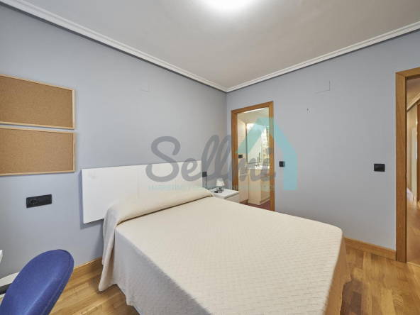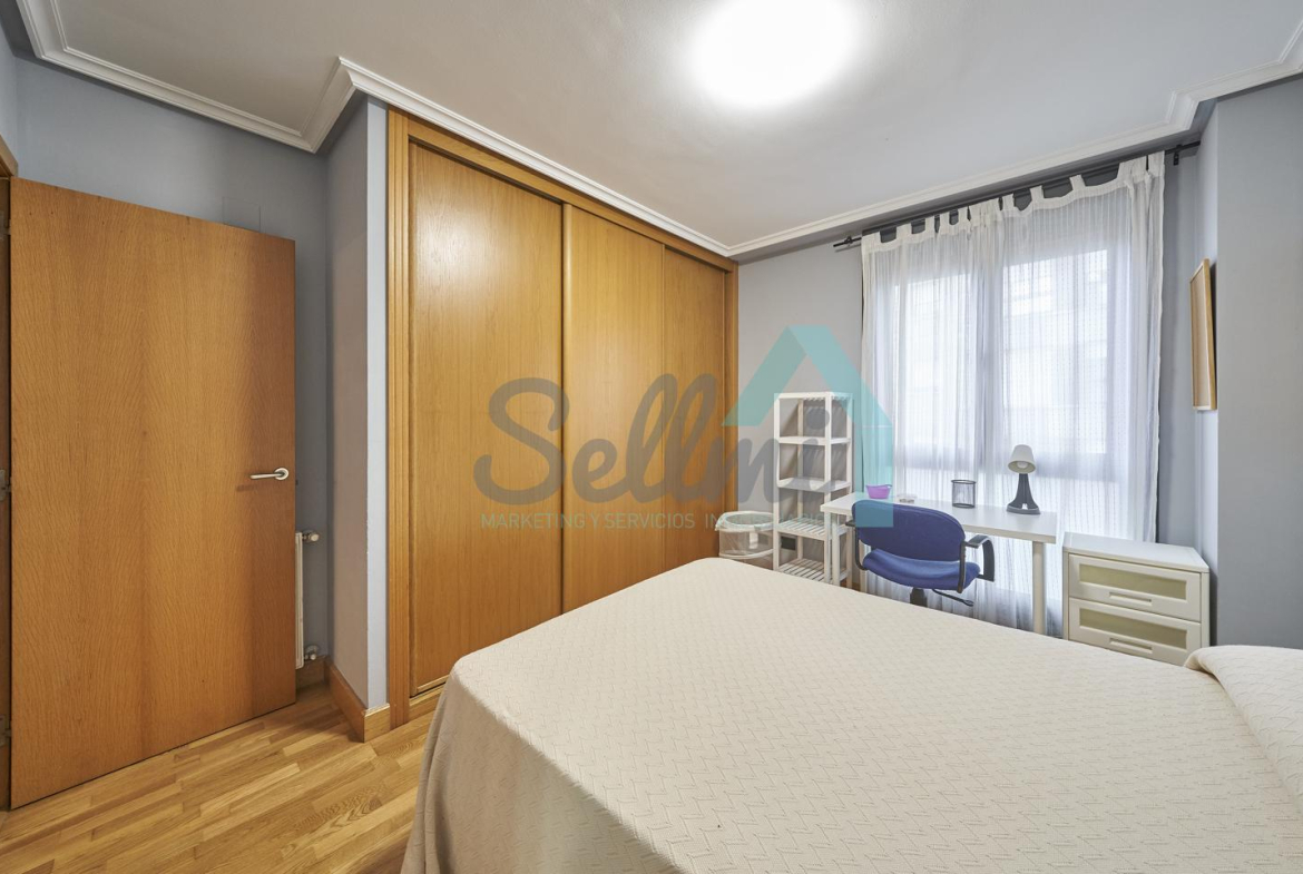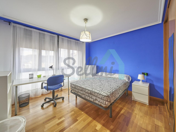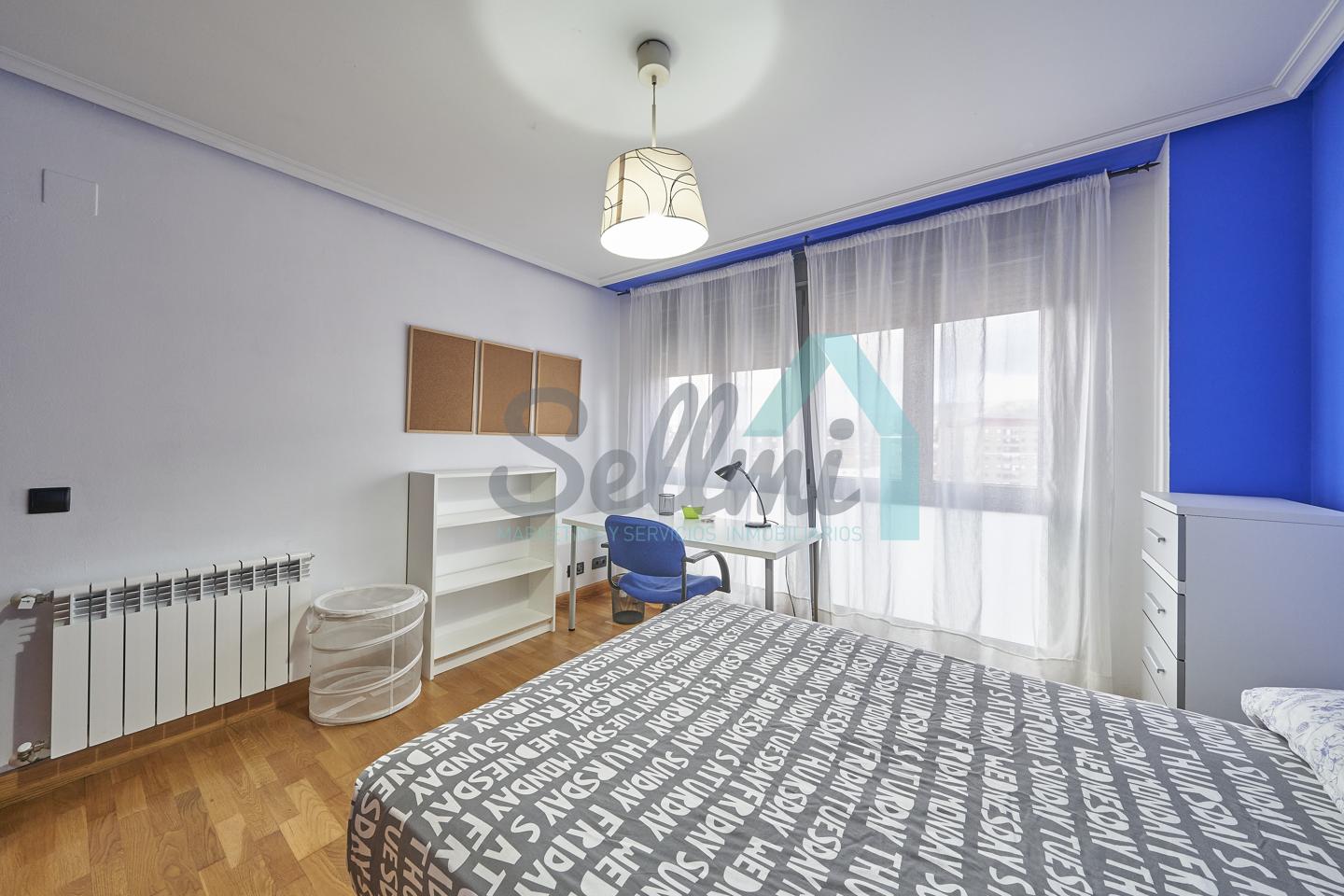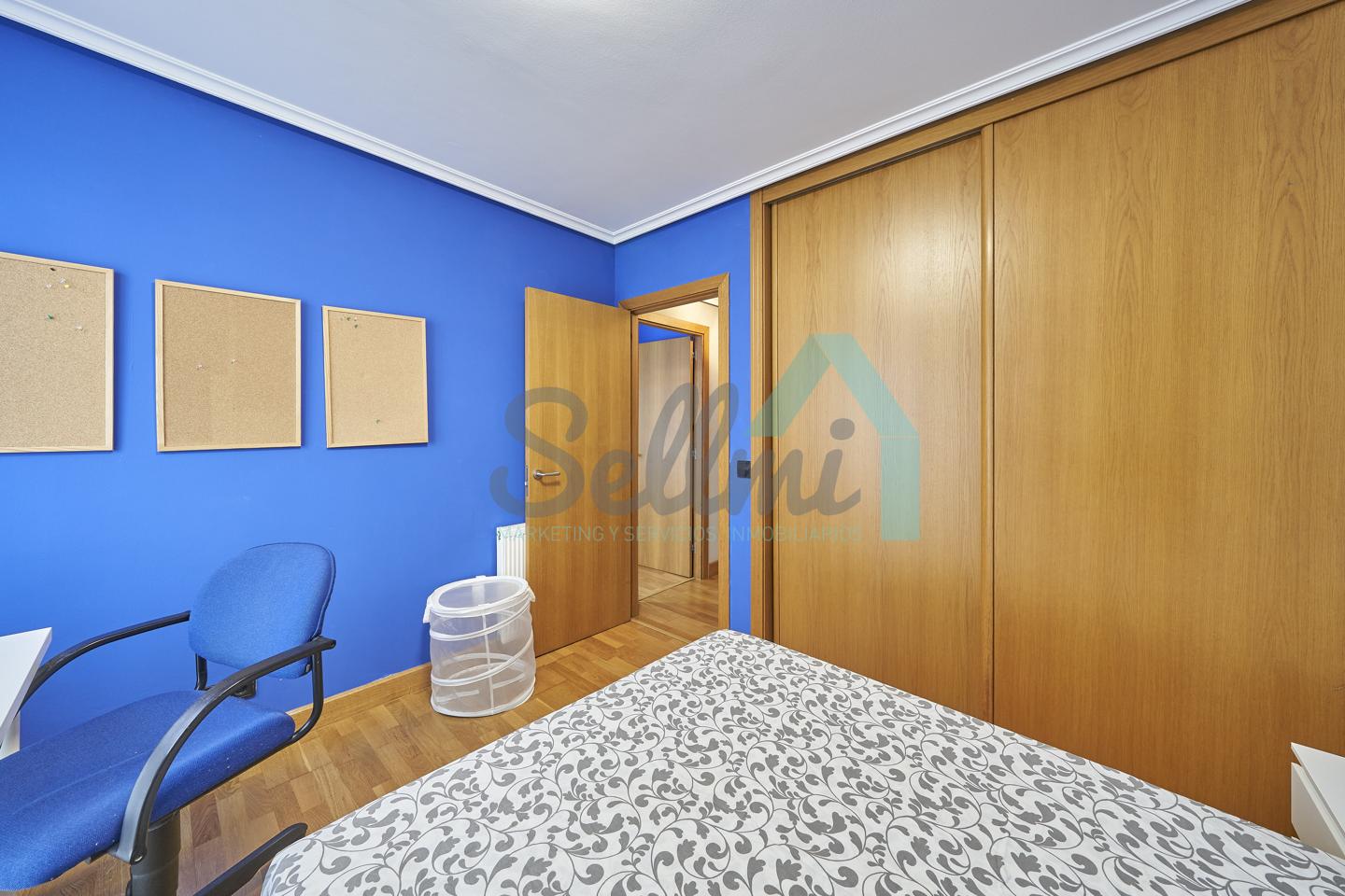Dispone de mesas de estudio, suelos de parquet y gres, calefacción individual de gas natural, ventanas de doble acristalamiento, armarios empotrados, puerta de seguridad, etc.