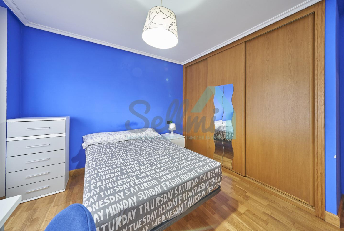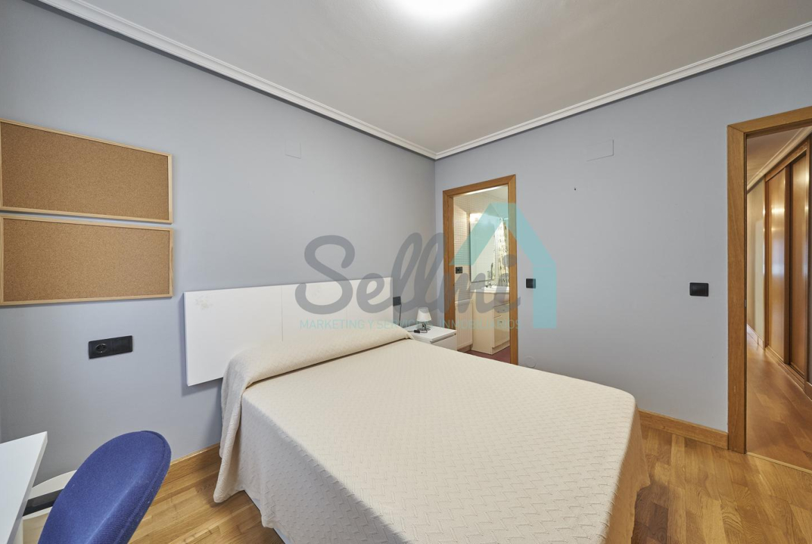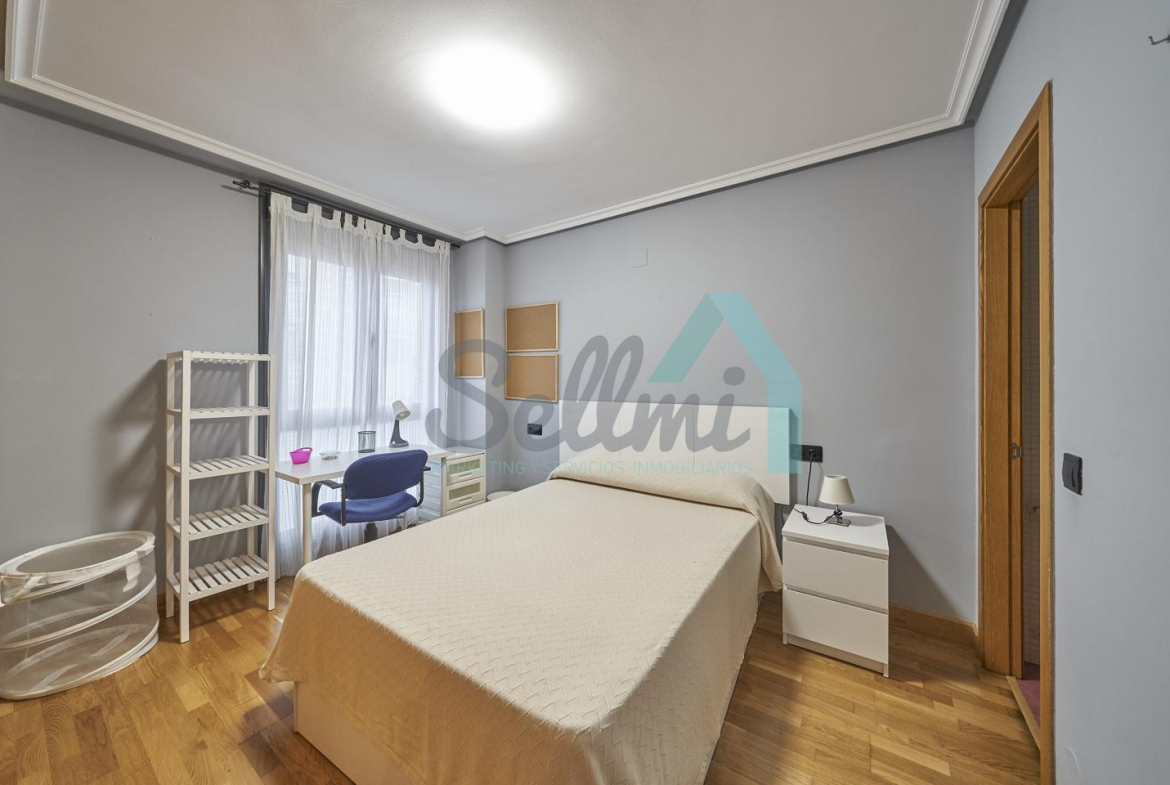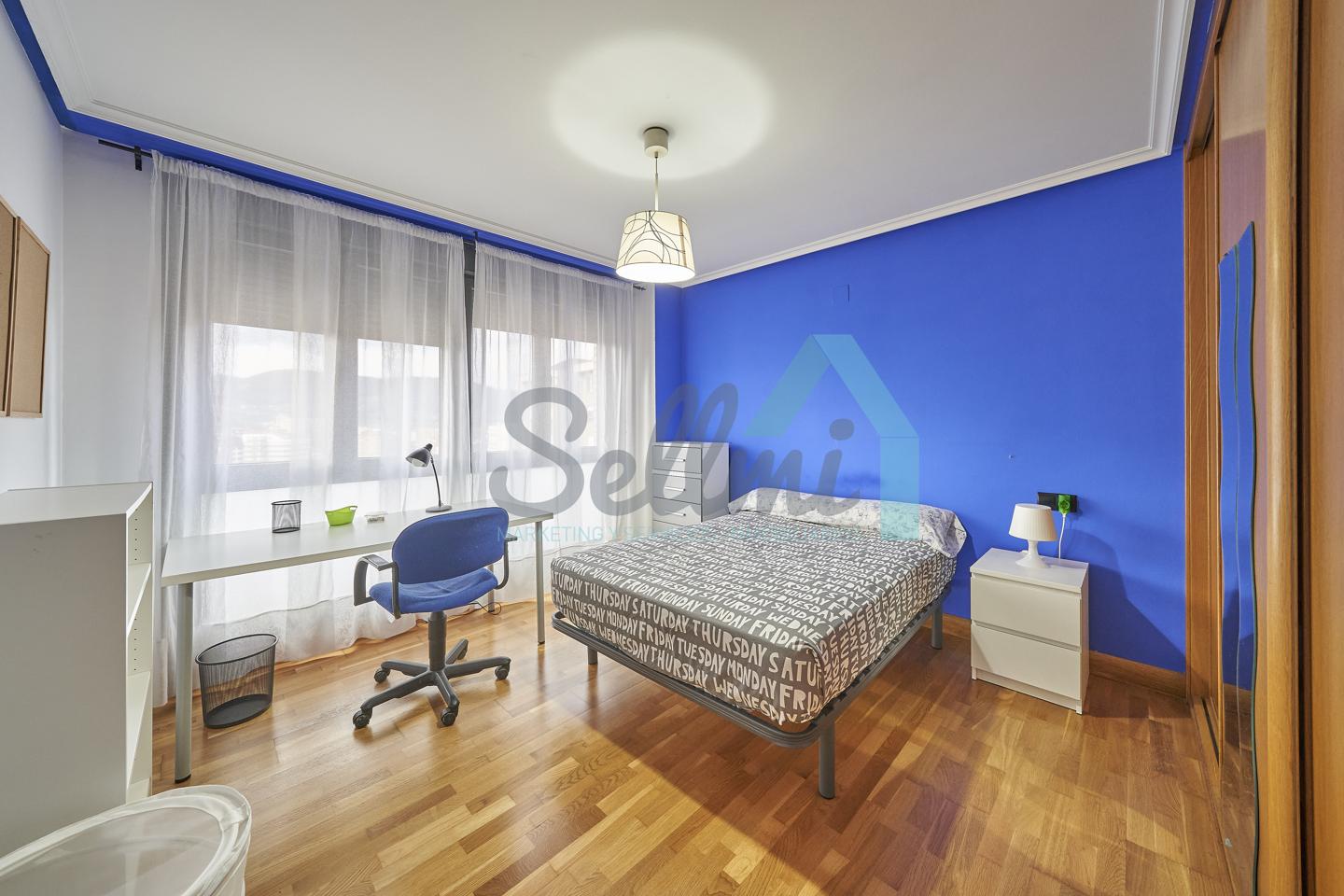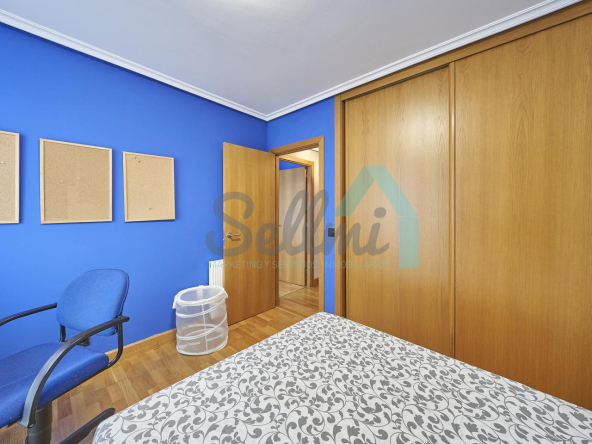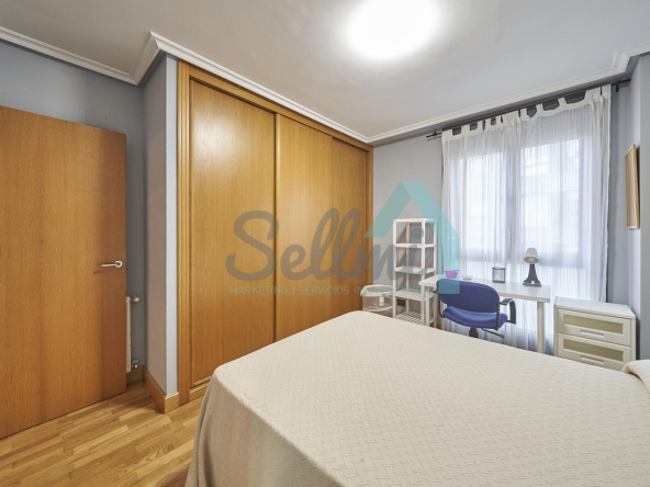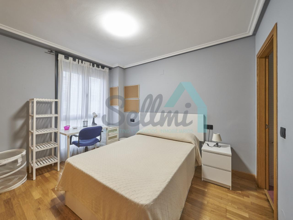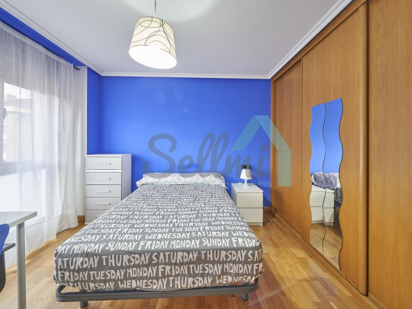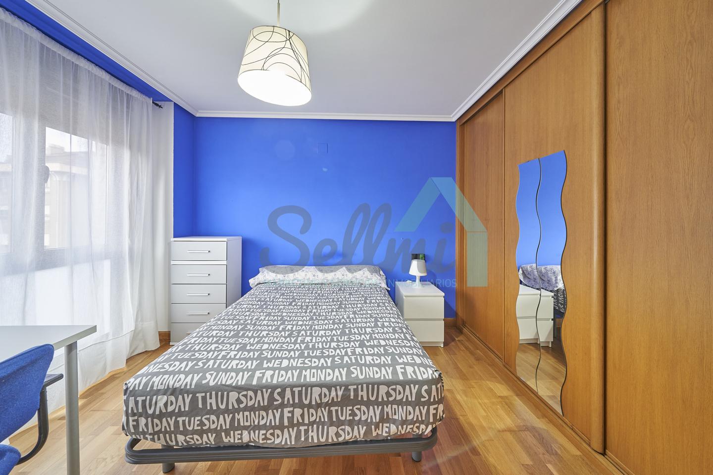 Dispone de mesas de estudio, suelos de parquet y gres, calefacción individual de gas natural, ventanas de doble acristalamiento, armarios empotrados, puerta de seguridad, etc.