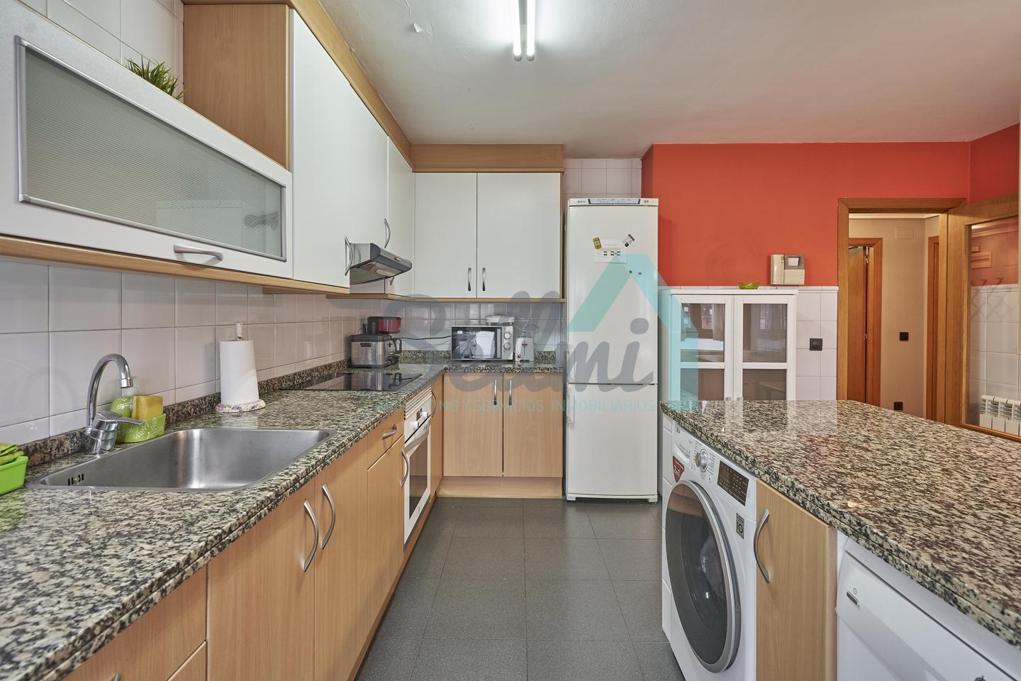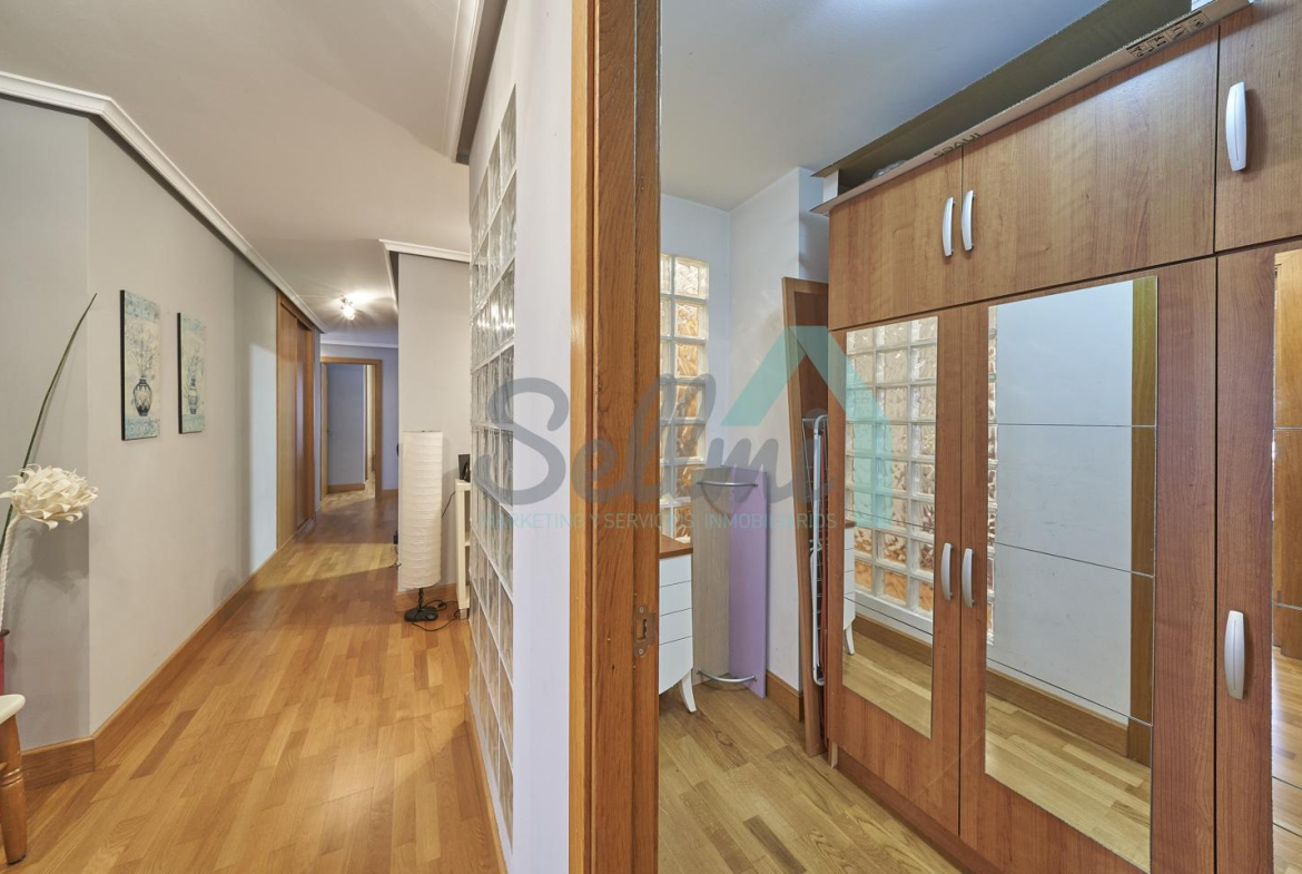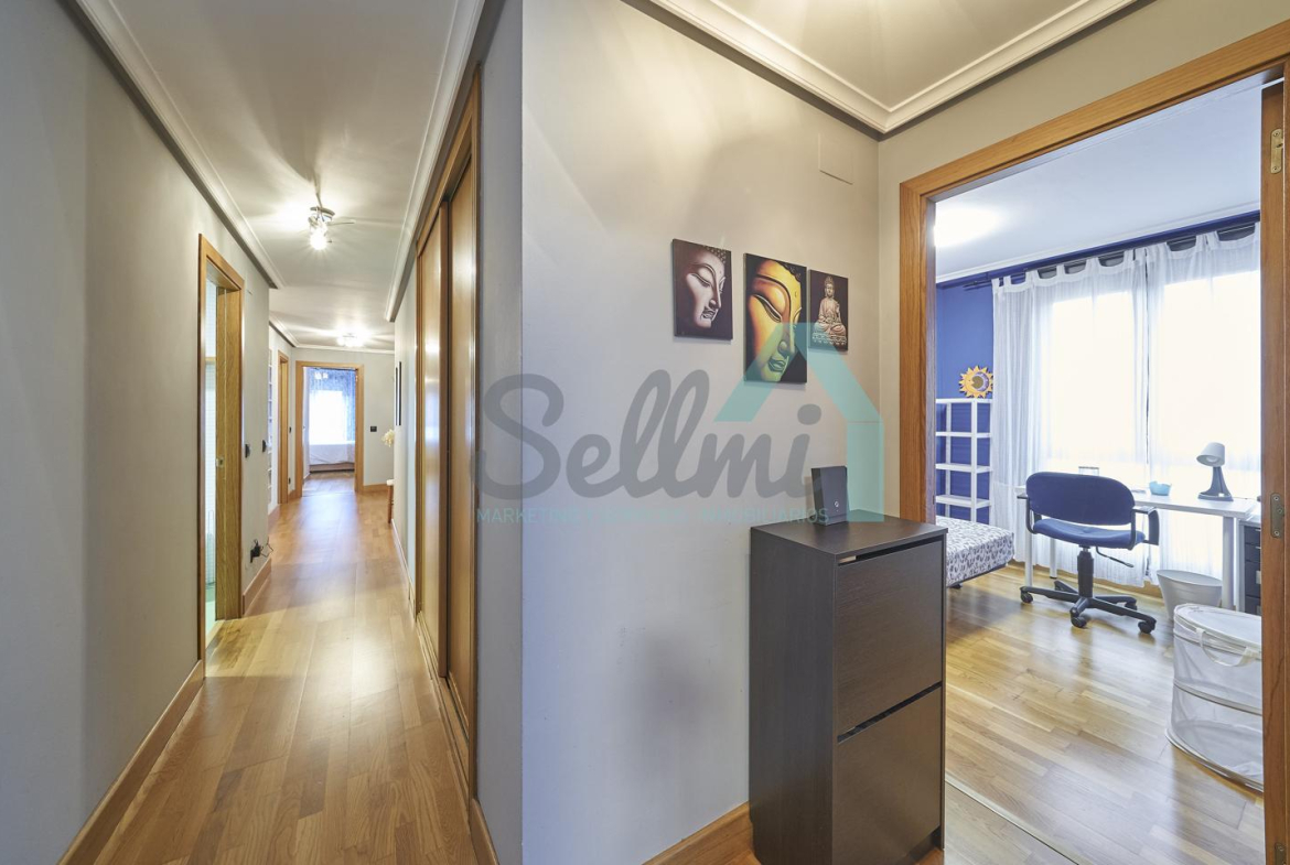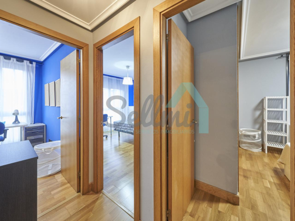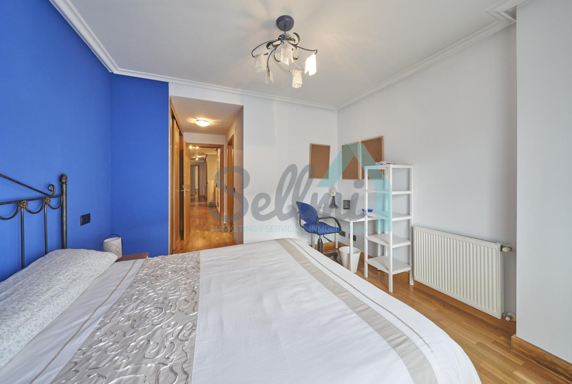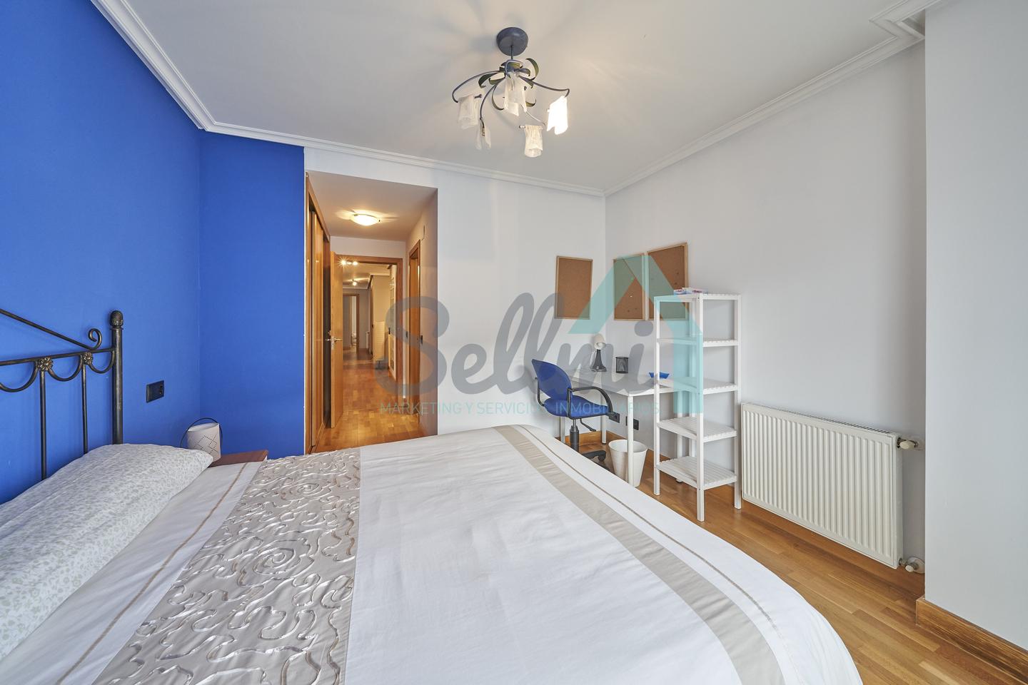 Dispone de mesas de estudio, suelos de parquet y gres, calefacción individual de gas natural, ventanas de doble acristalamiento, armarios empotrados, puerta de seguridad, etc.