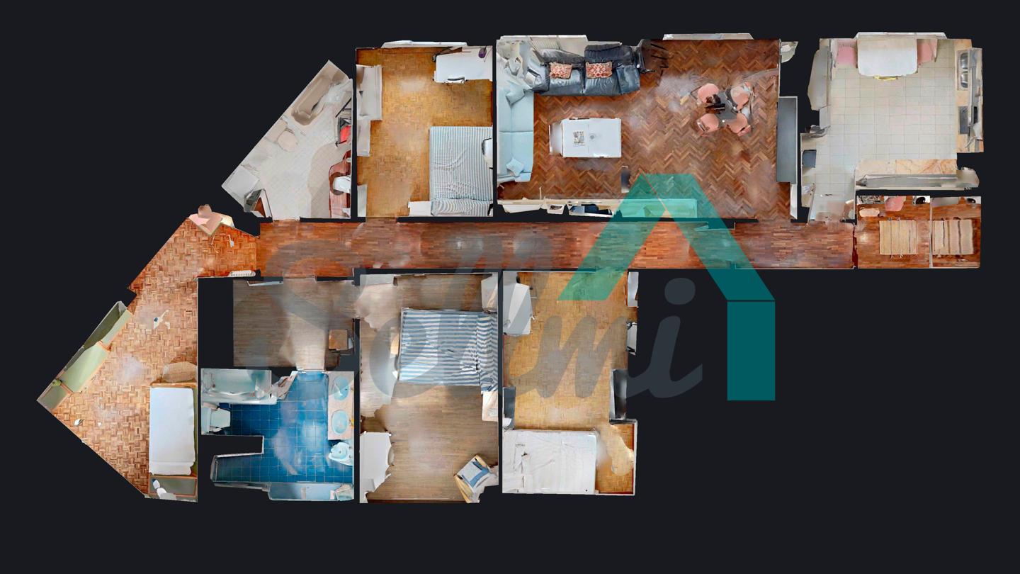 4 habitaciones y 2 baños.