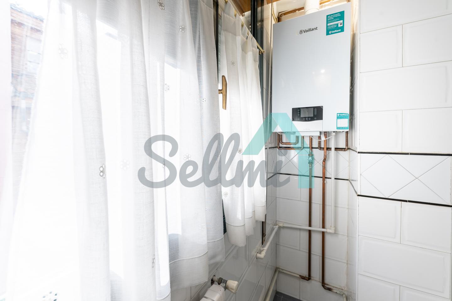 Dispone de calefacción individual de gas natural (caldera nueva), ventanas de doble acristalamiento, armarios empotrados, suelos de parquet y gres, puerta de seguridad, videoportero, etc.