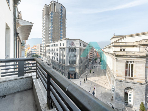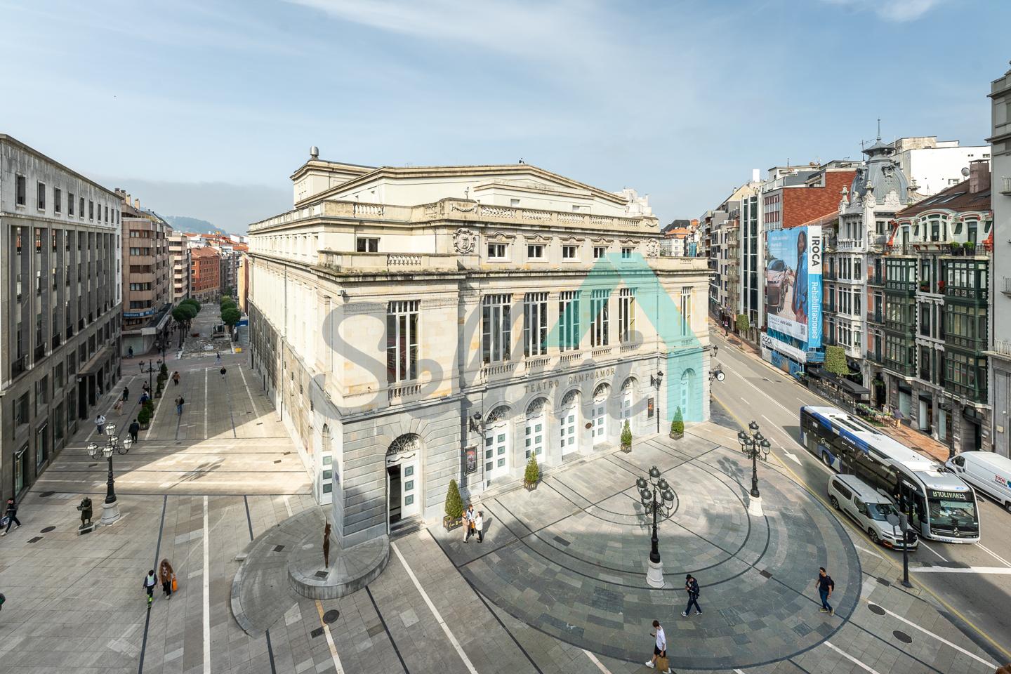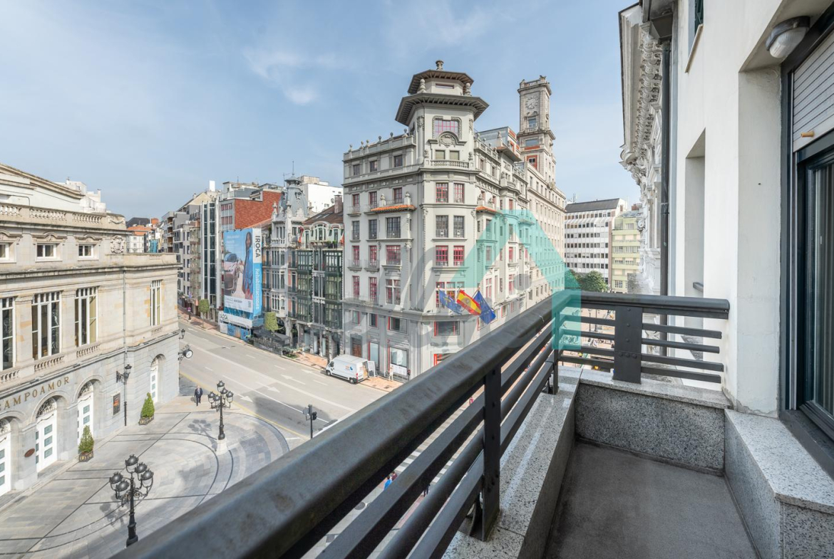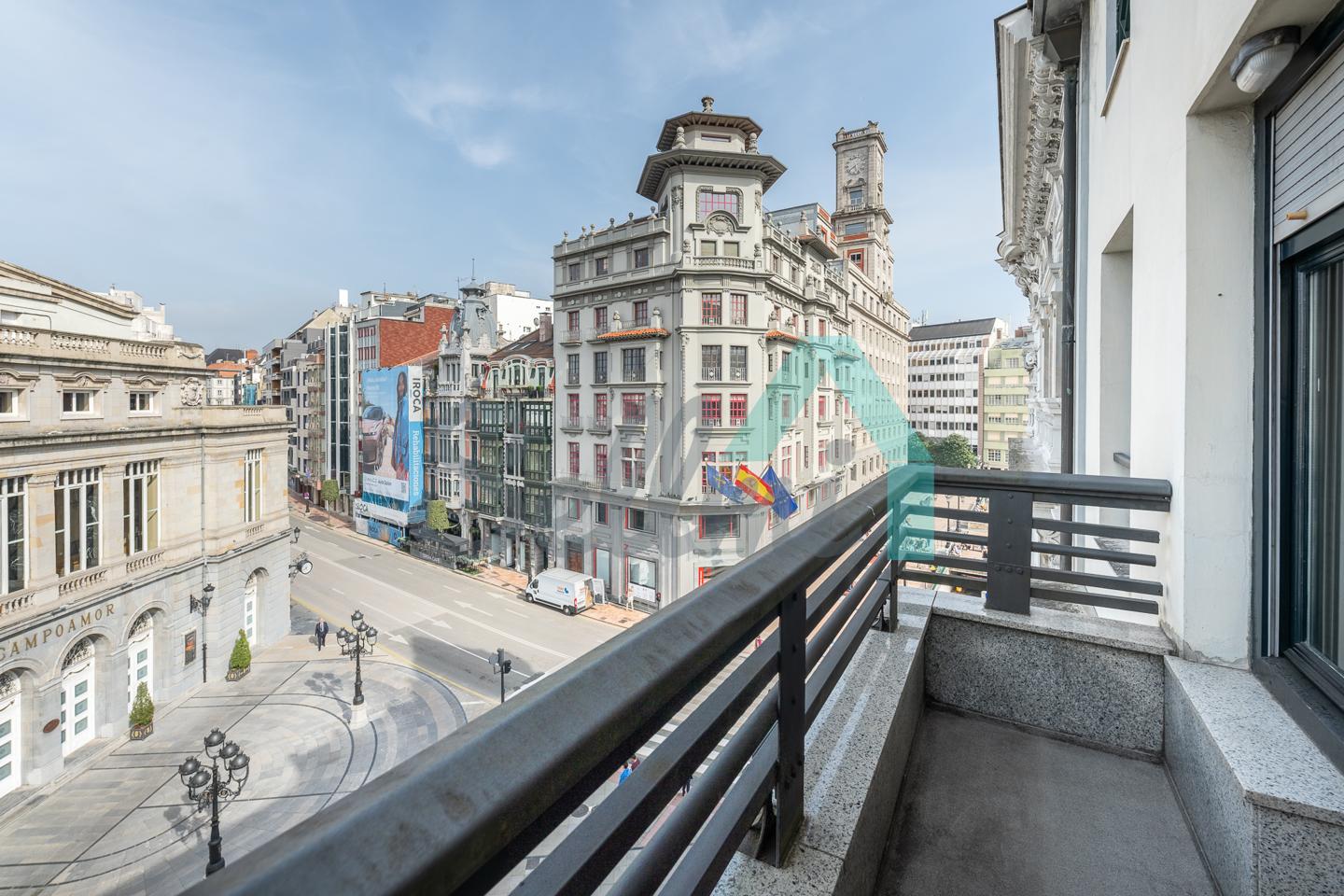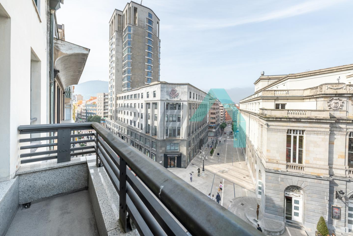 Piso en alquiler situado en la calle Pelayo, en pleno centro de Oviedo. Ocupa toda la cuarta planta de un edificio totalmente rehabilitado en 1992, sin barreras arquitectónicas y que cuenta con ascensor. Es exterior y muy luminoso, con orientación noreste y vistas al Teatro Campoamor.