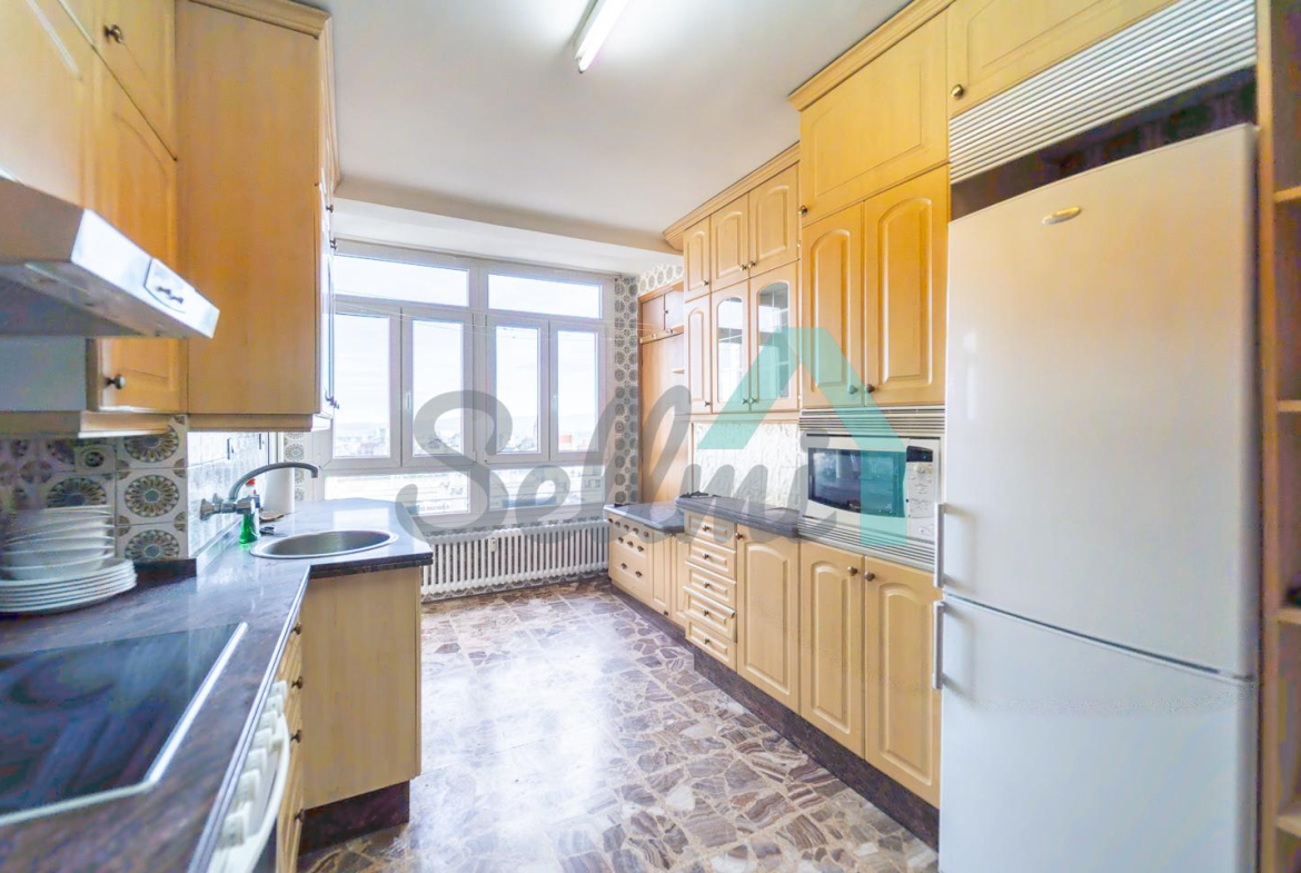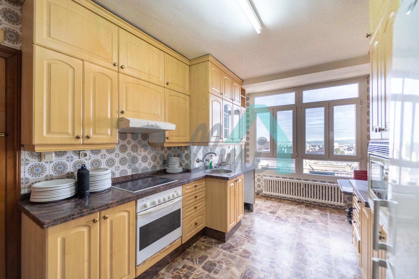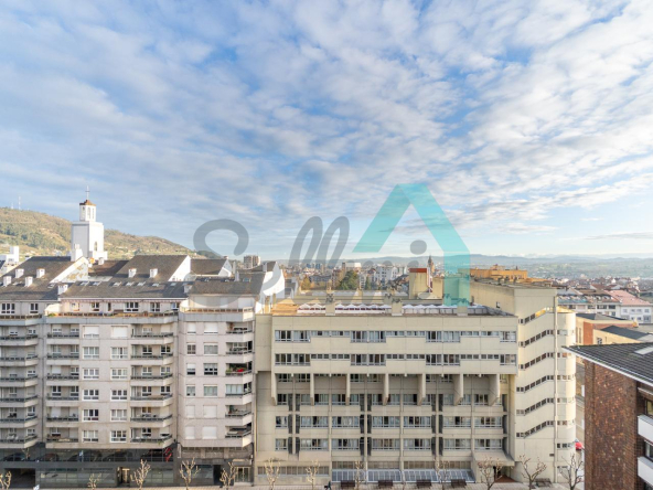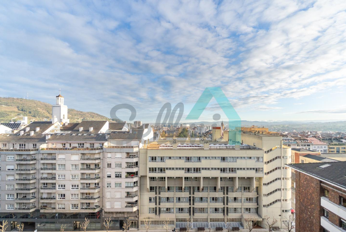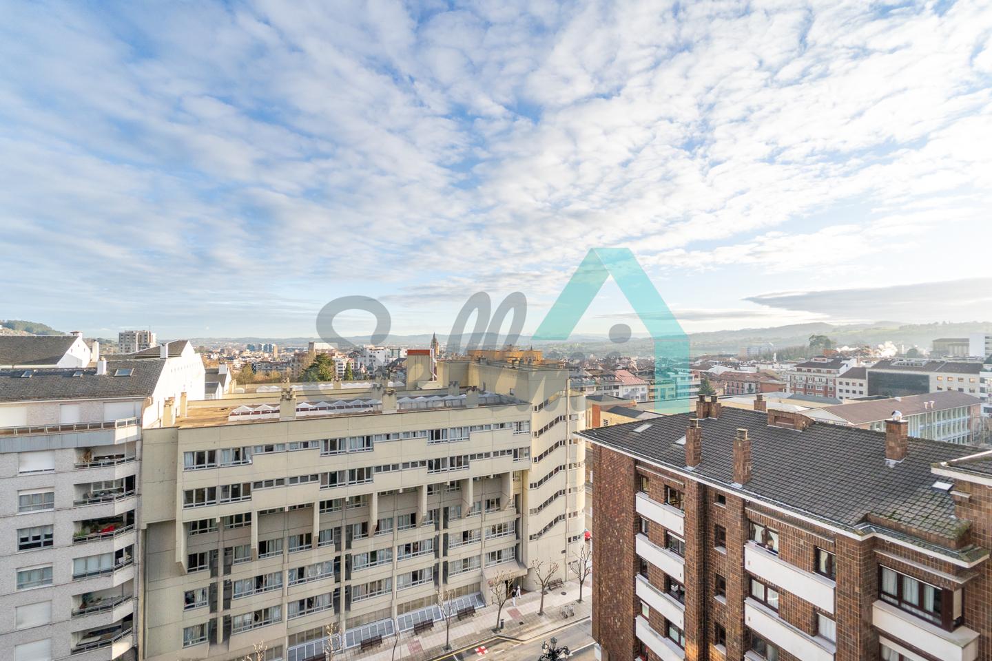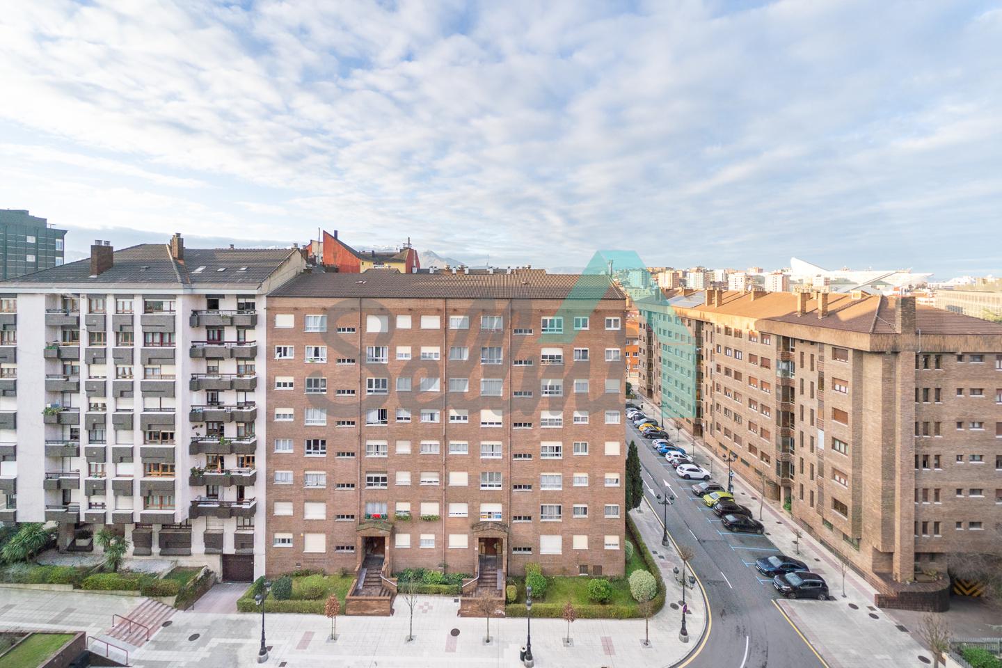 Piso en alquiler en pleno centro de Oviedo, situado a un paso del Campo de San Francisco y de la Plaza de España. Está ubicado en la novena planta de un edificio construido en 1975, sin barreras arquitectónicas y que cuenta con servicios centrales, portero físico y dos ascensores.