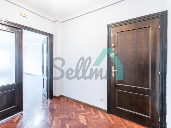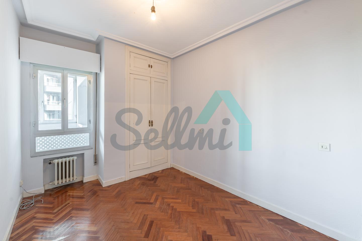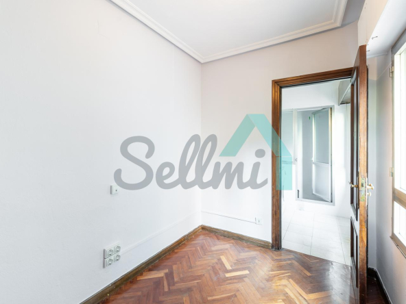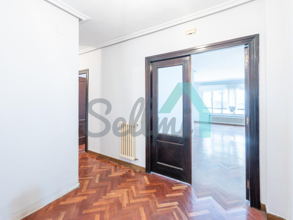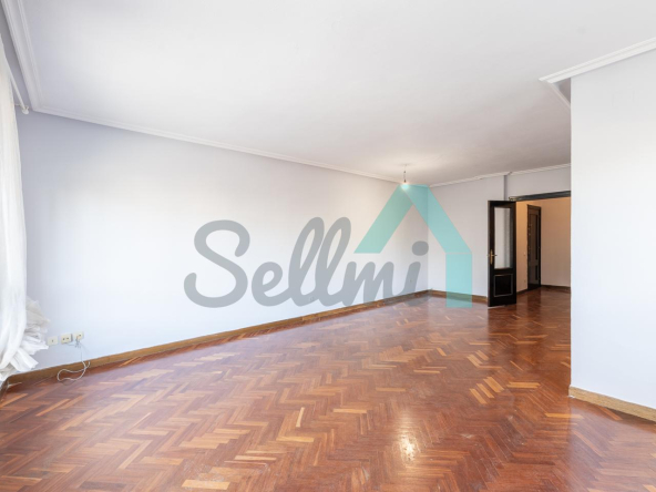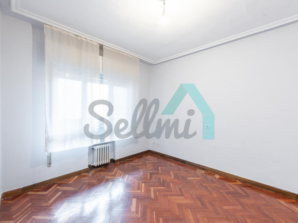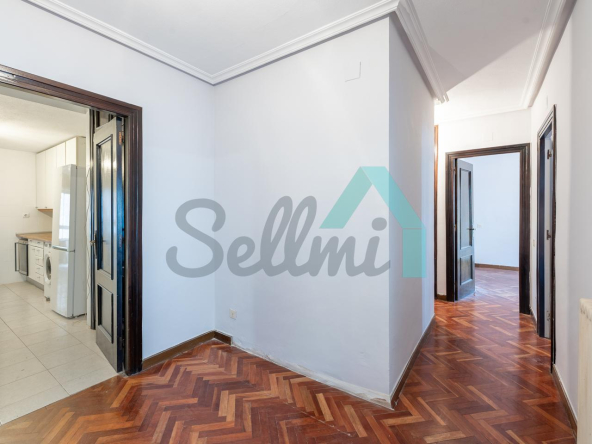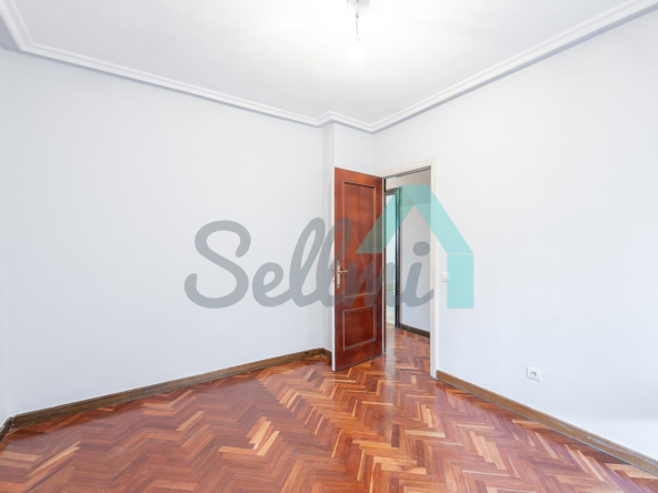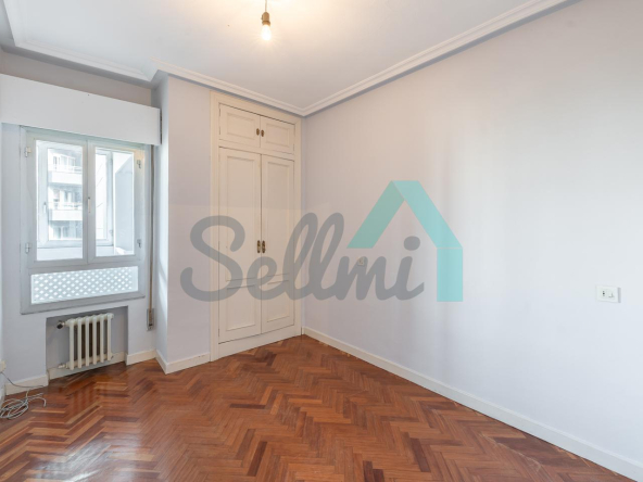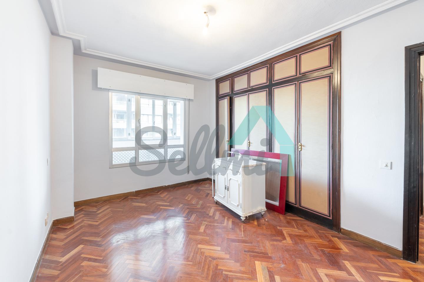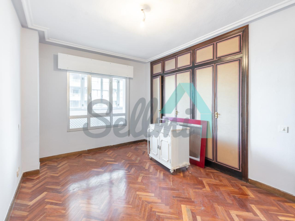 Dispone de calefacción central, suelos de parquet y gres, armarios empotrados en todas las habitaciones y un gran armario empotrado en el pasillo, ventanas de aluminio, dos puertas de acceso (principal y de servicio), videoportero, etc. Es exterior, con orientación norte y vistas a la Plaza de América.