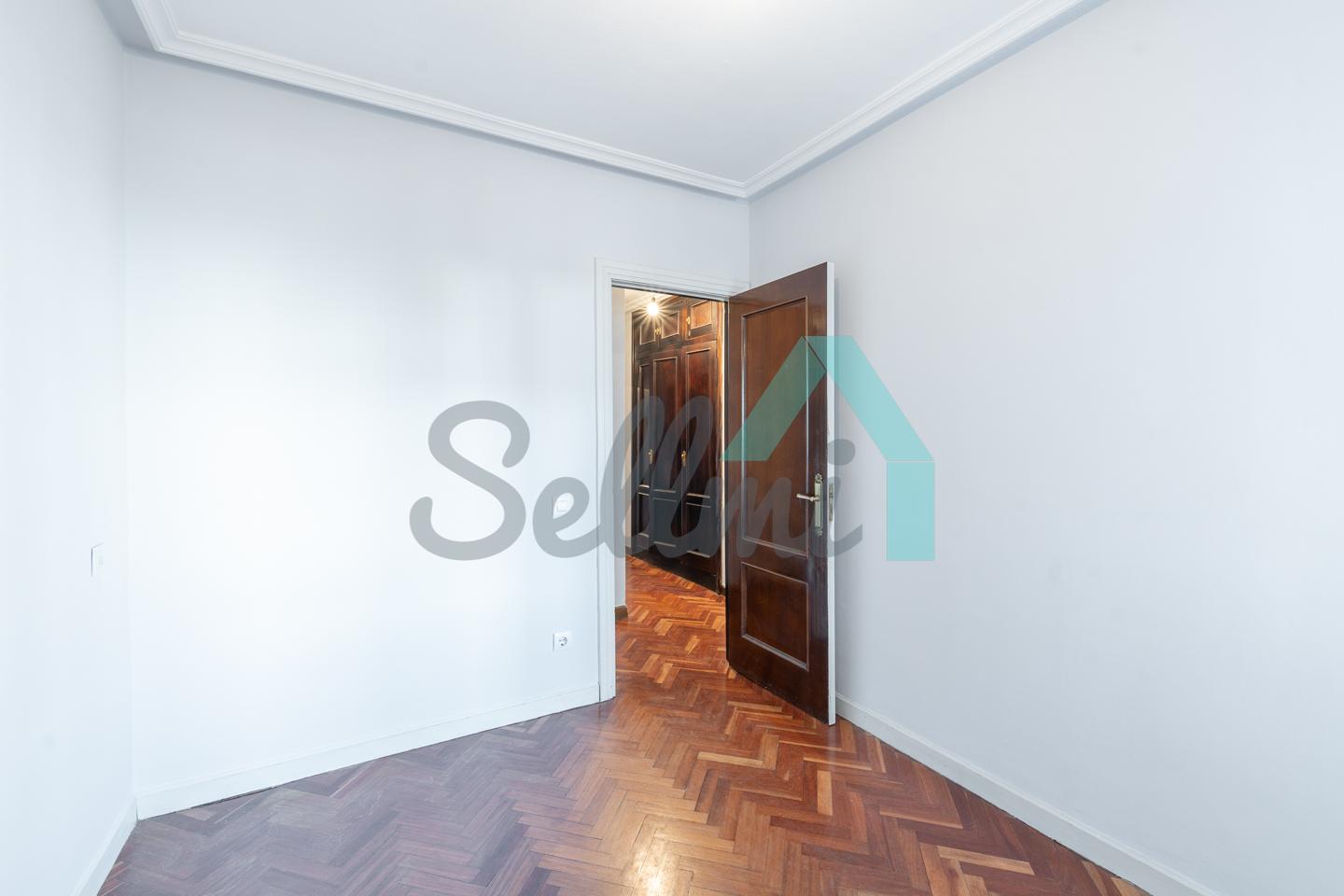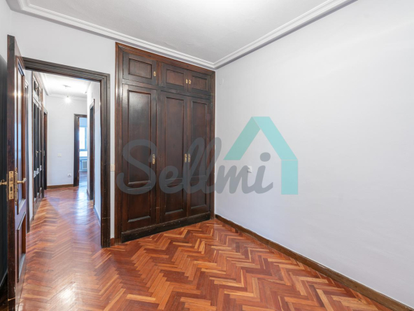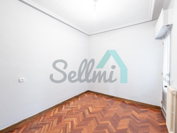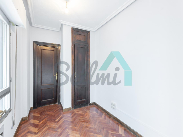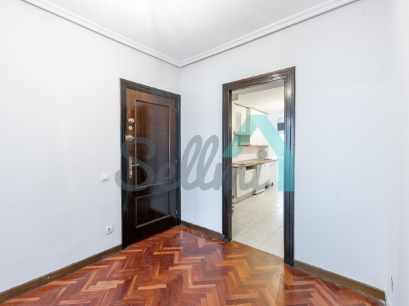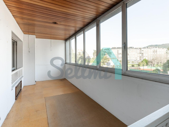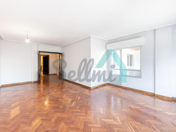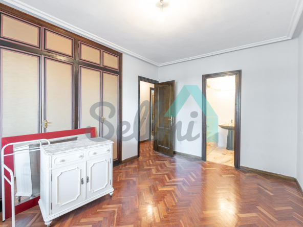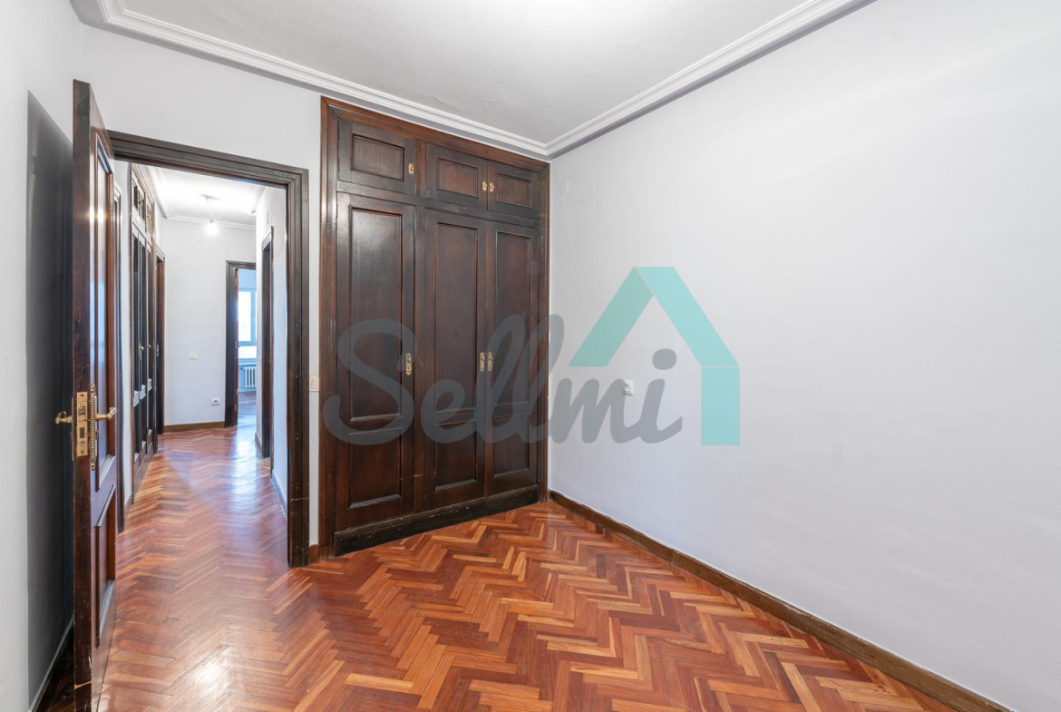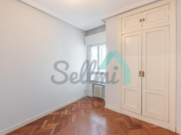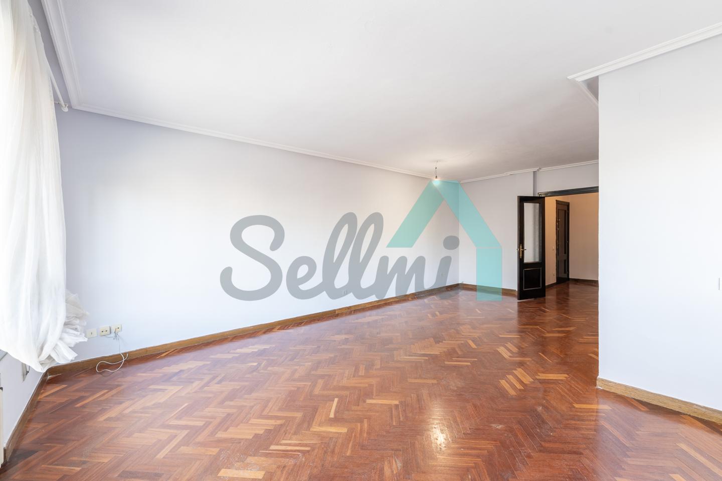 Dispone de calefacción central, suelos de parquet y gres, armarios empotrados en todas las habitaciones y un gran armario empotrado en el pasillo, ventanas de aluminio, dos puertas de acceso (principal y de servicio), videoportero, etc. Es exterior, con orientación norte y vistas a la Plaza de América.