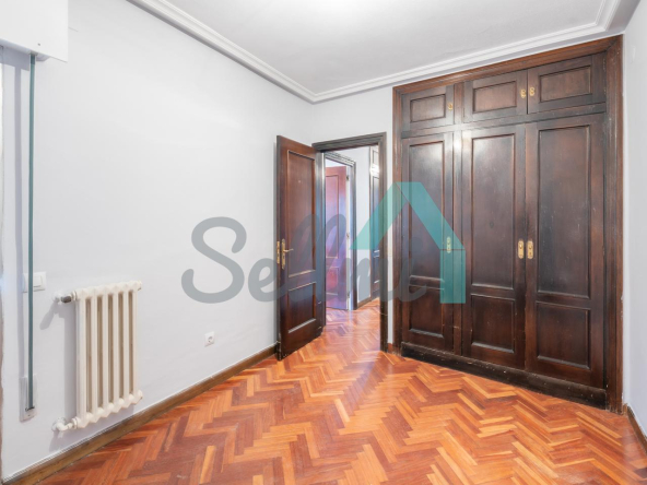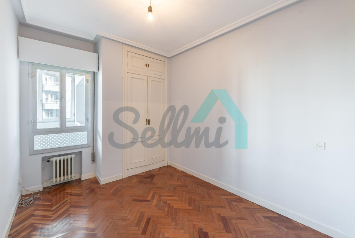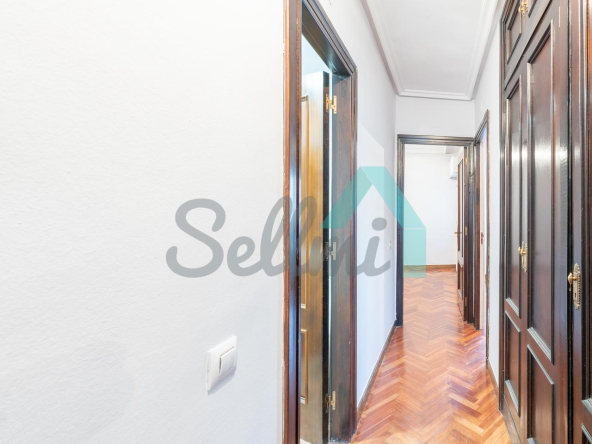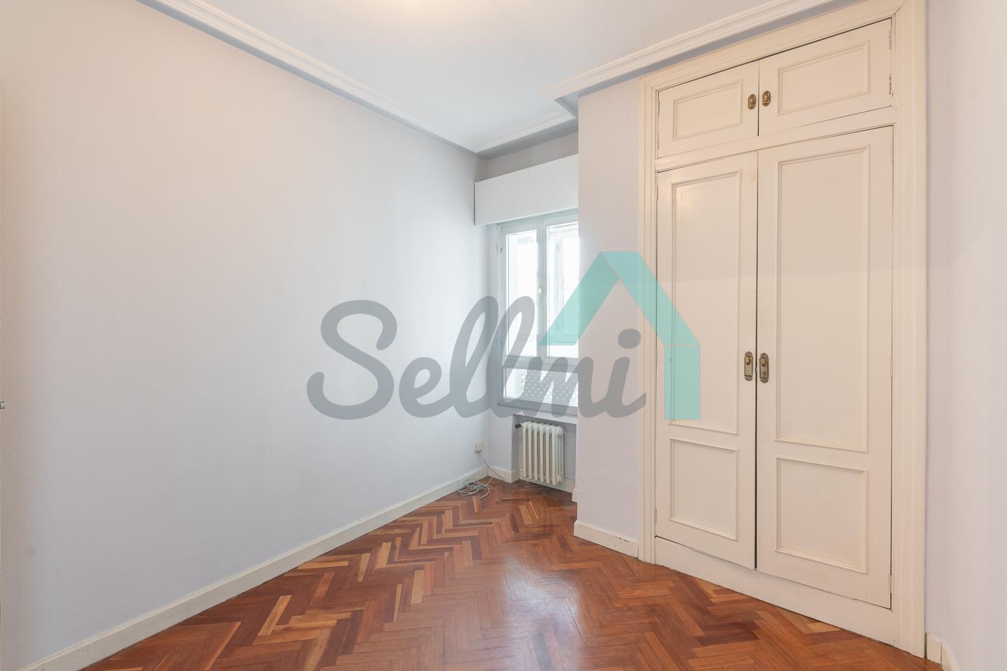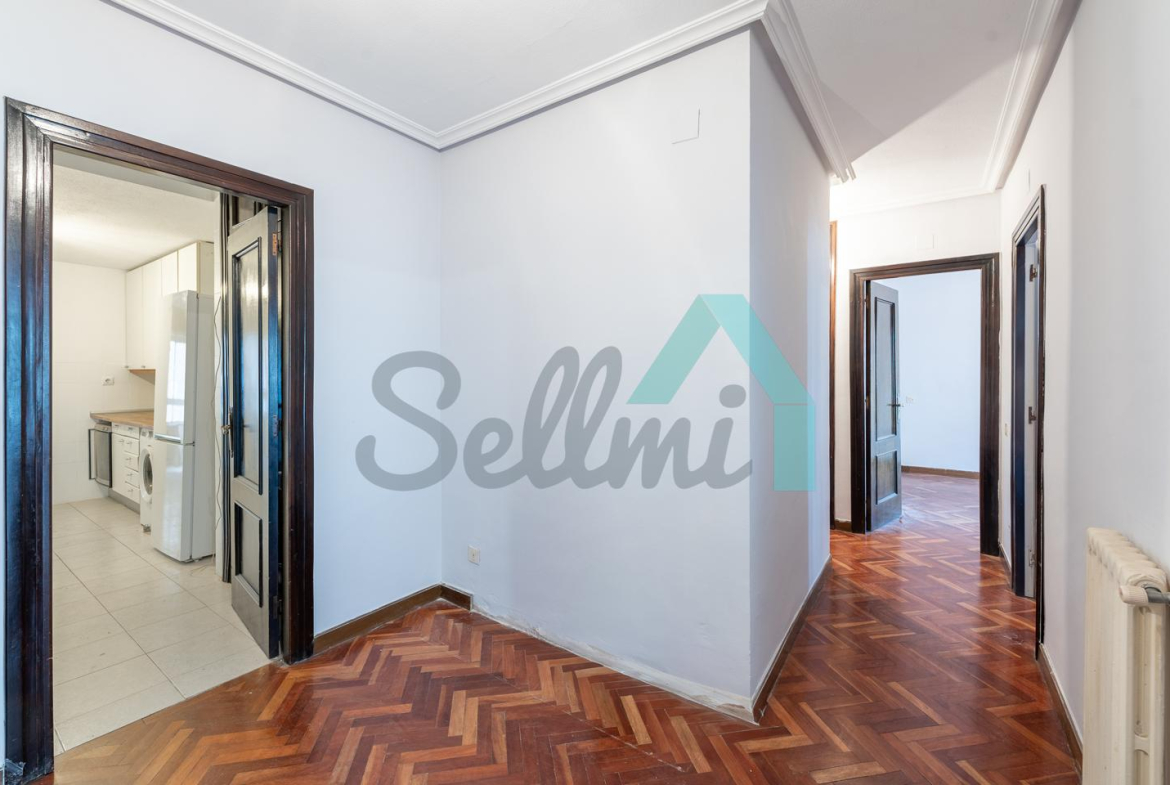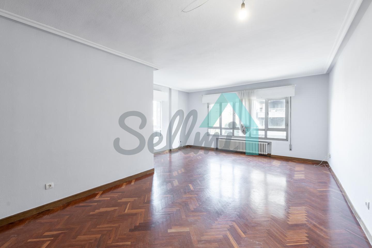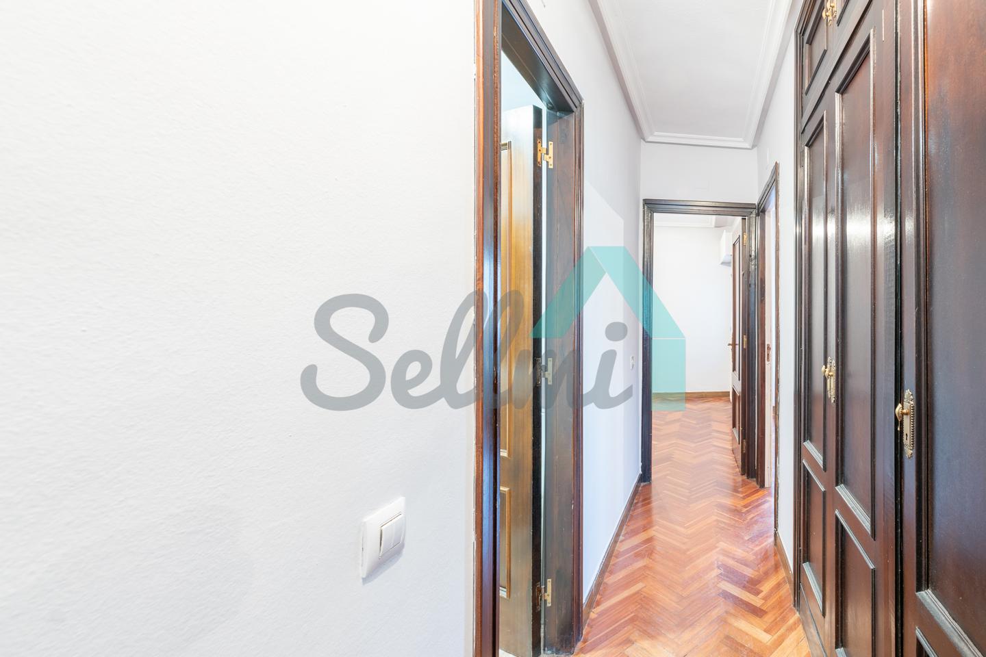 Dispone de calefacción central, suelos de parquet y gres, armarios empotrados en todas las habitaciones y un gran armario empotrado en el pasillo, ventanas de aluminio, dos puertas de acceso (principal y de servicio), videoportero, etc. Es exterior, con orientación norte y vistas a la Plaza de América.