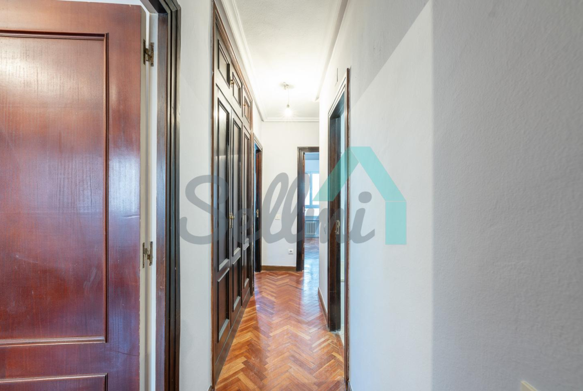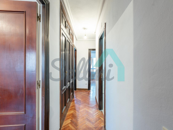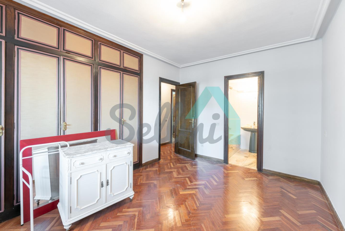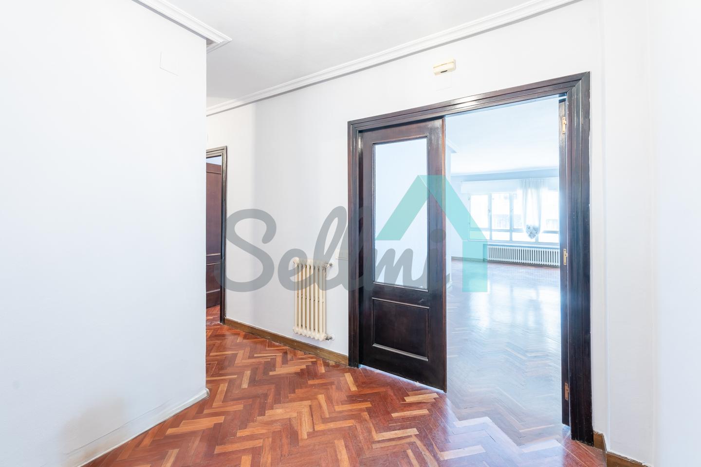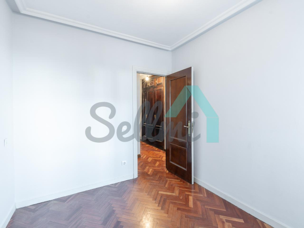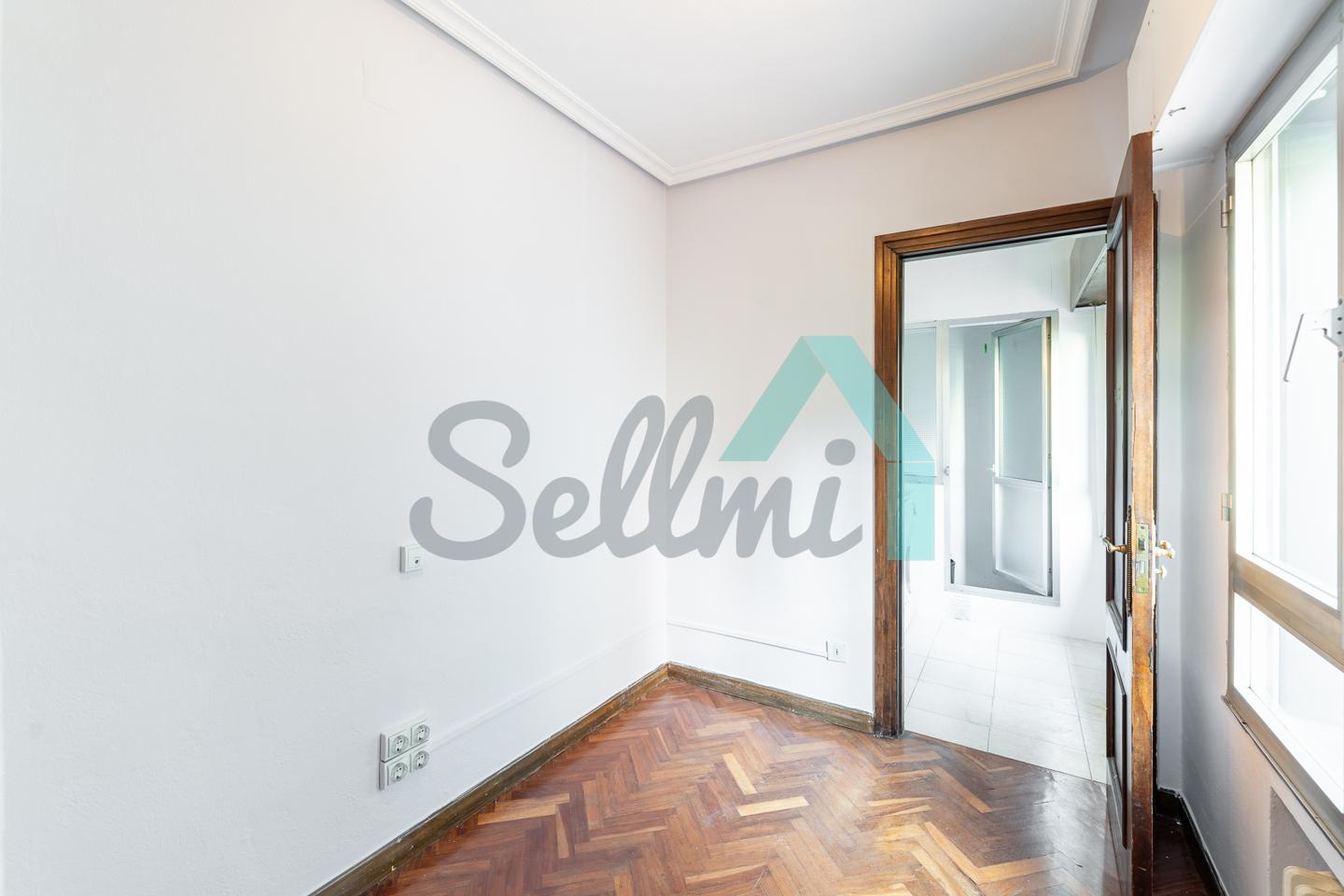 Dispone de calefacción central, suelos de parquet y gres, armarios empotrados en todas las habitaciones y un gran armario empotrado en el pasillo, ventanas de aluminio, dos puertas de acceso (principal y de servicio), videoportero, etc. Es exterior, con orientación norte y vistas a la Plaza de América.