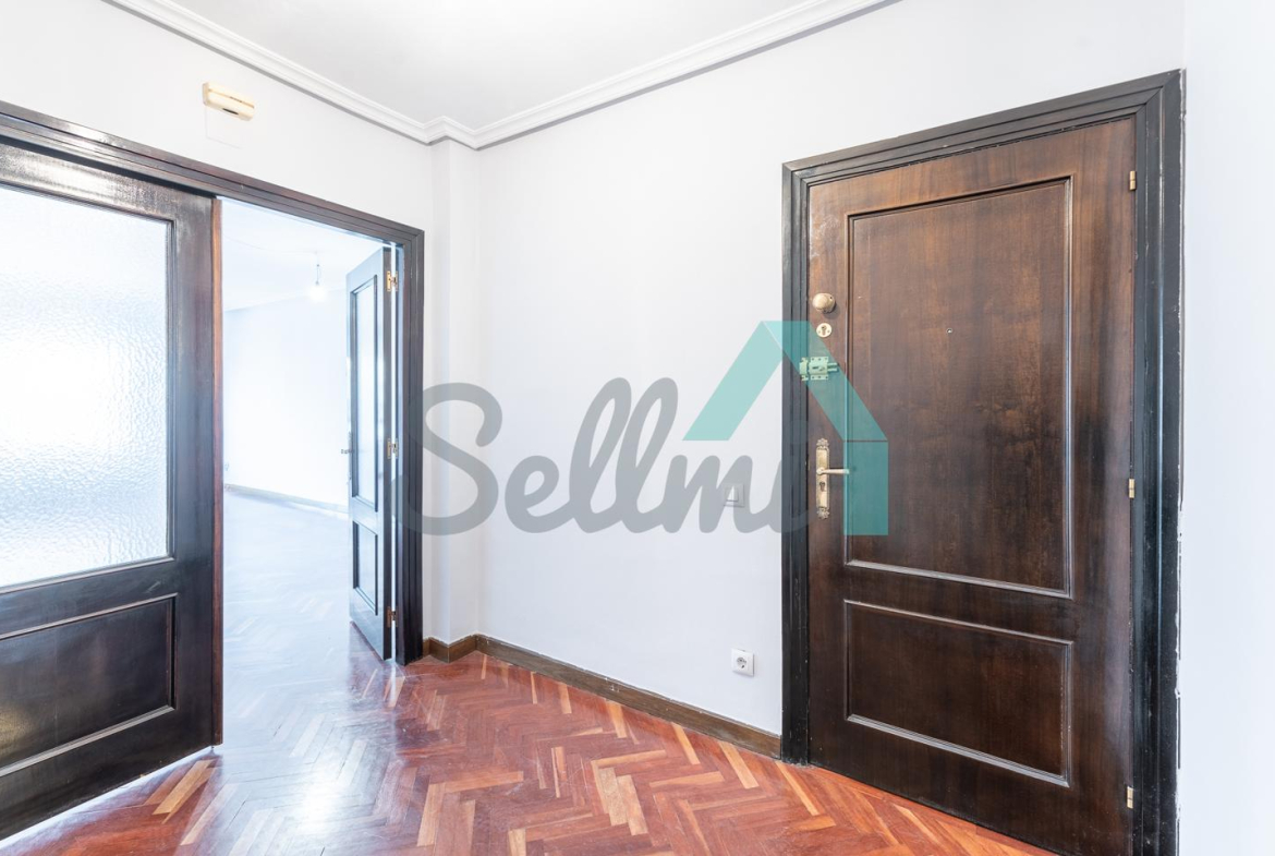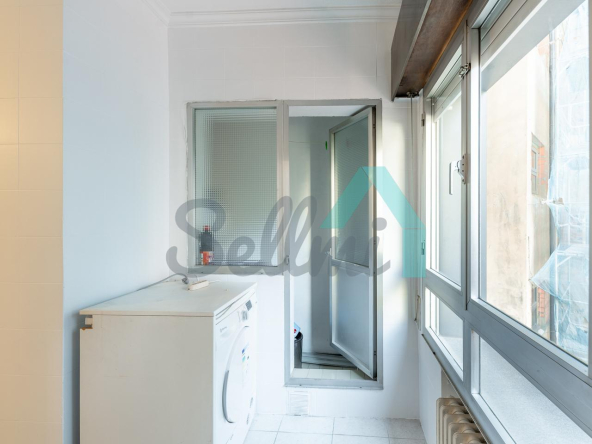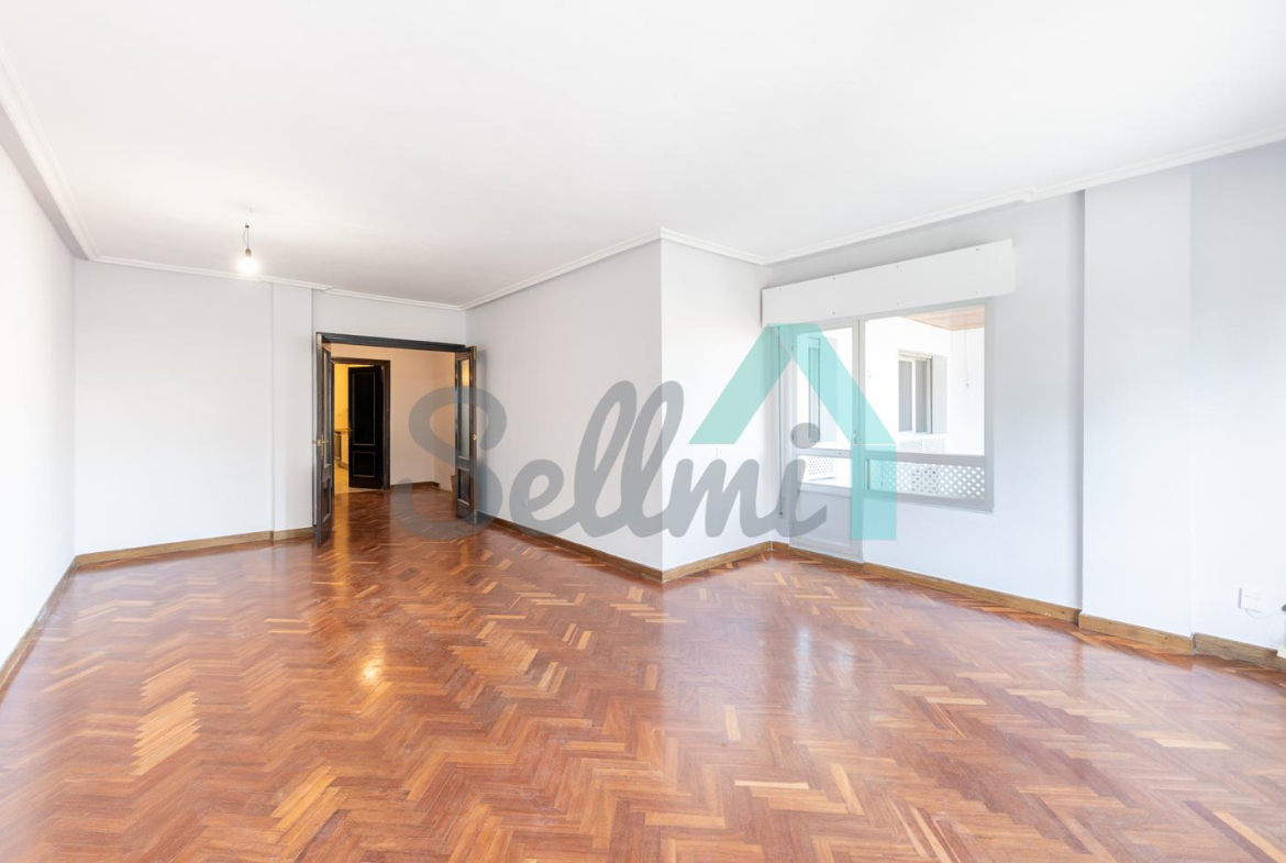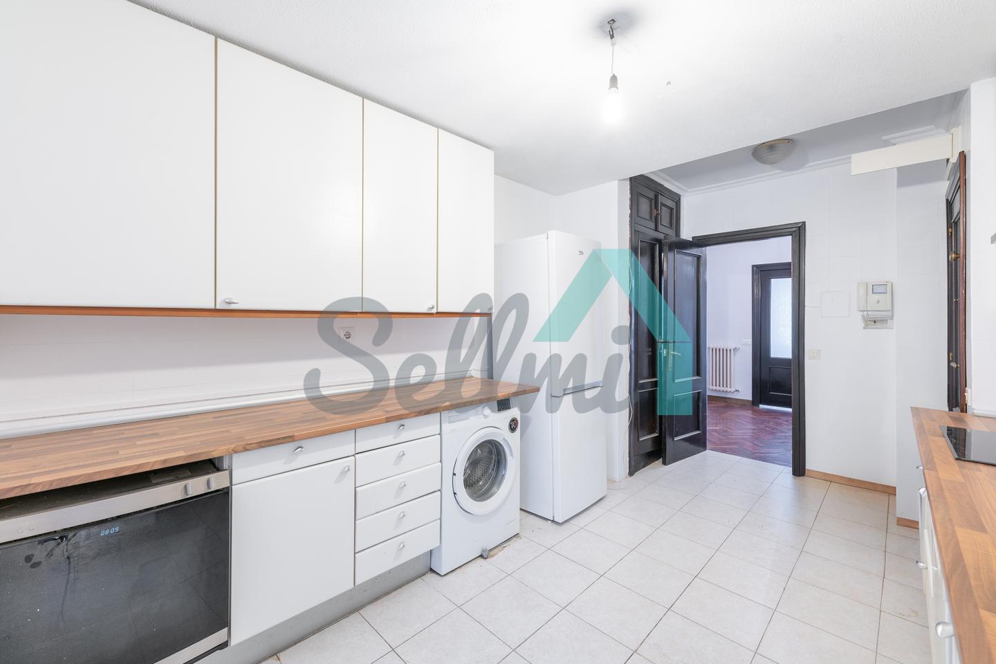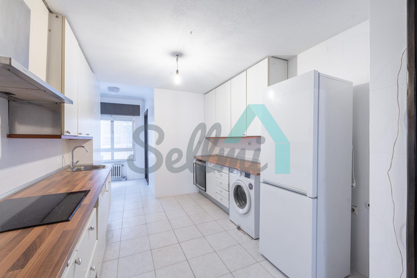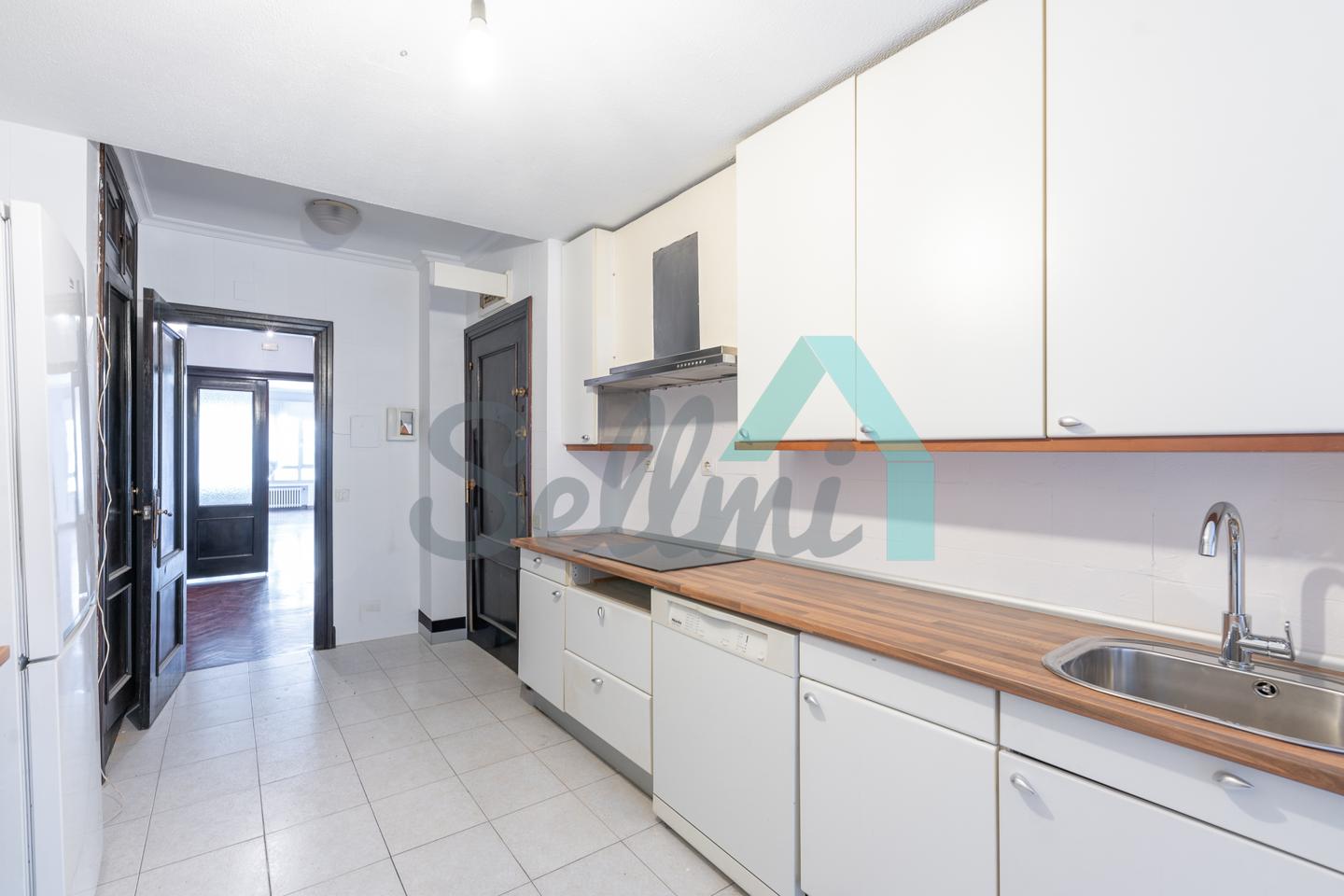 Dispone de calefacción central, suelos de parquet y gres, armarios empotrados en todas las habitaciones y un gran armario empotrado en el pasillo, ventanas de aluminio, dos puertas de acceso (principal y de servicio), videoportero, etc. Es exterior, con orientación norte y vistas a la Plaza de América.