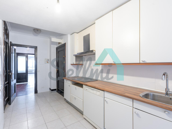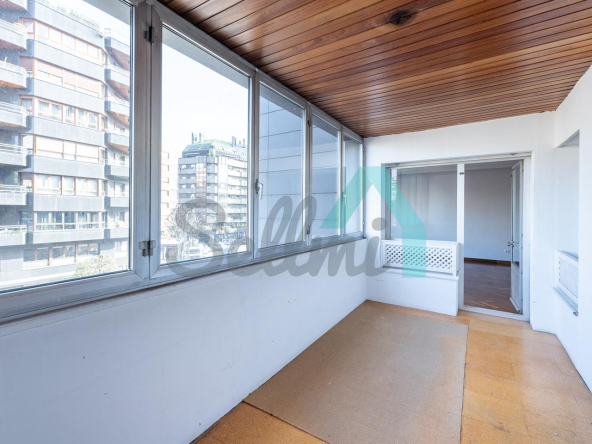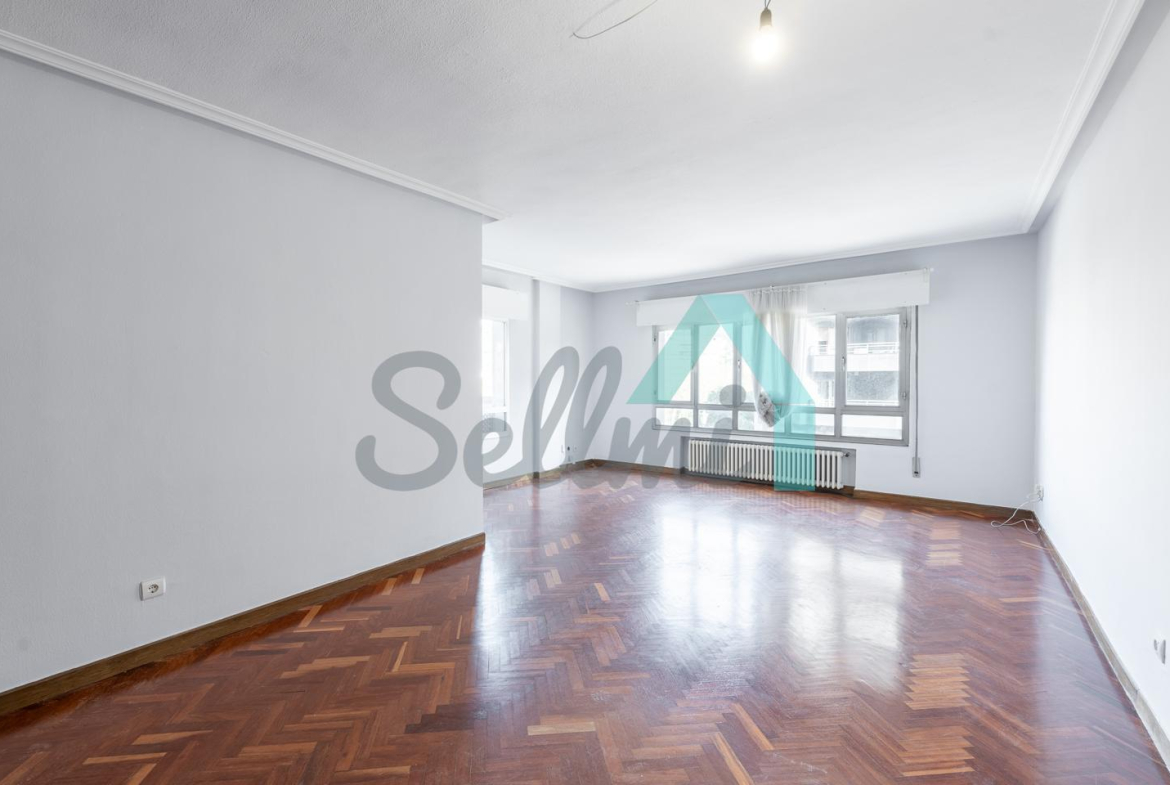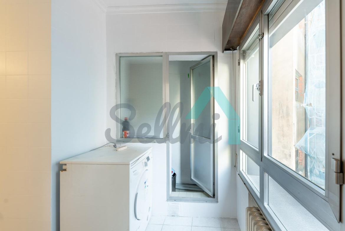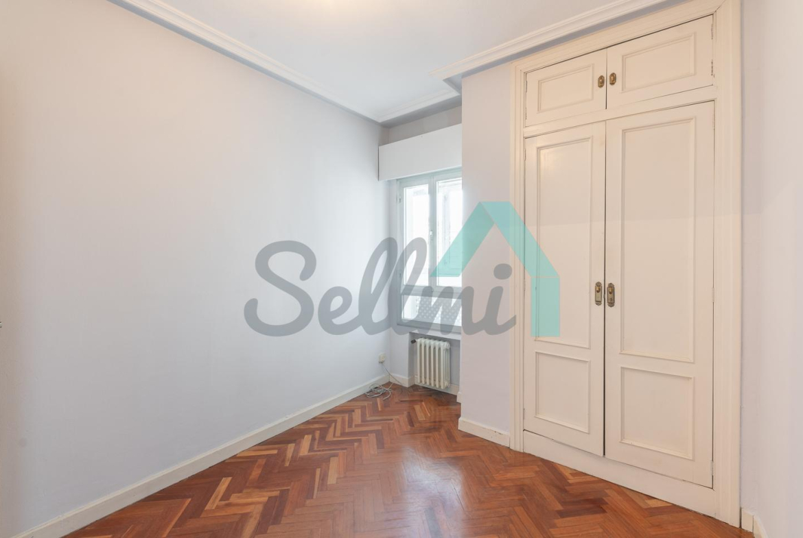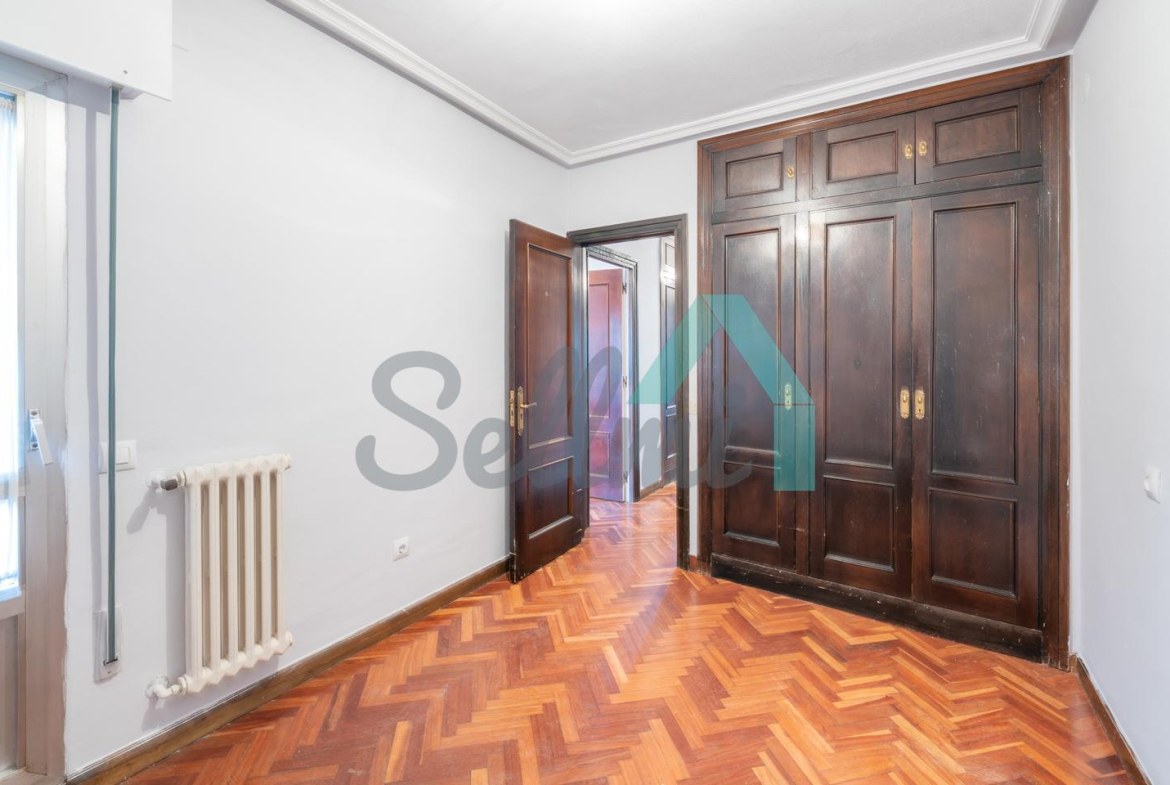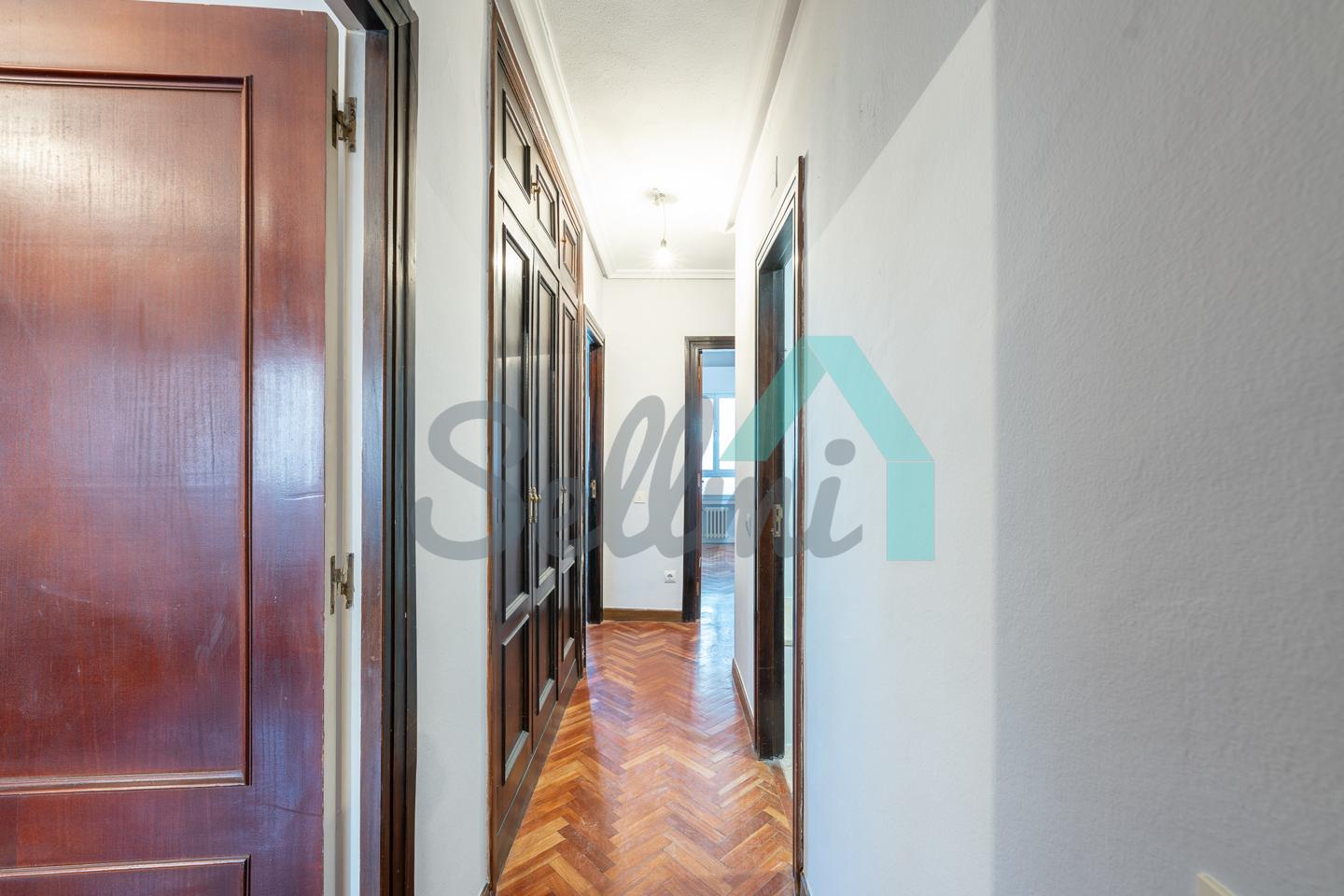 Dispone de calefacción central, suelos de parquet y gres, armarios empotrados en todas las habitaciones y un gran armario empotrado en el pasillo, ventanas de aluminio, dos puertas de acceso (principal y de servicio), videoportero, etc. Es exterior, con orientación norte y vistas a la Plaza de América.