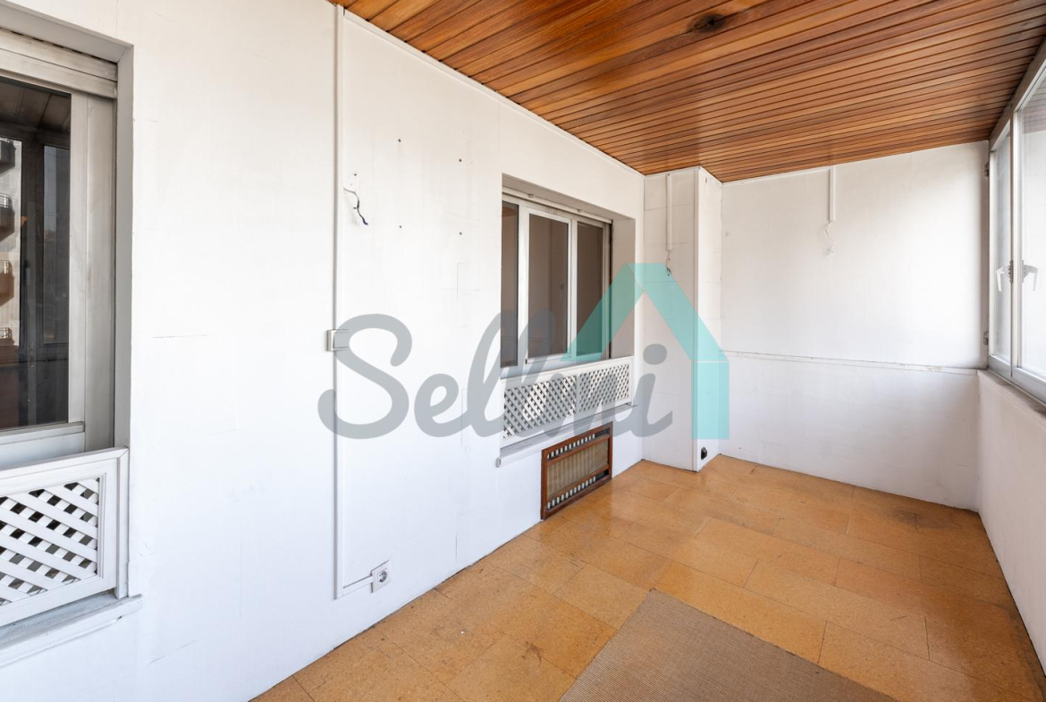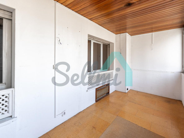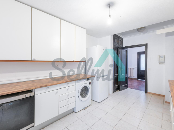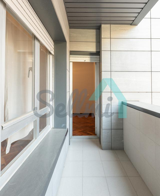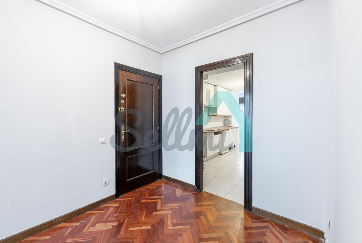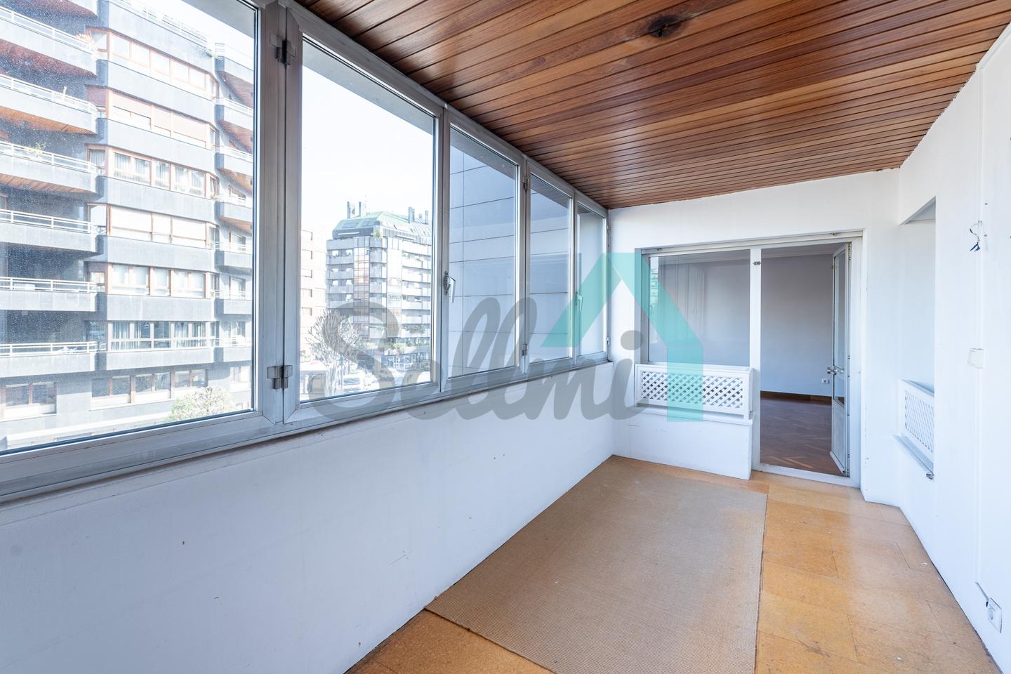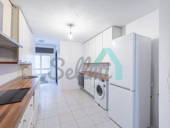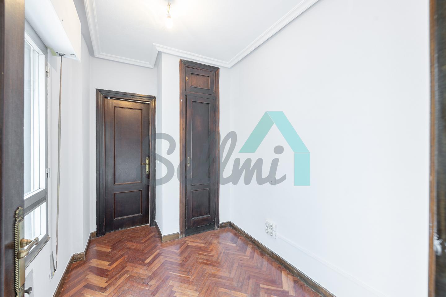 Dispone de calefacción central, suelos de parquet y gres, armarios empotrados en todas las habitaciones y un gran armario empotrado en el pasillo, ventanas de aluminio, dos puertas de acceso (principal y de servicio), videoportero, etc. Es exterior, con orientación norte y vistas a la Plaza de América.