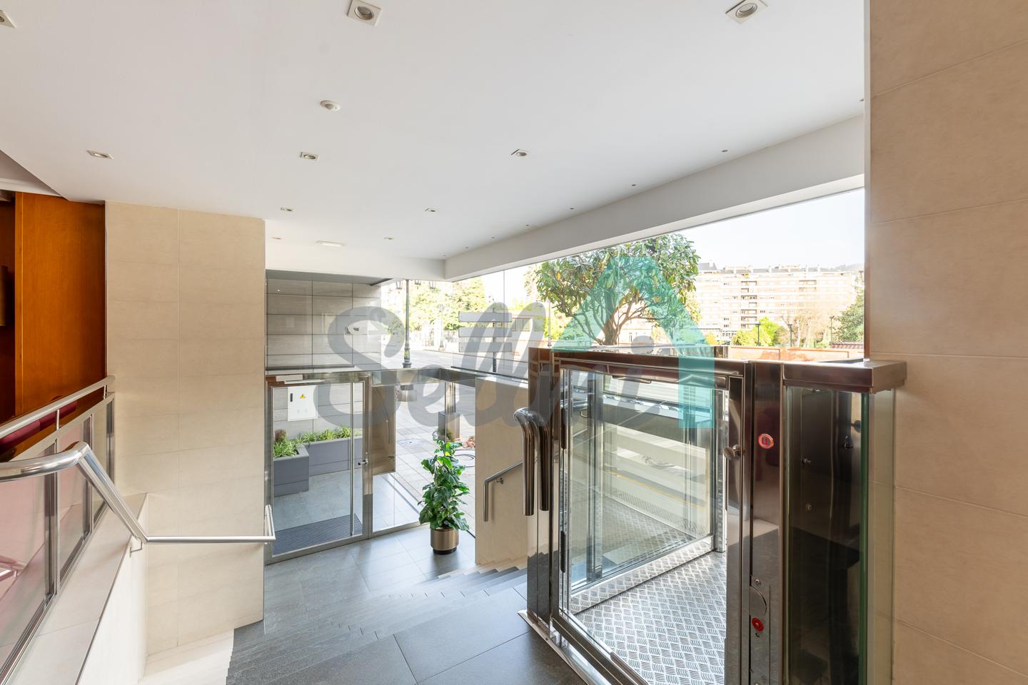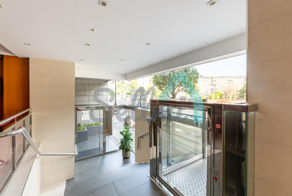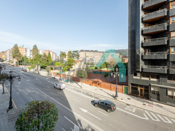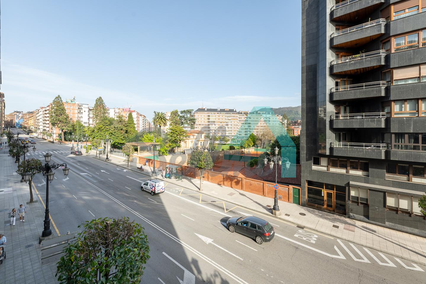 Piso en alquiler situado en la Avenida de Galicia, en pleno centro de Oviedo. Está ubicado en la segunda planta de un edificio construido en 1980, sin barreras arquitectónicas (plataforma elevadora) y que cuenta con servicios centrales, portero físico, cámaras de seguridad y dos ascensores.