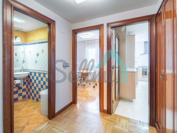 Dispone de suelos de parquet y gres, calefacción central con contador individual, armarios empotrados, ventanas de doble acristalamiento, puerta de seguridad (dos puertas de acceso), videoportero, etc.