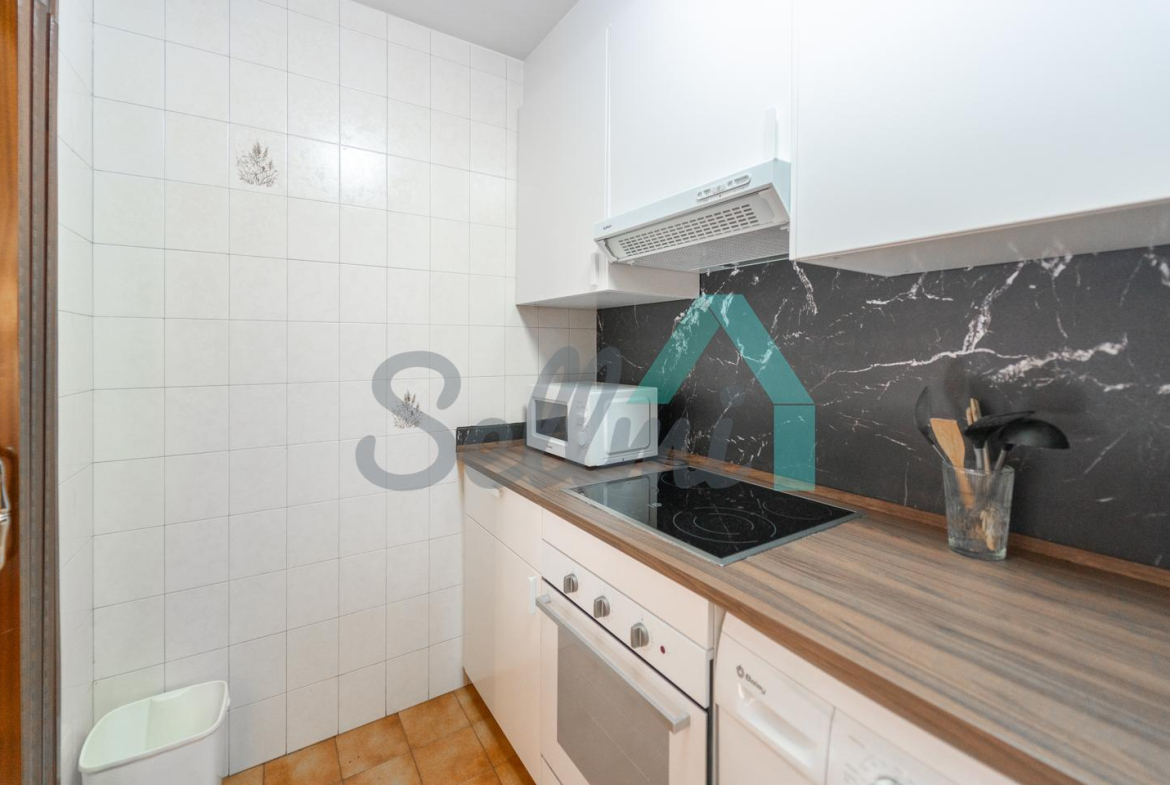 La vivienda, que se encuentra en perfecto estado, tiene una superficie construida de 48 m² distribuidos en hall de entrada, salón comedor, terraza acristalada, cocina amueblada y equipada, una habitación y un baño completo.