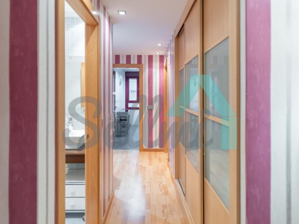 Dispone de armarios empotrados, suelos de tarima y gres, ventanas de doble acristalamiento, calefacción central con contador individual, puerta de seguridad, videoportero, etc. La comunidad incluye mínimos de calefacción y agua.