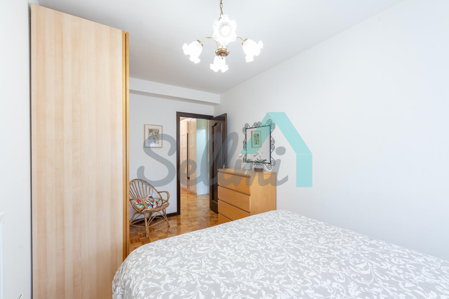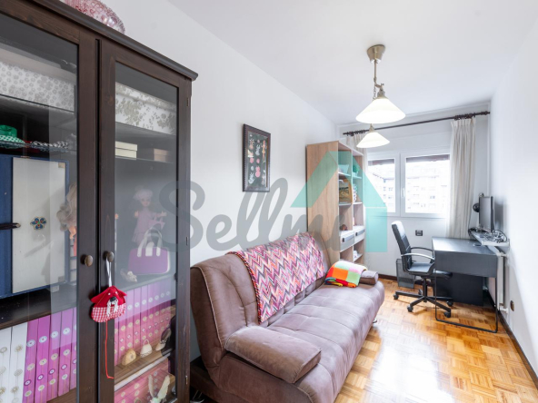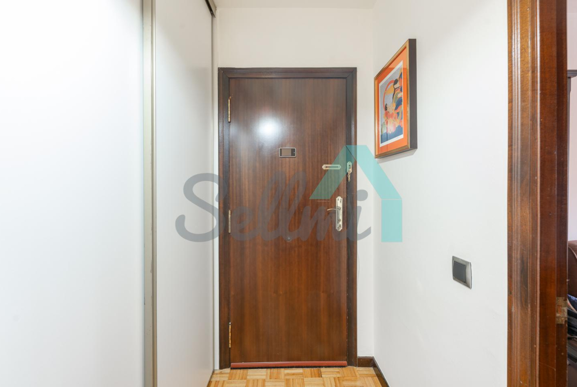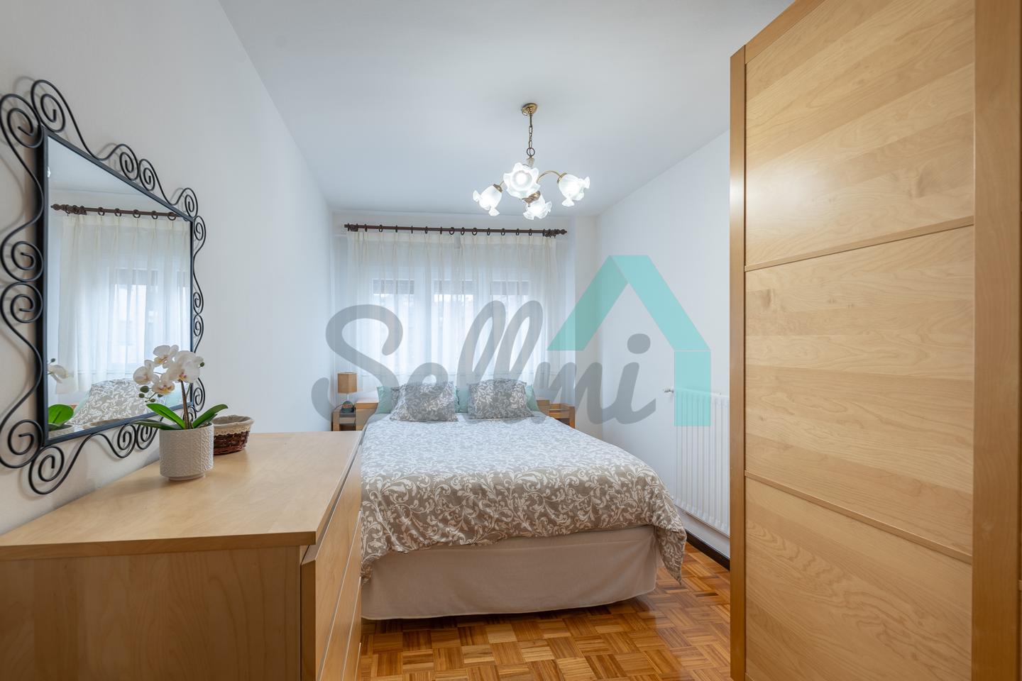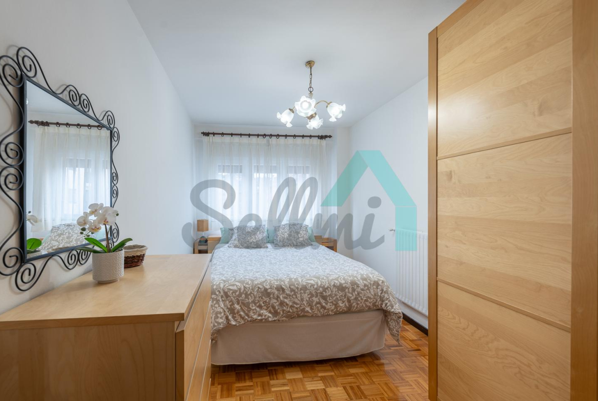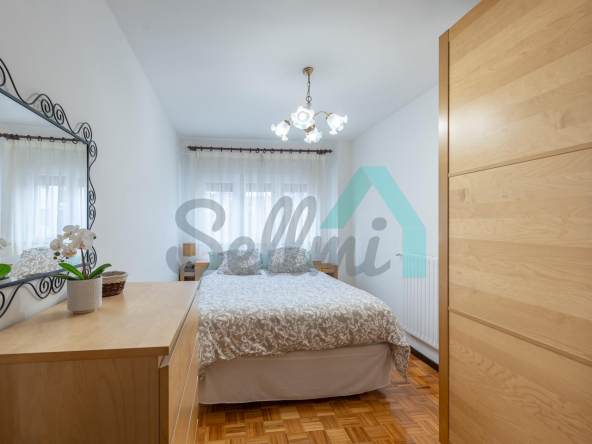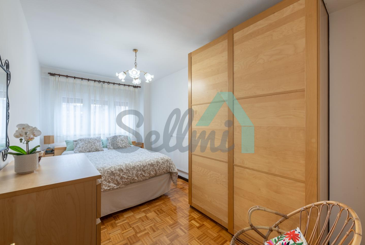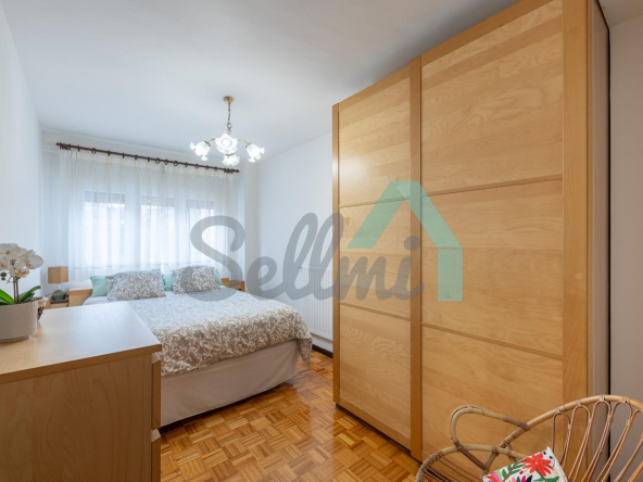 Dispone de ventanas de doble acristalamiento, suelos de parqué y gres, calefacción central con contador individual, puerta de seguridad, etc. Es exterior y muy luminoso, con orientación este.