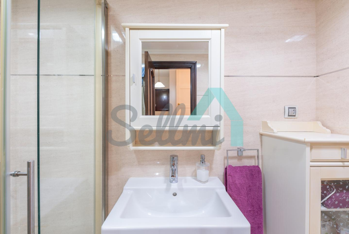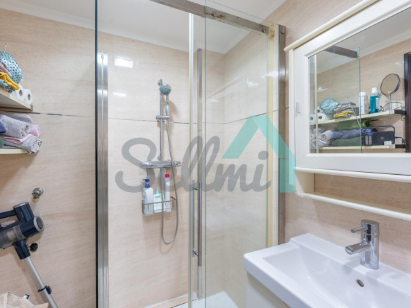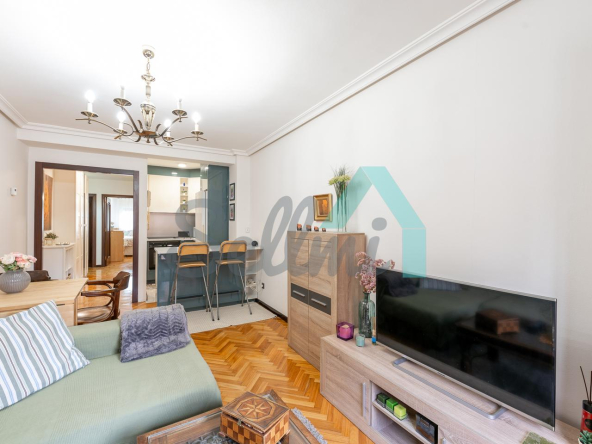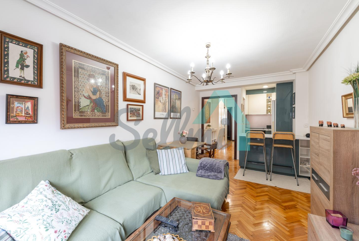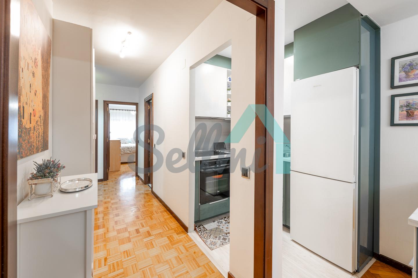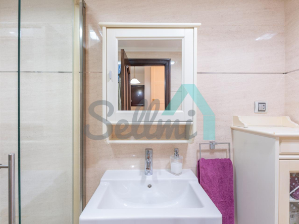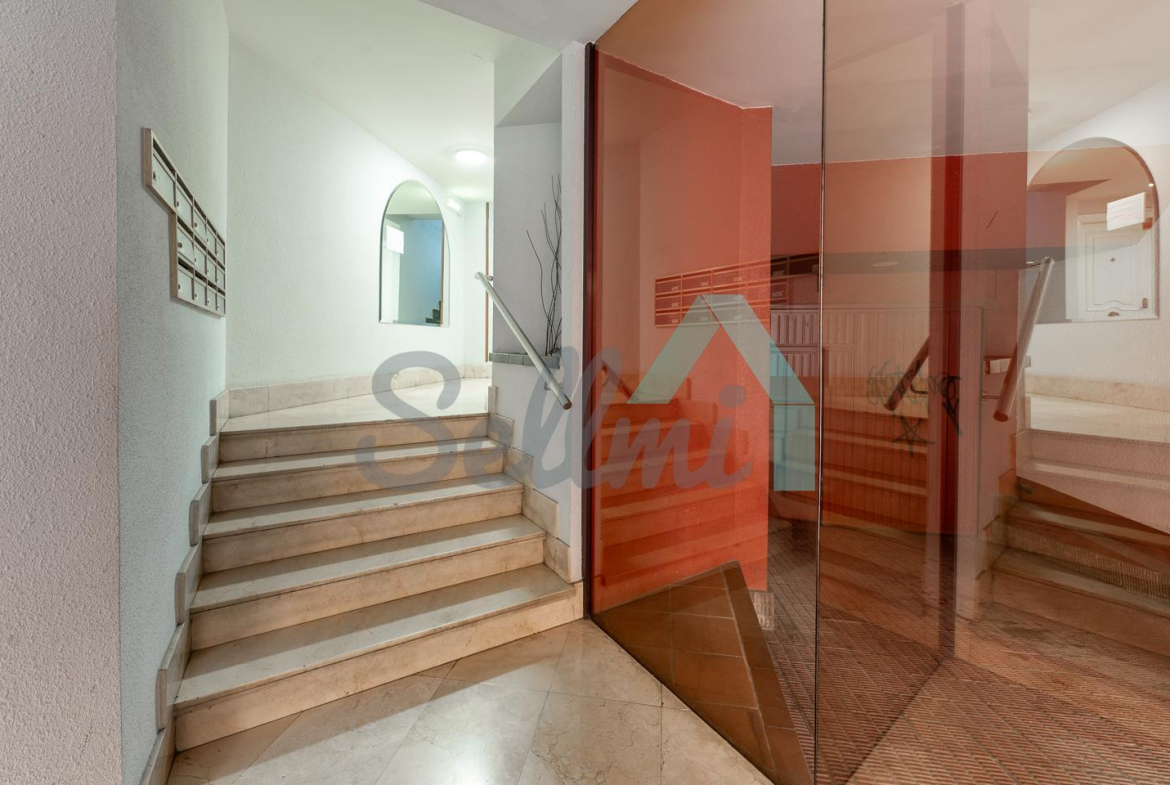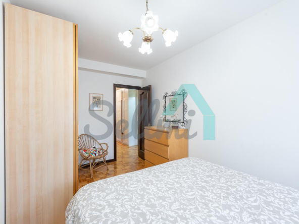 Dispone de ventanas de doble acristalamiento, suelos de parqué y gres, calefacción central con contador individual, puerta de seguridad, etc. Es exterior y muy luminoso, con orientación este.