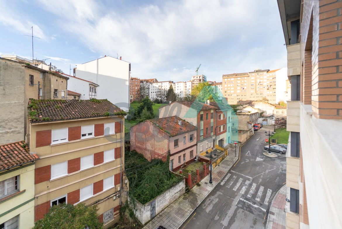 Piso en alquiler situado en la zona de Santo Domingo, Oviedo, muy cerca del casco antiguo de la ciudad. Está ubicado en la cuarta planta de un edificio construido en 2005, sin barreras arquitectónicas y que cuenta con servicios centrales y ascensor.