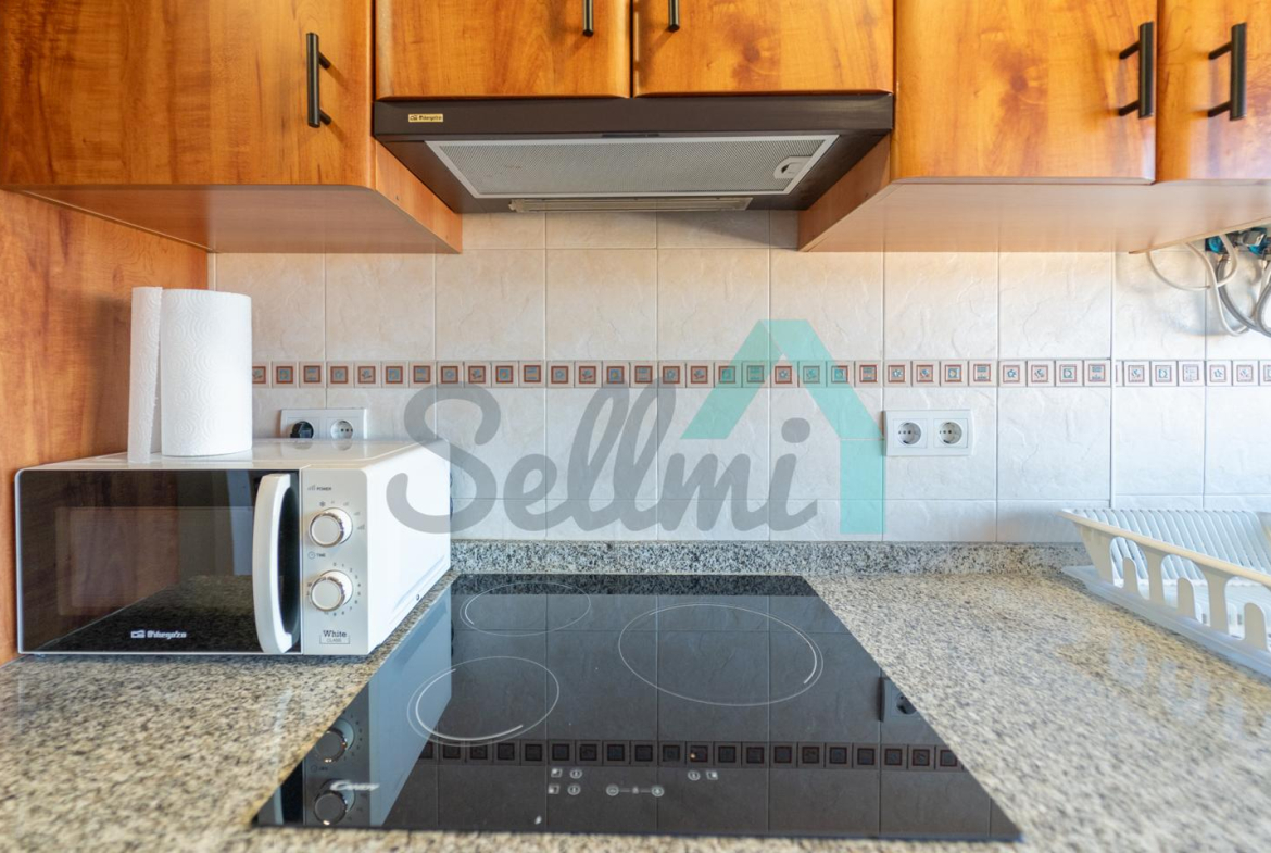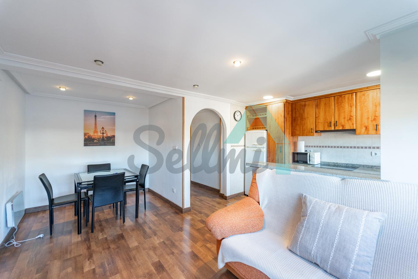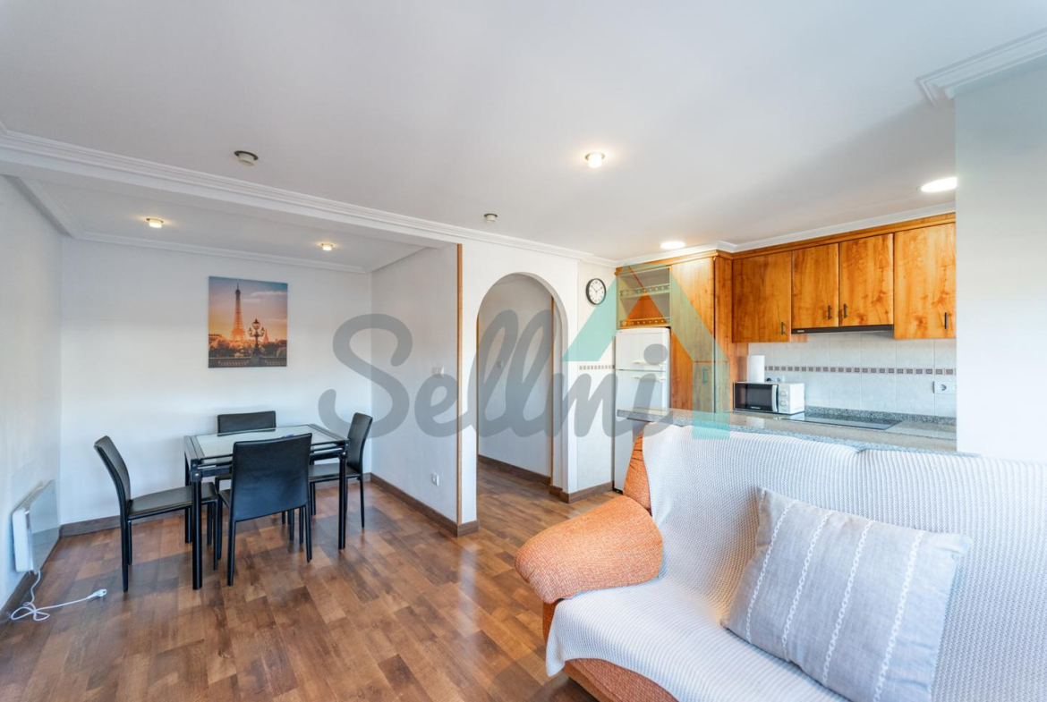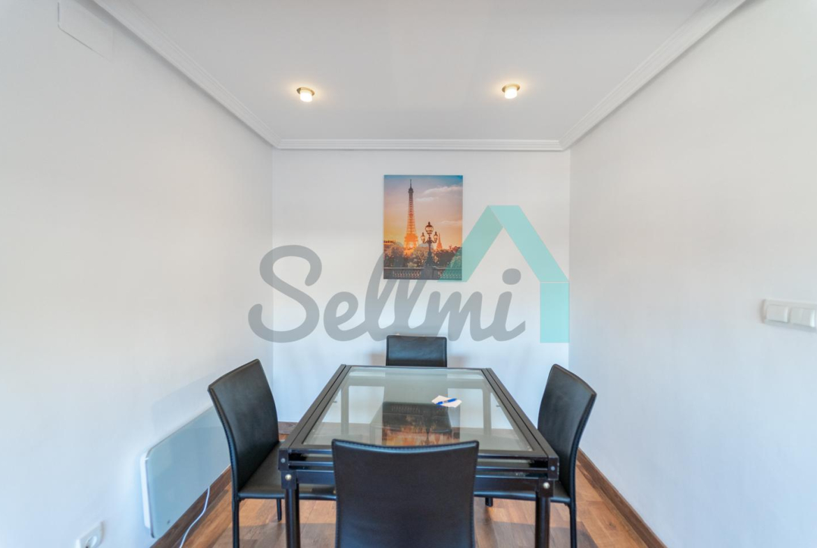 La vivienda, que se encuentra en muy buen estado, tiene una superficie construida de 65 m² distribuidos en hall de entrada, salón comedor con cocina amueblada y equipada, dos habitaciones, un despacho (habitación pequeña) y un baño completo. Plaza de garaje incluida en el precio.