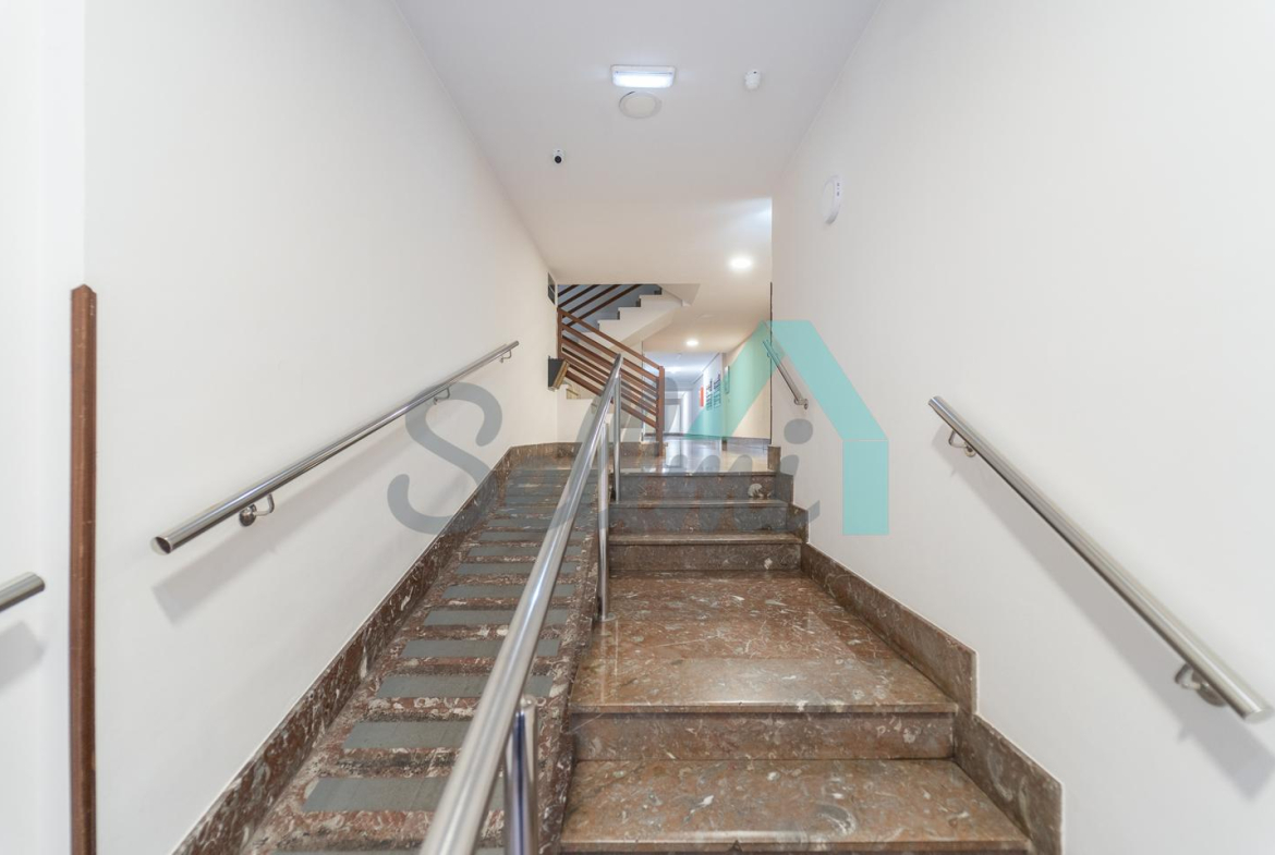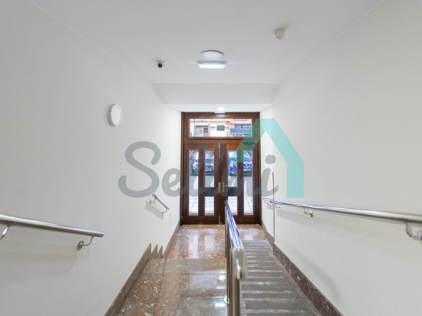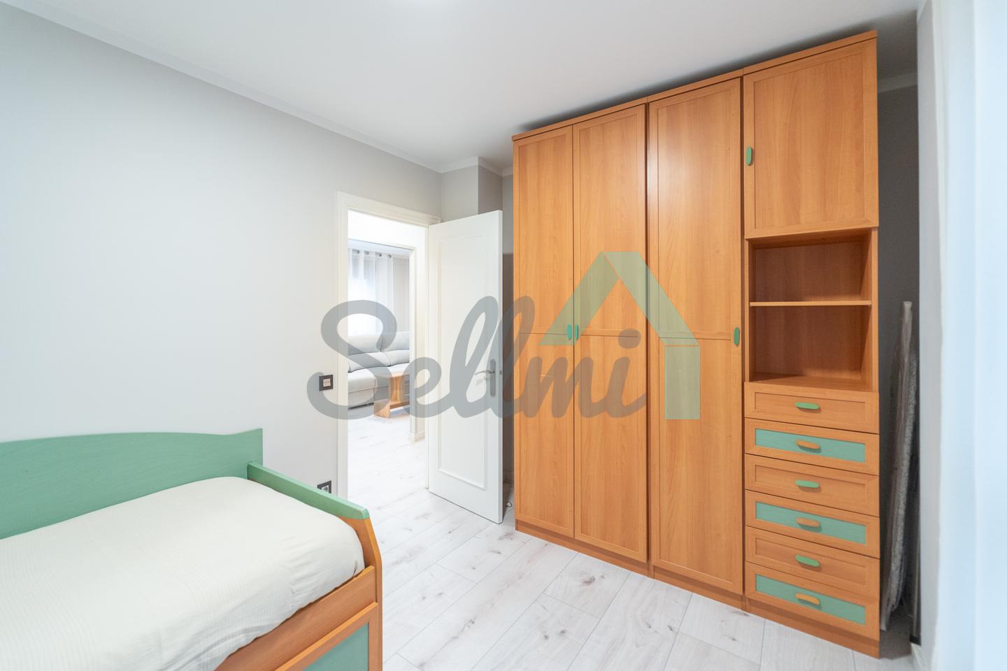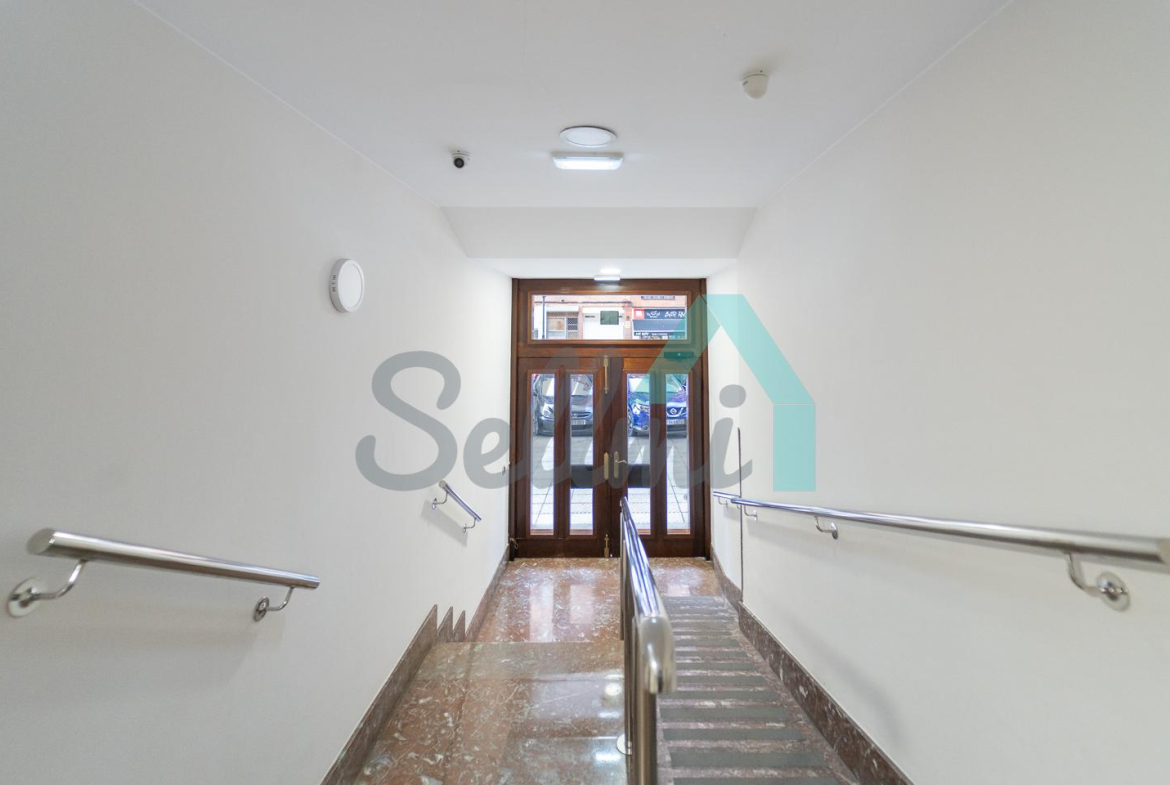 Dispone de calefacción individual, armarios empotrados, suelos de tarima y gres, ventanas de doble acristalamiento, puerta de seguridad, videoportero, etc.