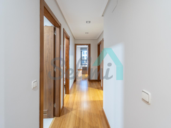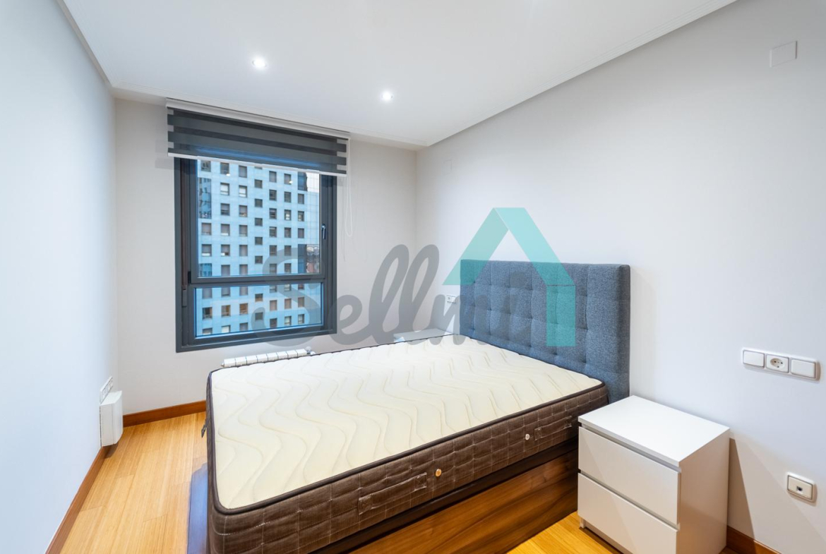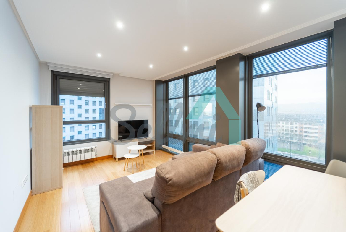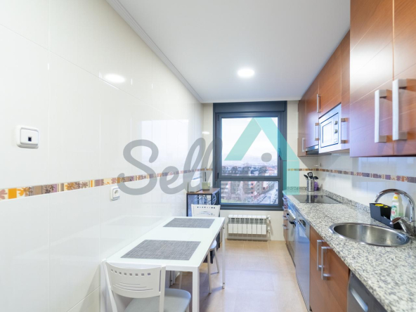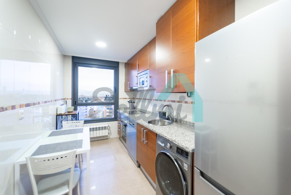 Se encuentra totalmente amueblada y dispone de suelos de tarima de bambú y gres, calefacción individual de gas ciudad, armarios empotrados, ventanas de doble acristalamiento, puerta de seguridad, videoportero, etc. Es exterior, con orientación este/oeste y unas bonitas vistas gracias a su altura.