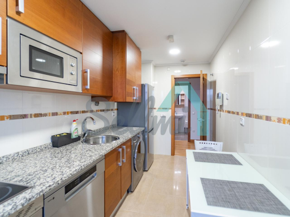 Tiene una superficie construida de 69 m² distribuidos en hall de entrada, salón comedor, cocina amueblada y equipada, dos habitaciones y dos baños completos. Plaza de garaje incluida en el precio.