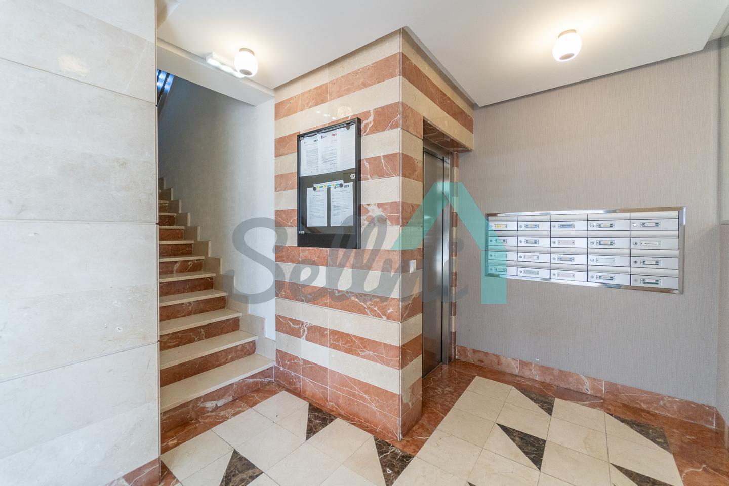 Dispone de suelos de tarima y gres, calefacción individual de gas ciudad, armarios empotrados, ventanas doble acristalamiento, puerta de seguridad, etc. Es exterior y muy luminoso, con orientación sur.
