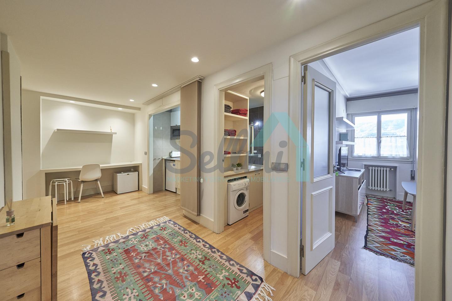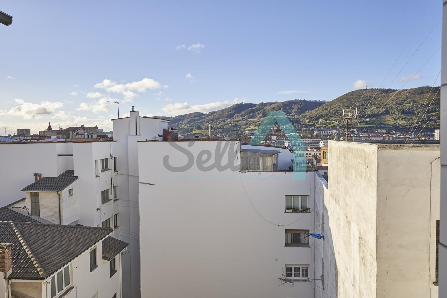 Piso en alquiler situado en la Calle Asturias esquina con Toreno, en pleno centro de Oviedo y junto al Campo de San Francisco. Está ubicado en un edificio construido en 1976, sin barreras arquitectónicas (plataforma elevadora) y con servicios centrales, portero físico y dos ascensores.