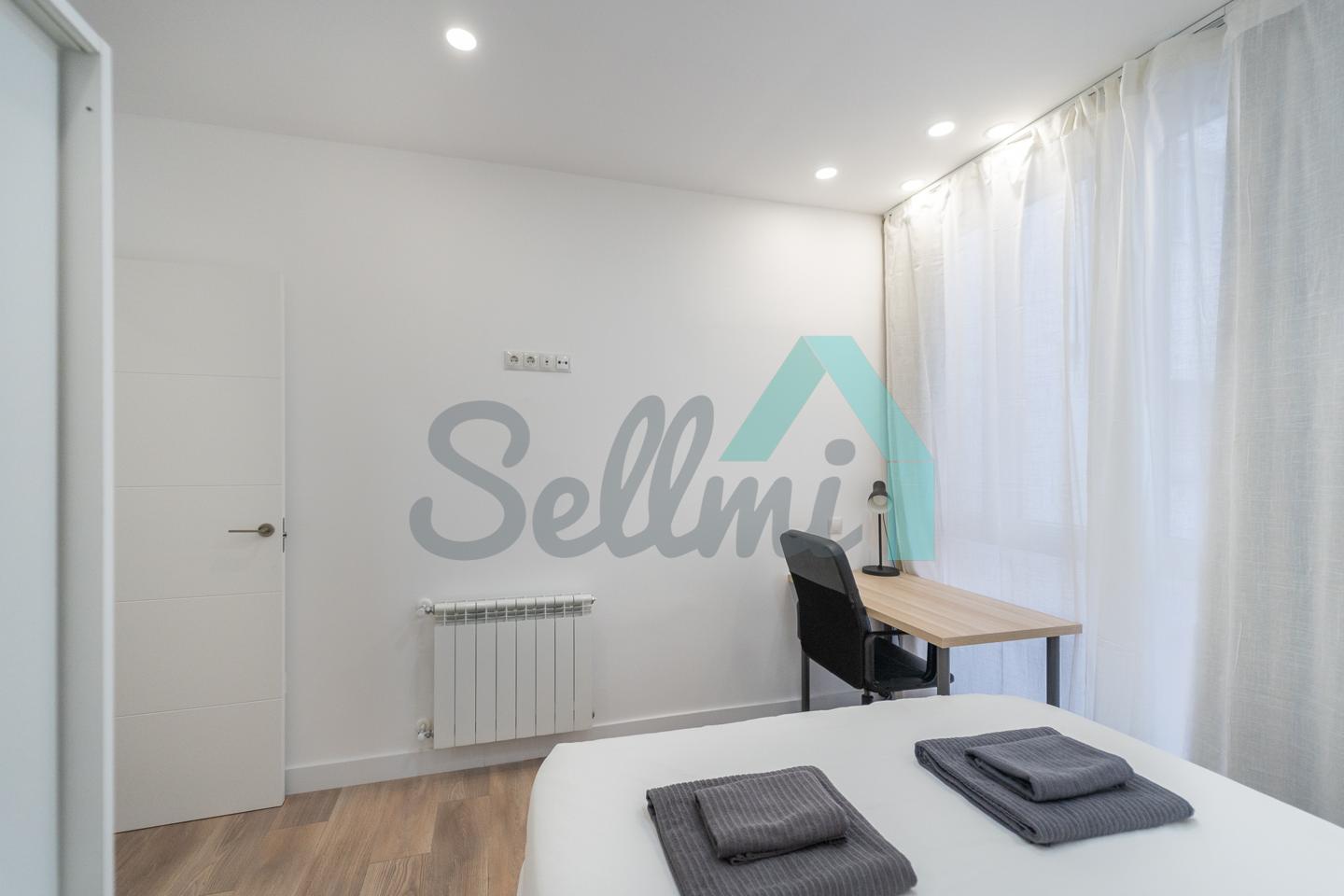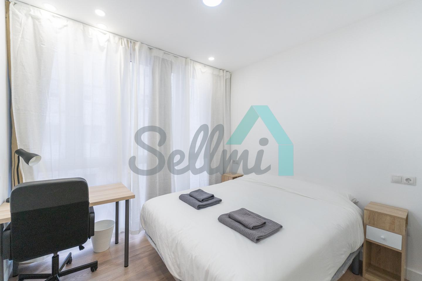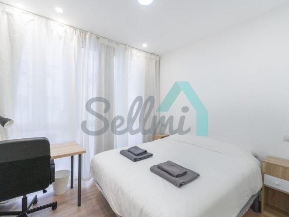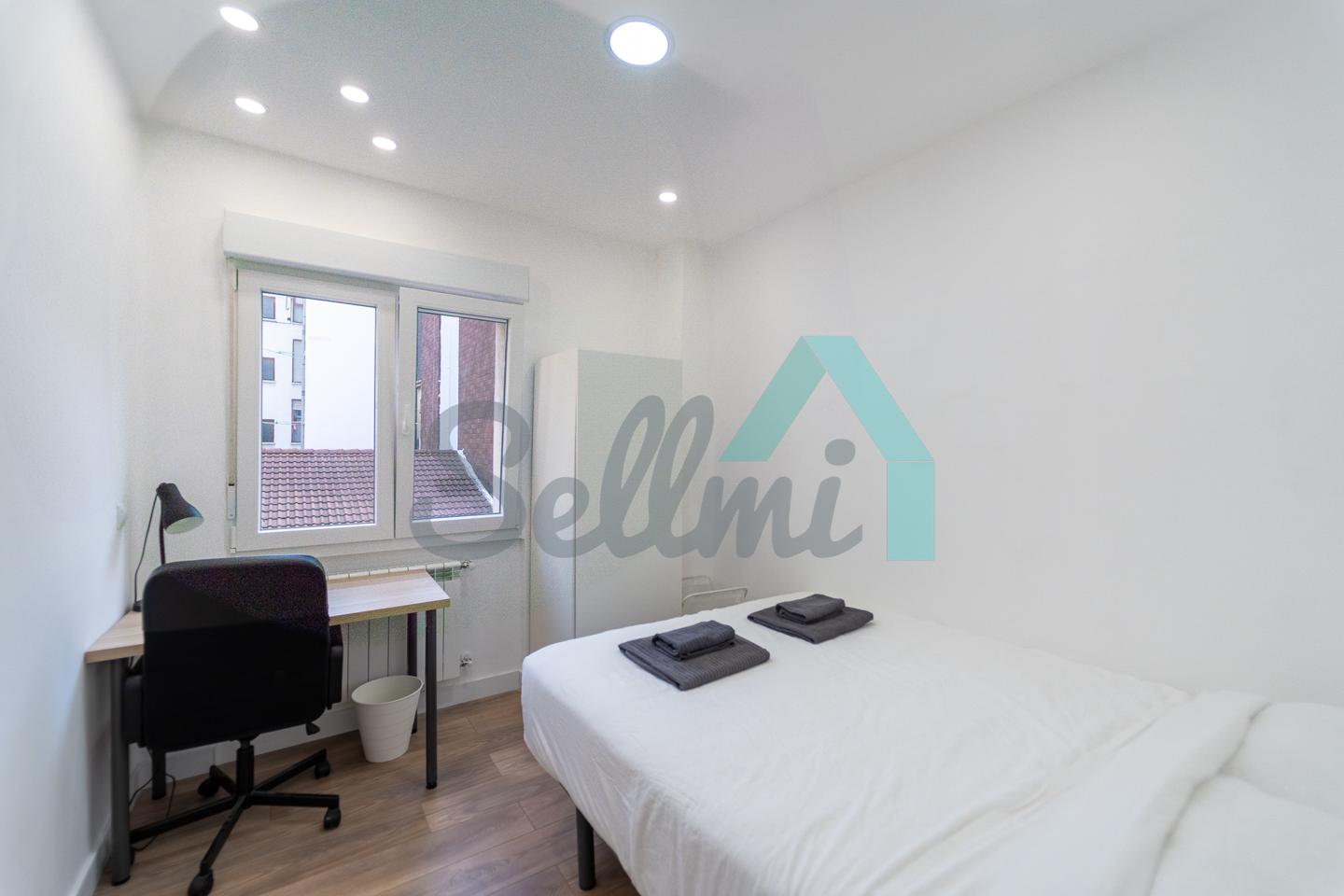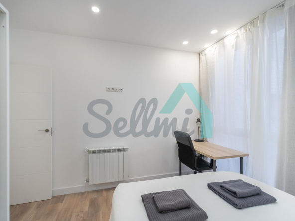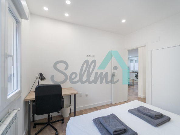 Se alquilada totalmente amueblada y equipada y dispone de suelos de tarima y gres, ventanas de doble acristalamiento, calefacción individual de gas ciudad, puerta de seguridad, videoportero, mesas de estudio, etc. Es exterior, con orientación noreste (calle) y suroeste (patio).