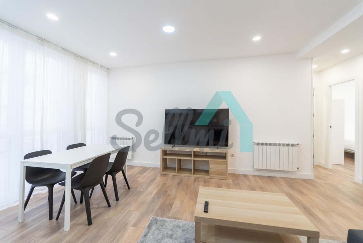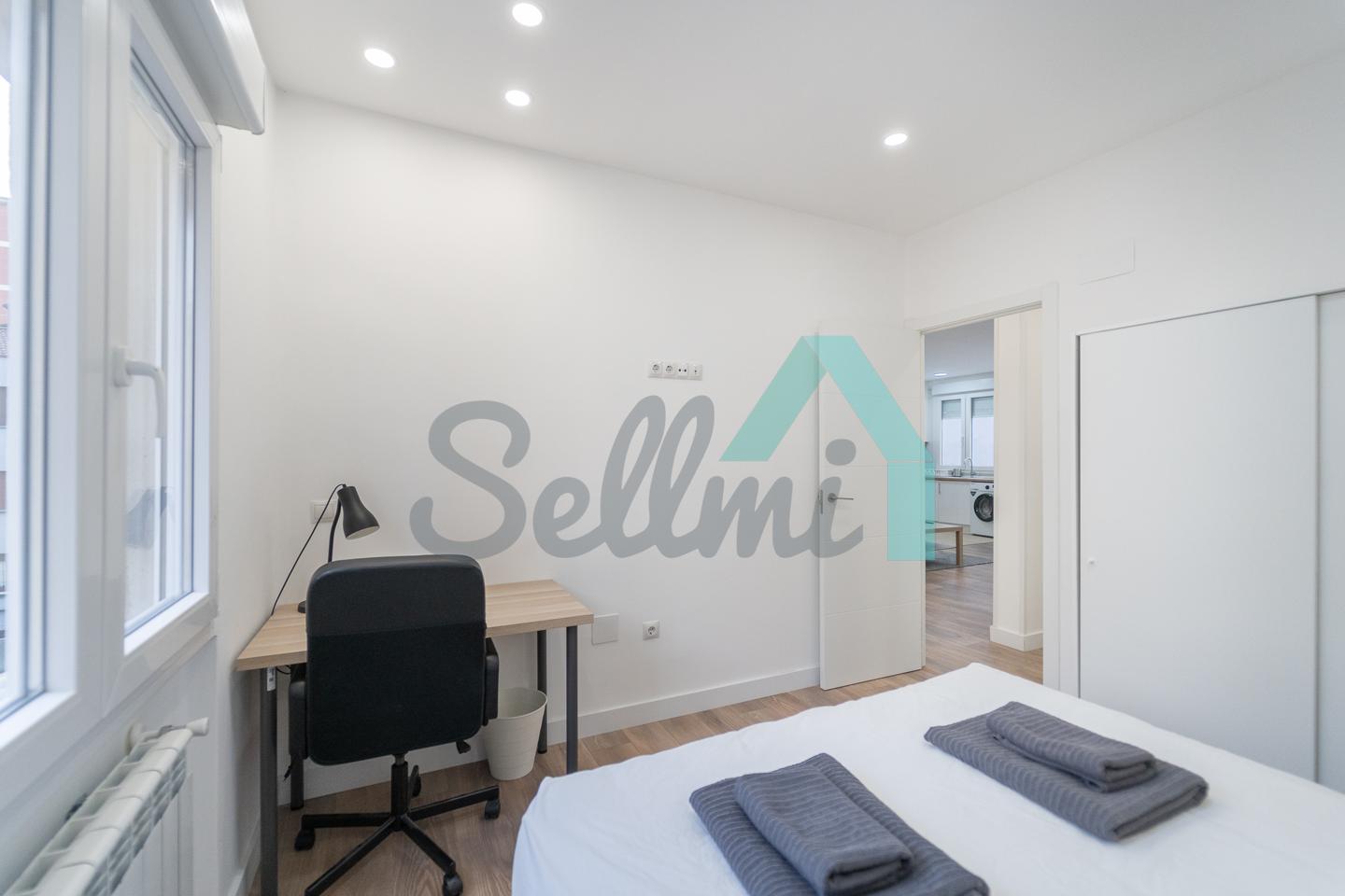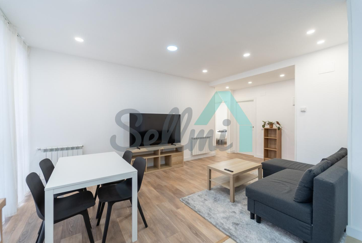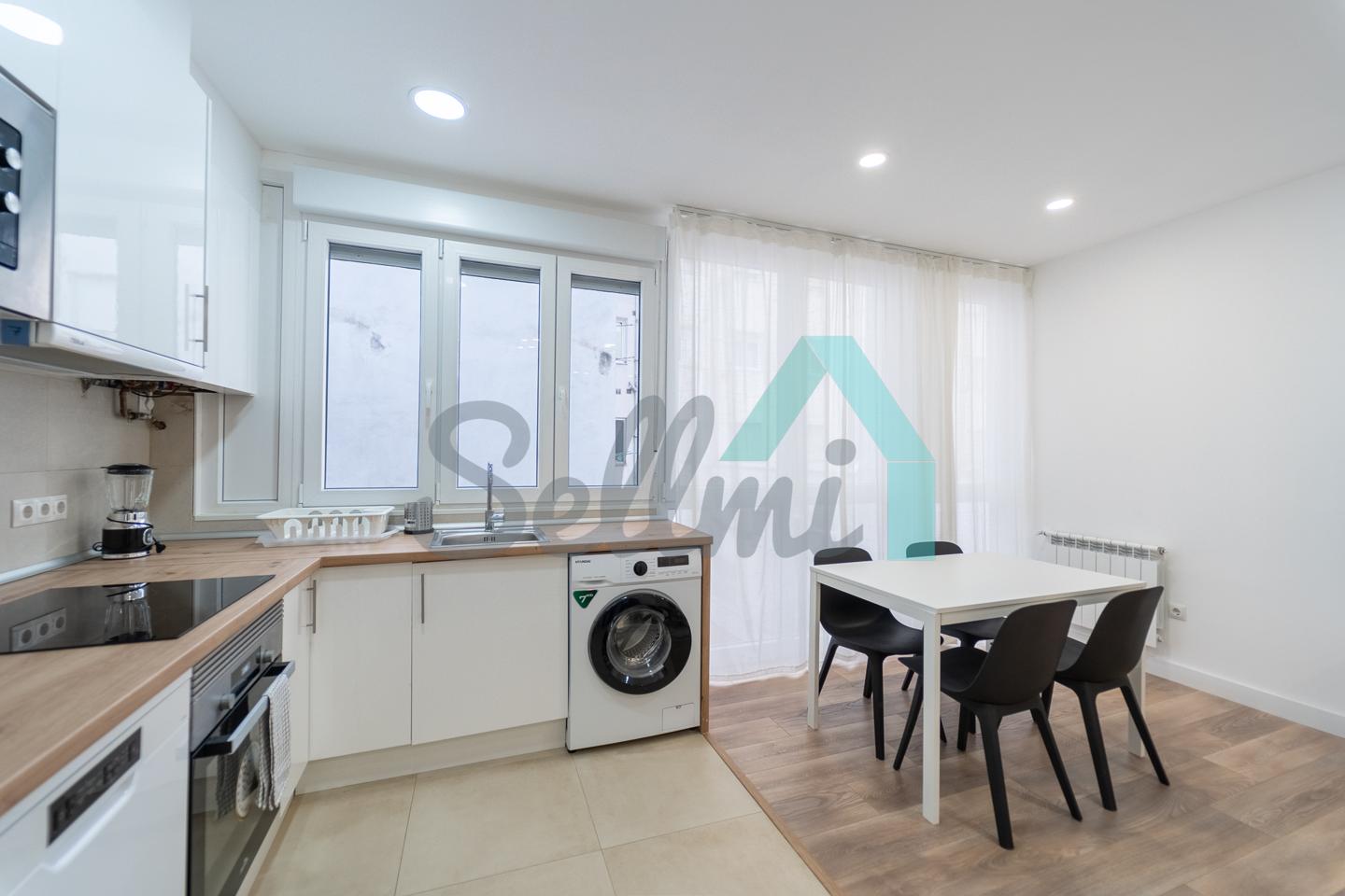 Se alquilada totalmente amueblada y equipada y dispone de suelos de tarima y gres, ventanas de doble acristalamiento, calefacción individual de gas ciudad, puerta de seguridad, videoportero, mesas de estudio, etc. Es exterior, con orientación noreste (calle) y suroeste (patio).