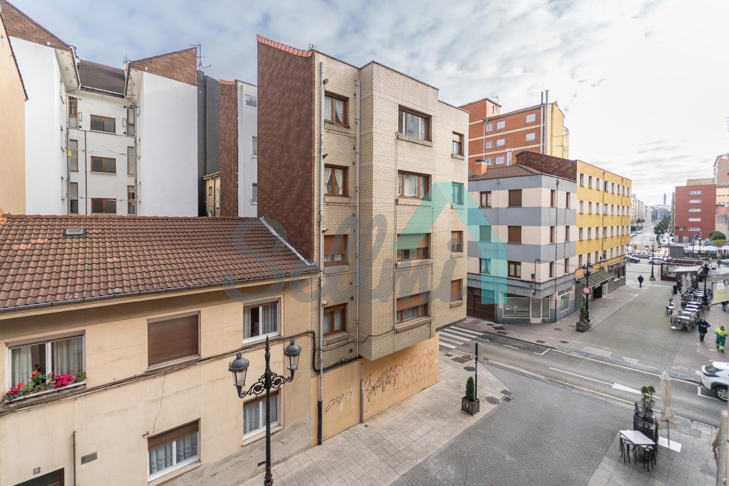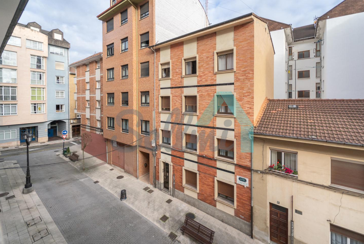 Piso en alquiler situado en una calle peatonal junto a la Plaza Pedro Miñor, en la zona de la Ería-Masip, Oviedo. Ocupa toda la tercera planta de un edificio construido en 1957, que cuenta con ascensor y portal renovado.