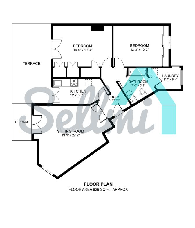 2 habitaciones y 1 baño.