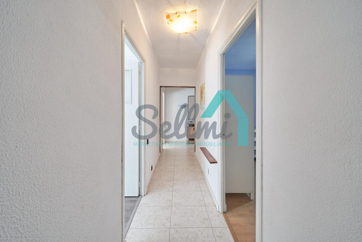 Tiene una superficie construida de 70 m² distribuidos en hall de entrada, salón comedor, cocina amueblada y equipada, una pequeña terraza, tres habitaciones y un baño completo.