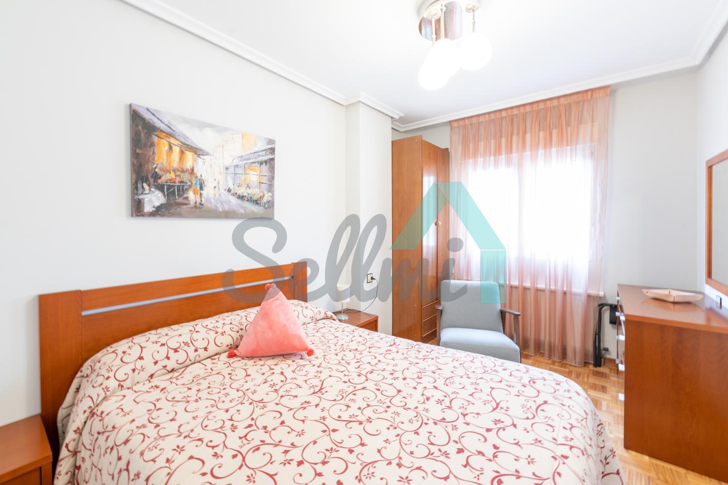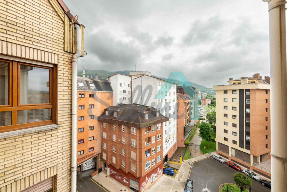 Piso en alquiler situado en la calle Llano Ponte de Oviedo, a un paso de la estación de autobuses (ALSA) y del Centro Comercial Salesas. Se ubica en la séptima planta de un edificio construido en 1985, sin barreras arquitectónicas y que con dos ascensores. Es exterior y muy luminoso, con orientación noreste.