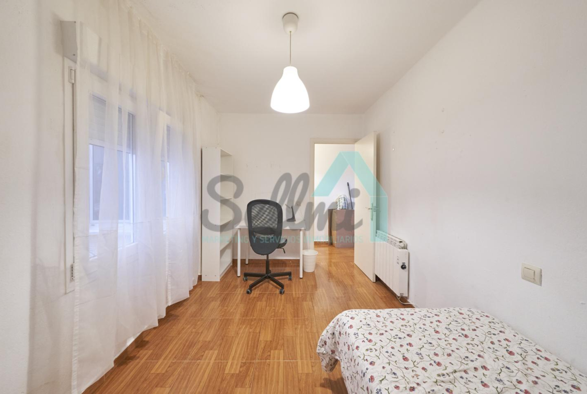 Dispone de suelos de tarima y gres, ventanas de doble acristalamiento y de madera, calefacción individual eléctrica, mesas de estudio, etc. Es exterior, con orientación noroeste.