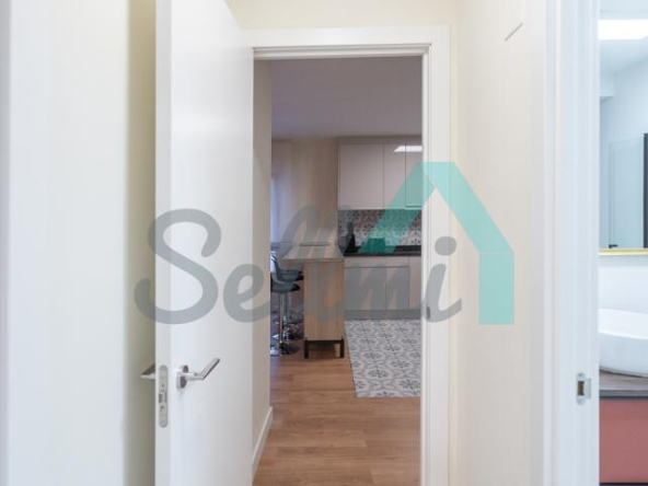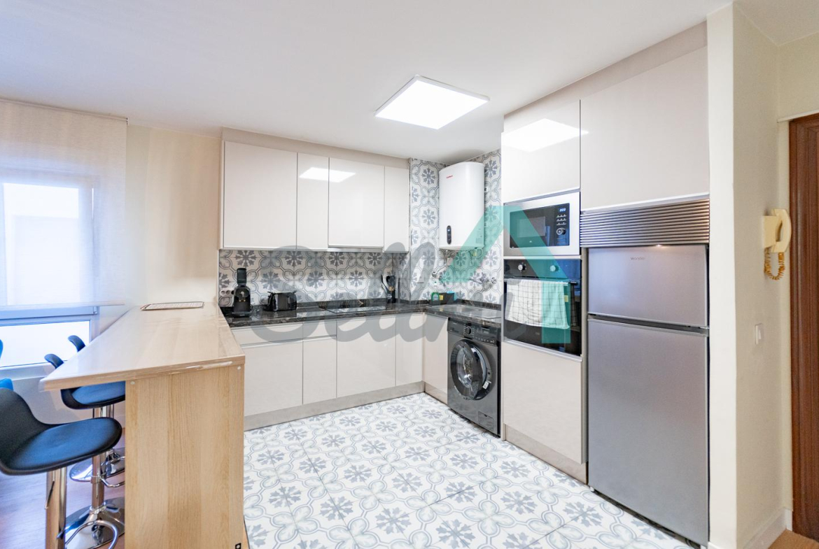 Dispone de suelos de tarima y gres, calefacción individual eléctrica, agua caliente por termo eléctrico, armarios empotrados, ventanas de doble acristalamiento, puerta de seguridad, etc. El precio del alquiler incluye comunidad e internet.