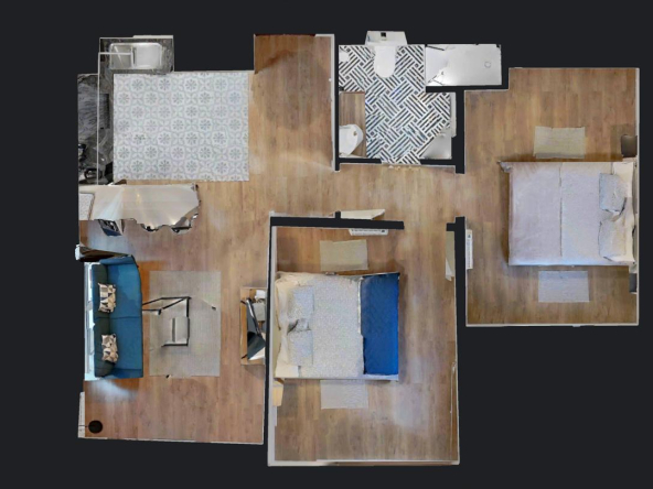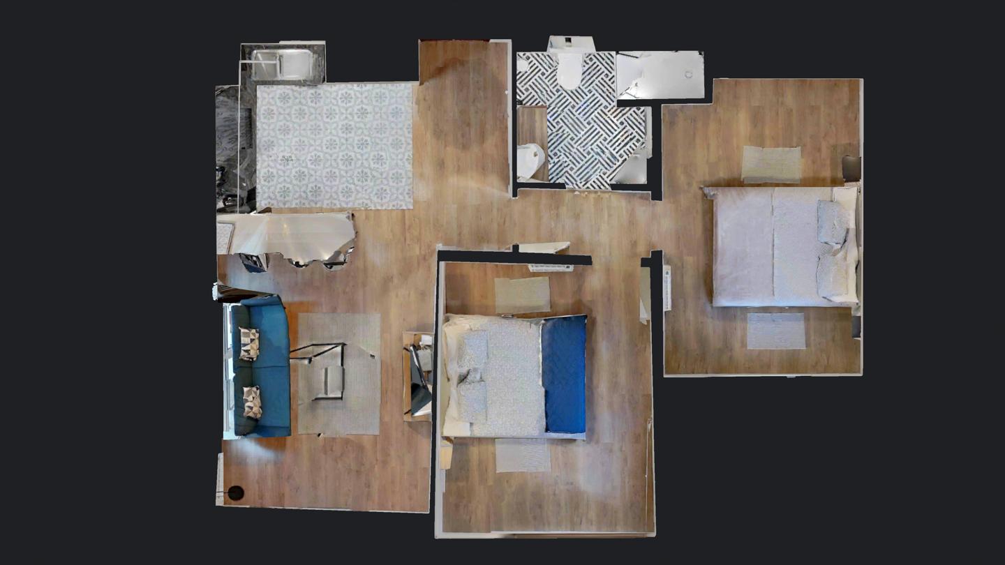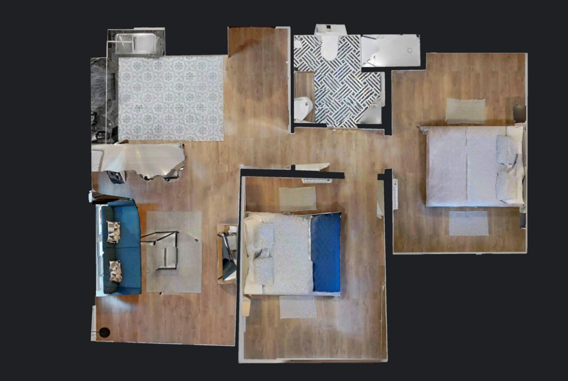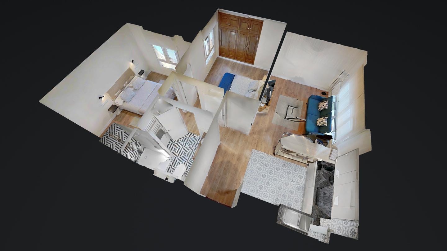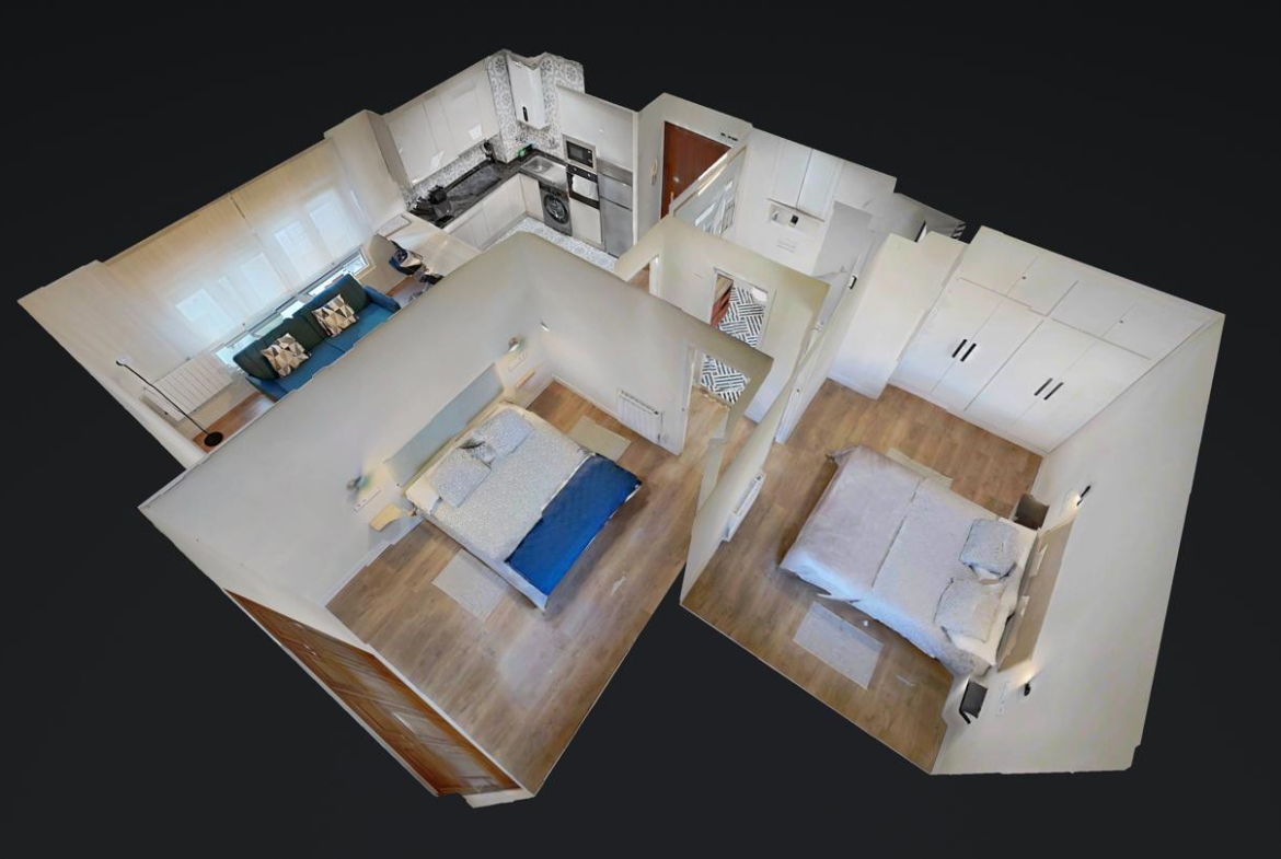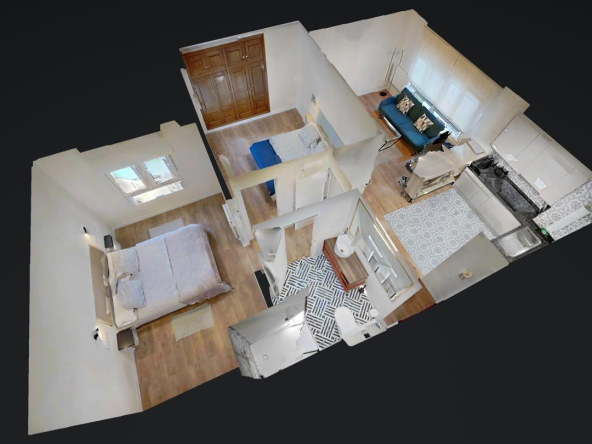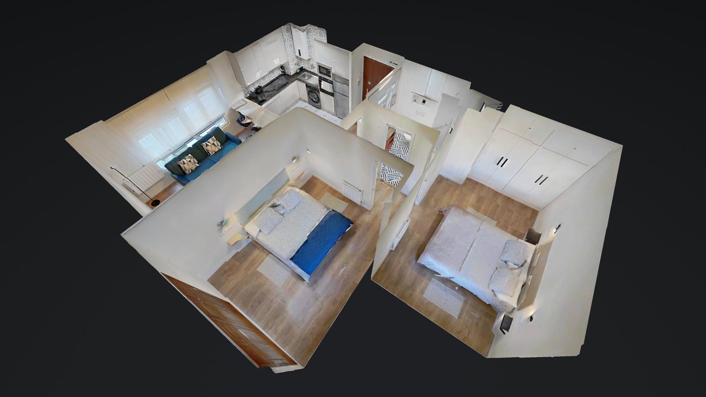 2 habitaciones y 1 baño.